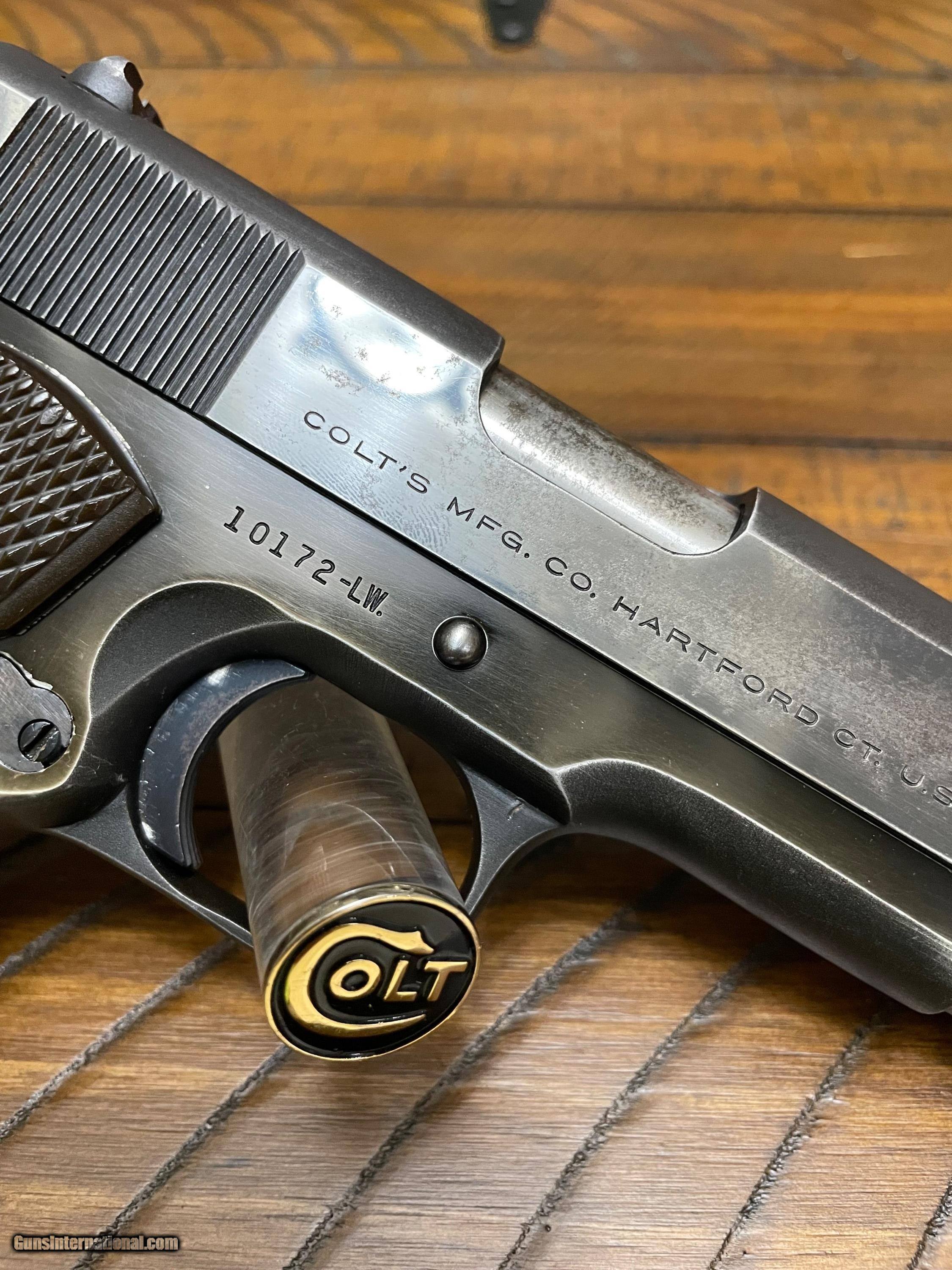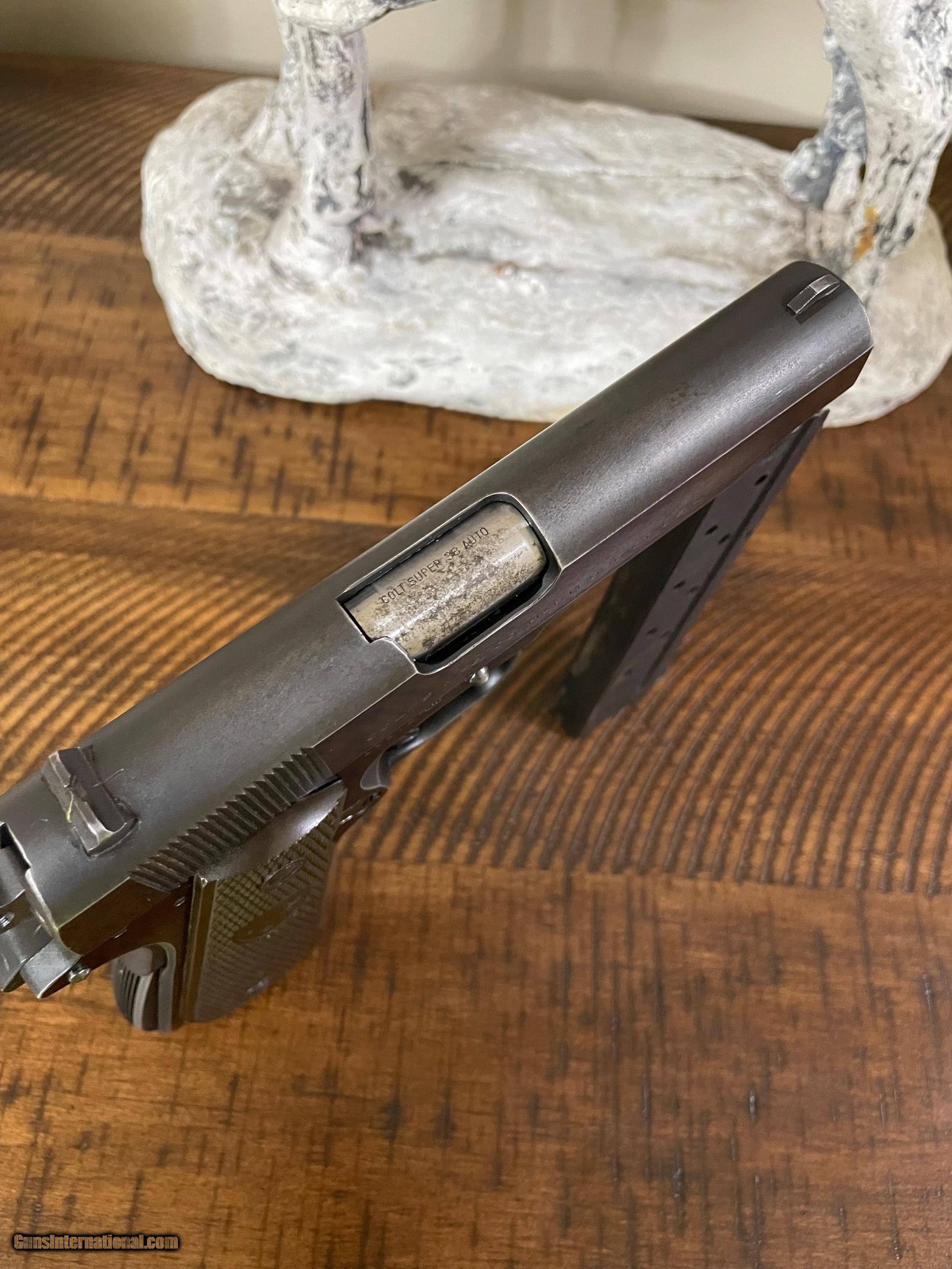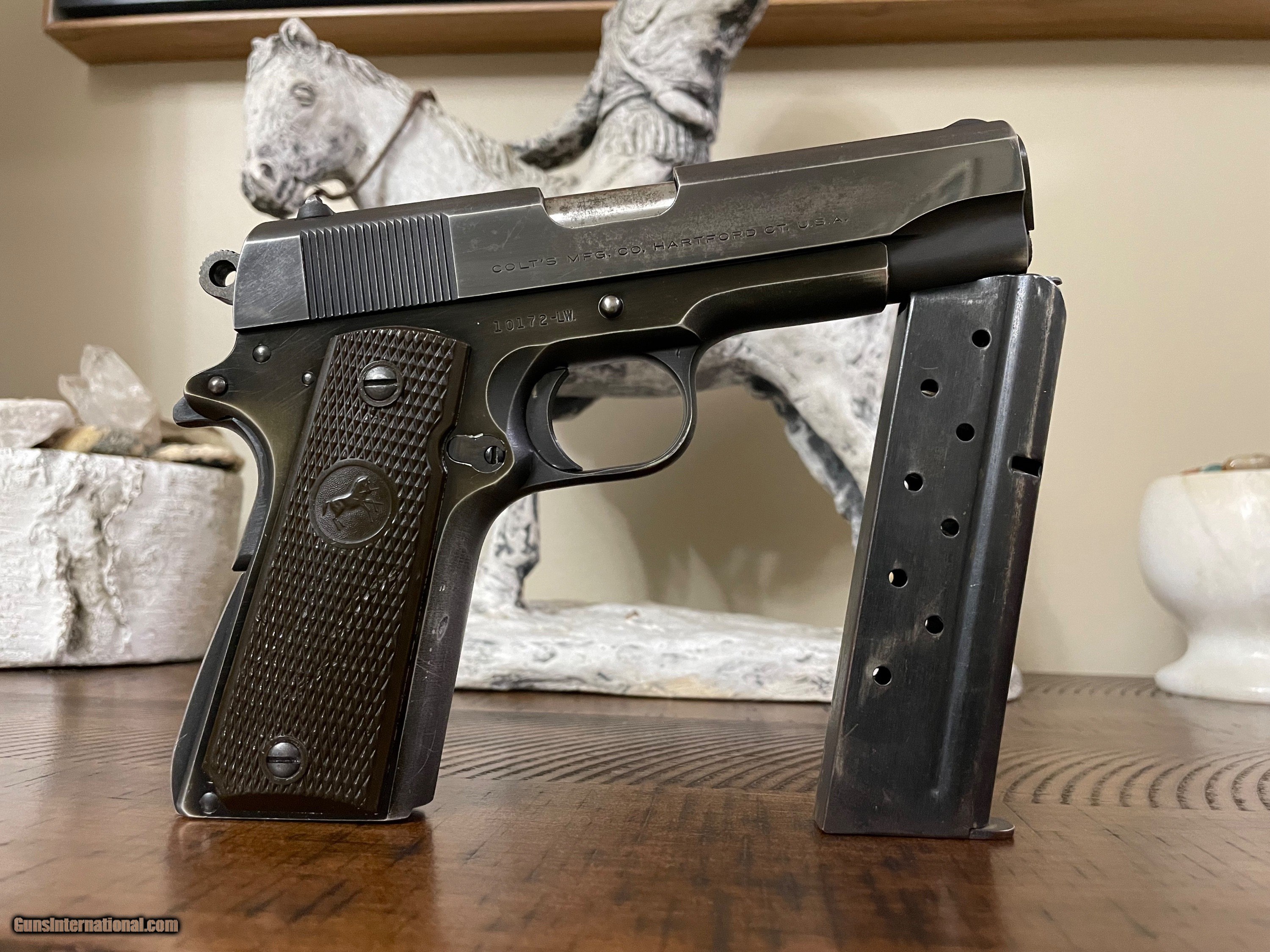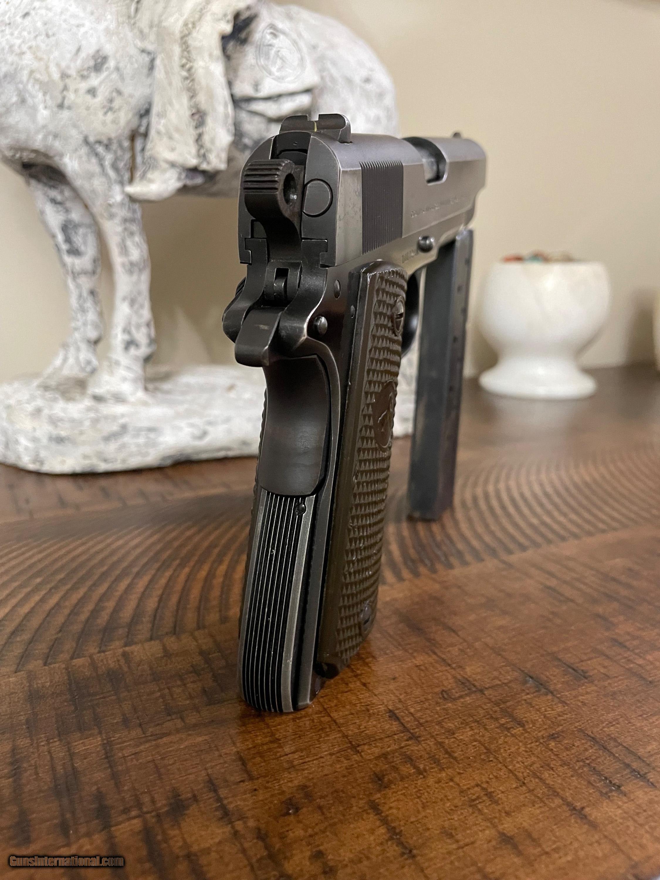 Description: 1951 Colt .38 Super Commander, pistol is showing its age with some light freackling all correct and original. Correct colt grips I would rate this pistol at about 70/75% great carry or project Pistol. Free shipping California Compliant. SOLD Curio/Relic: Yes |