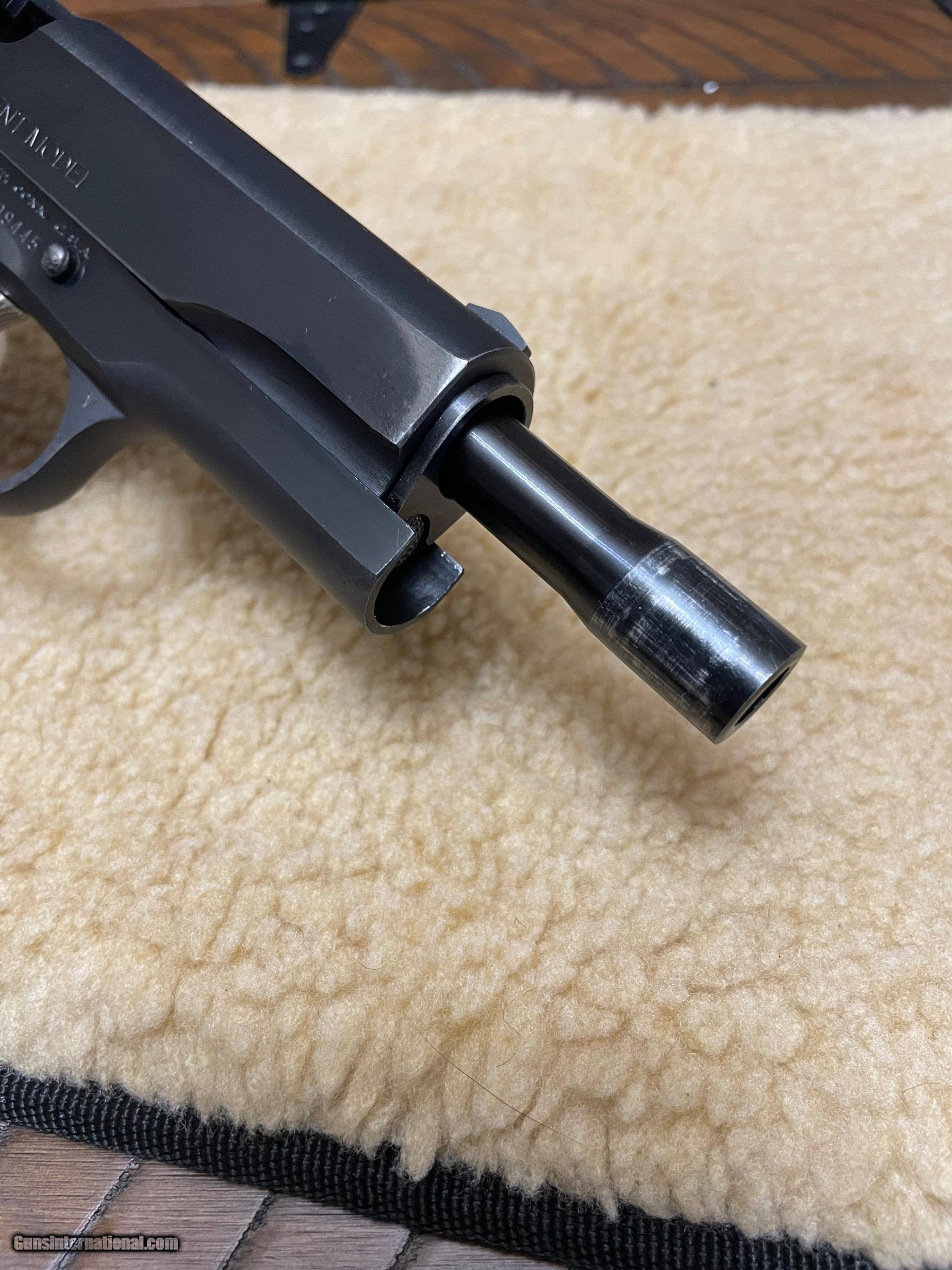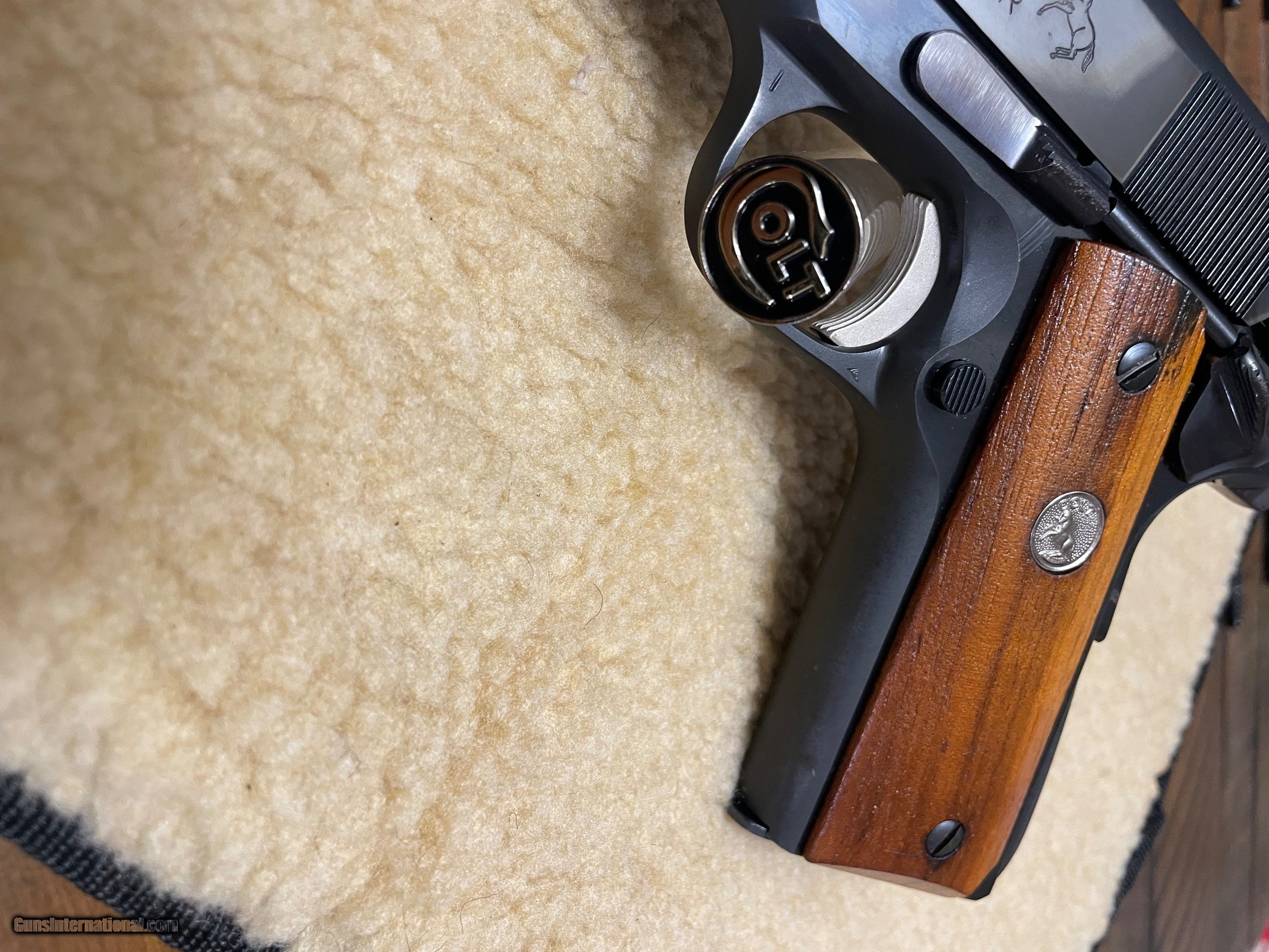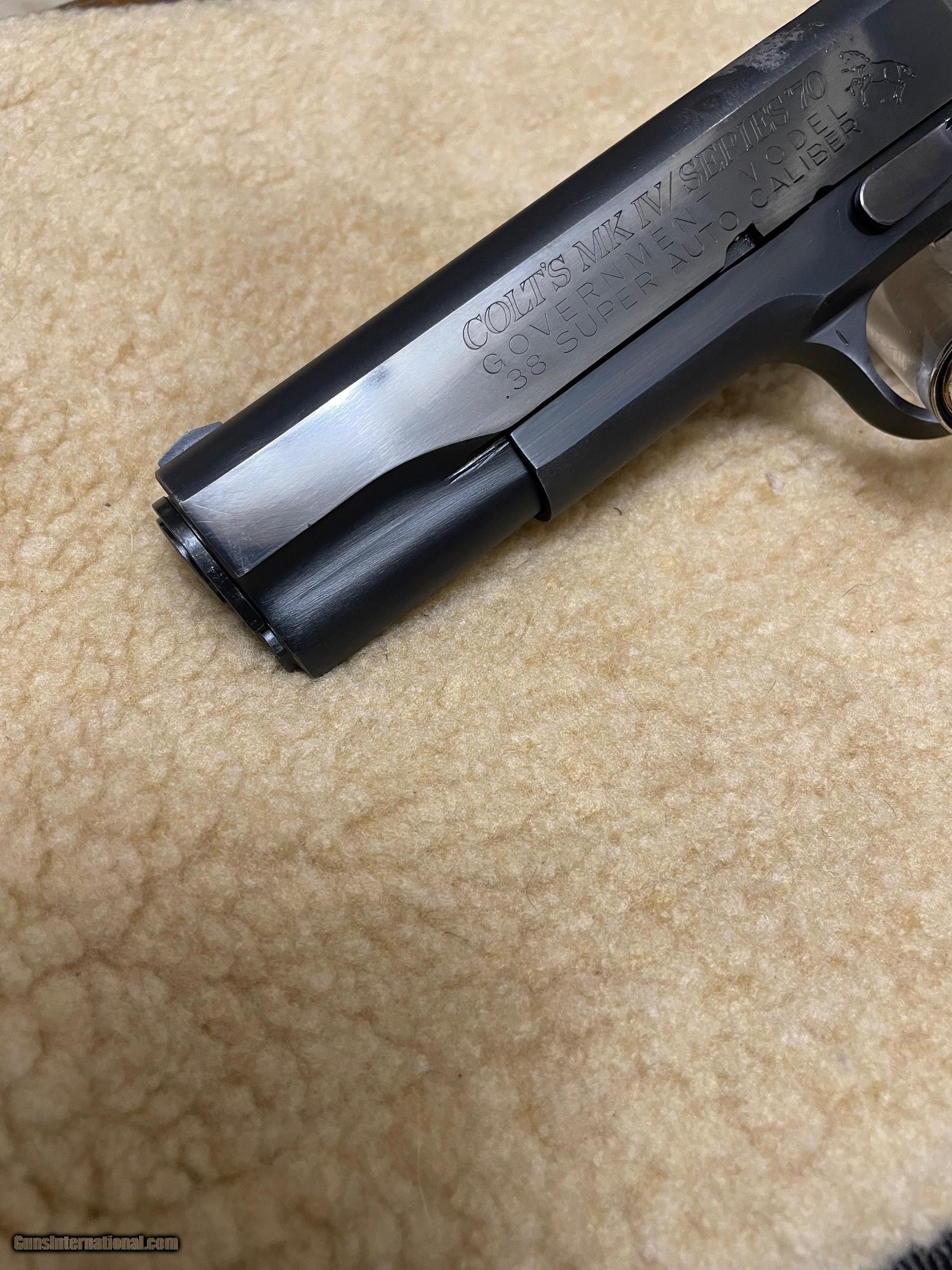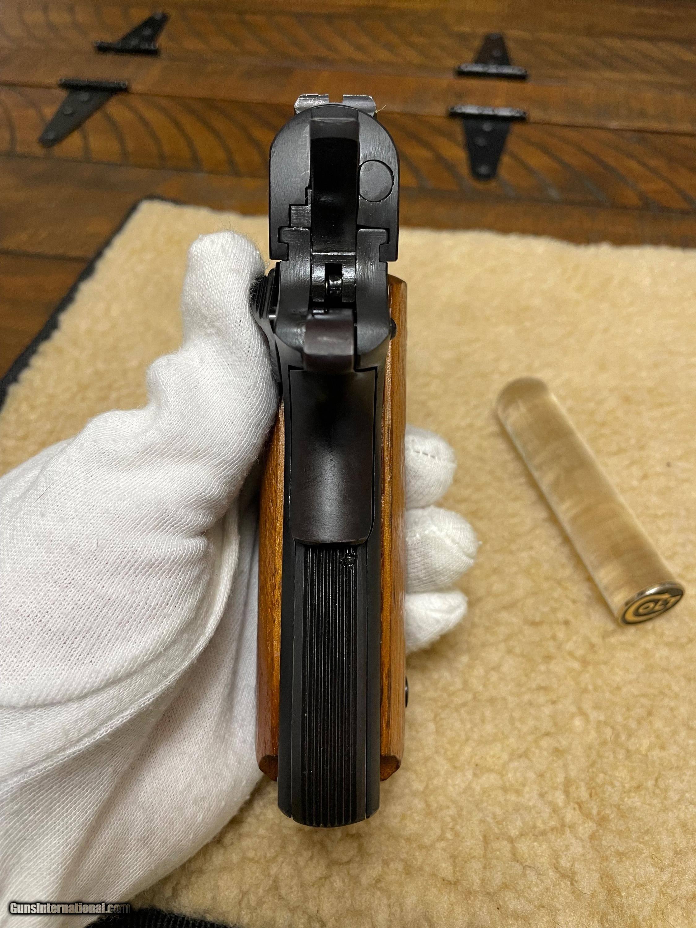 Description: 1975 Colt .38 Super 70 Series all original, pistol is showing some light pitting at the top of the slide,top of the barrel and the slide stop other than that rest of the gun is in really nice condition. There is no pitting inside of the gun or the internals. Buy Now Price includes free shipping. SOLD |
