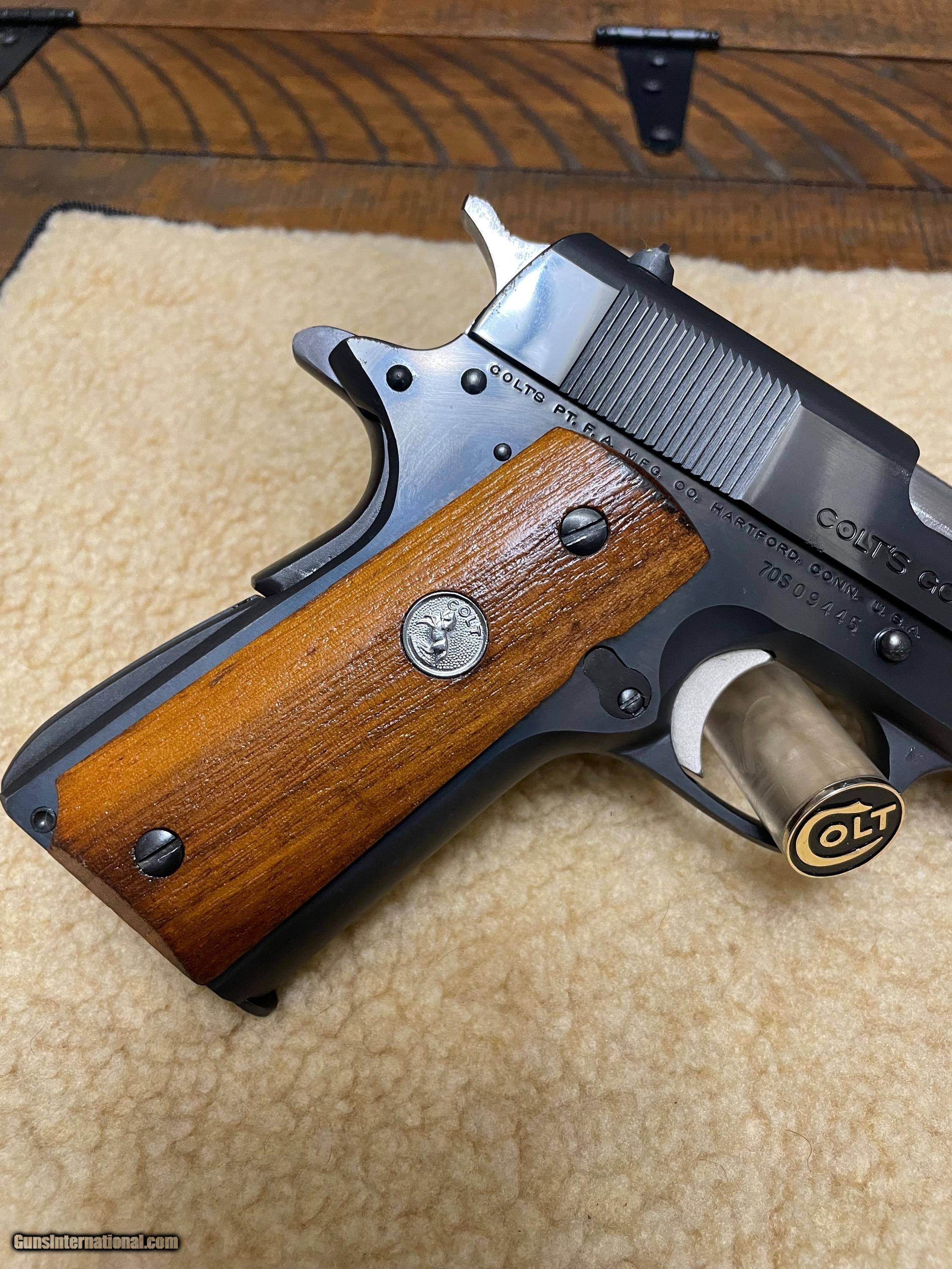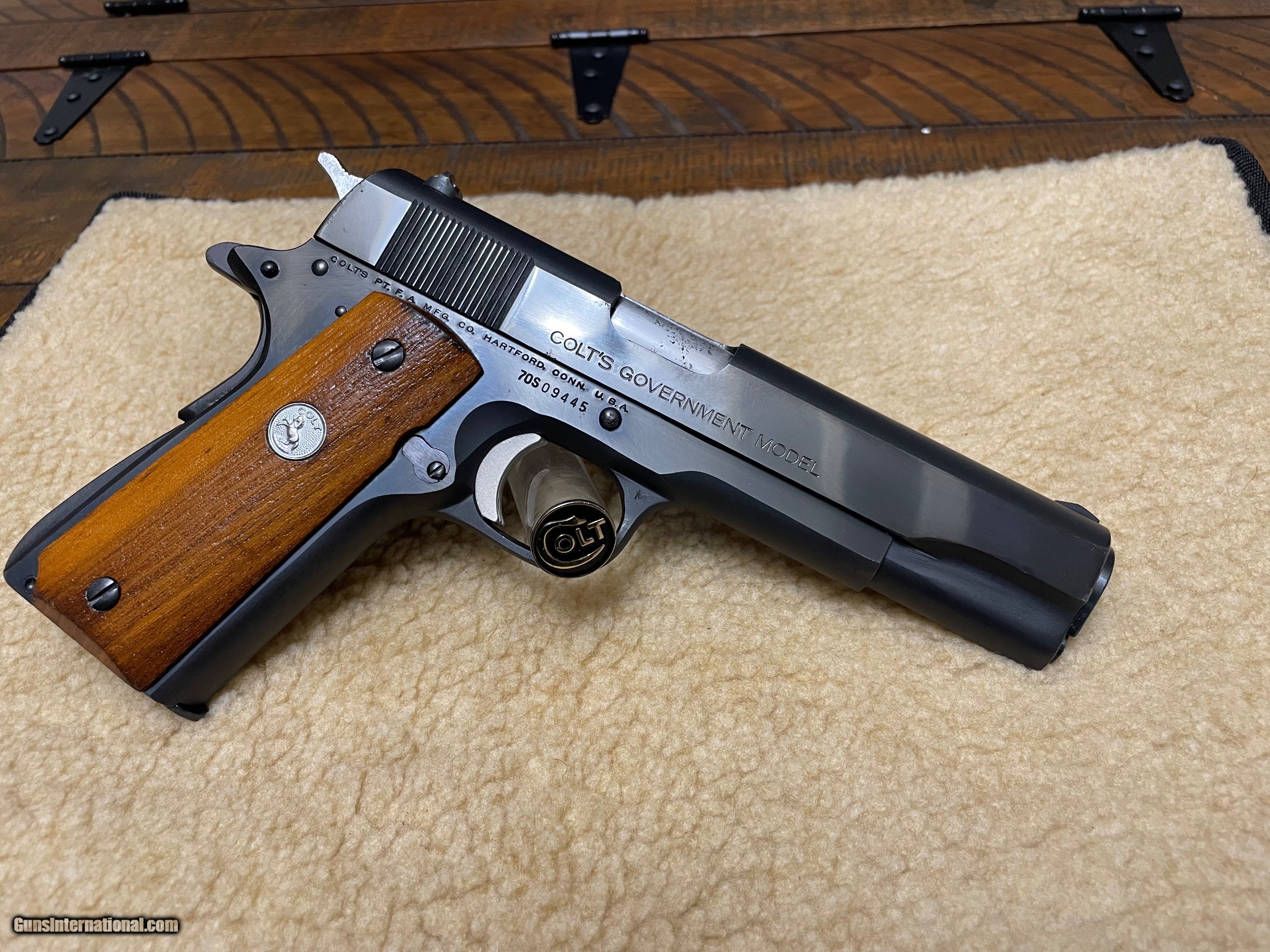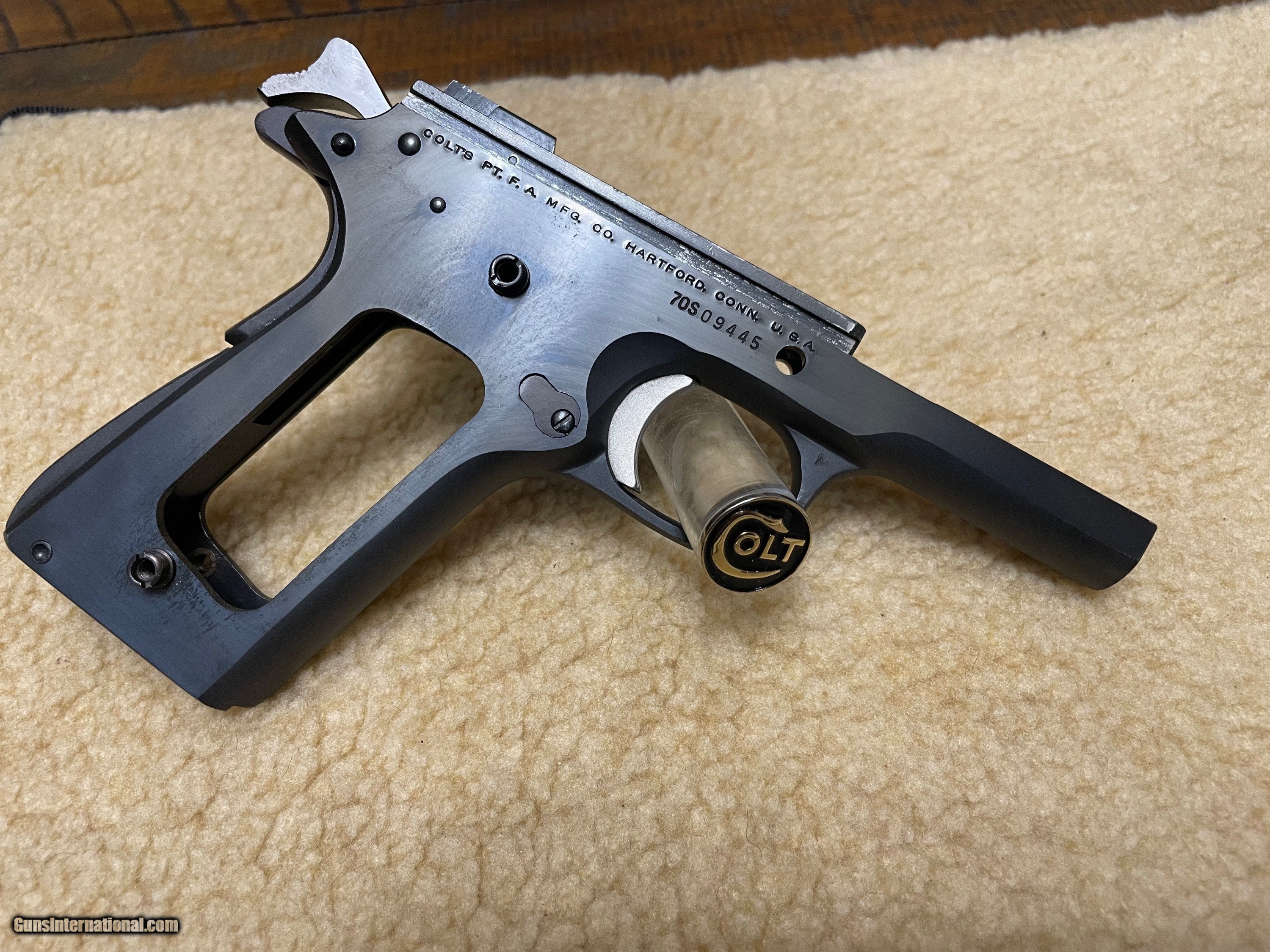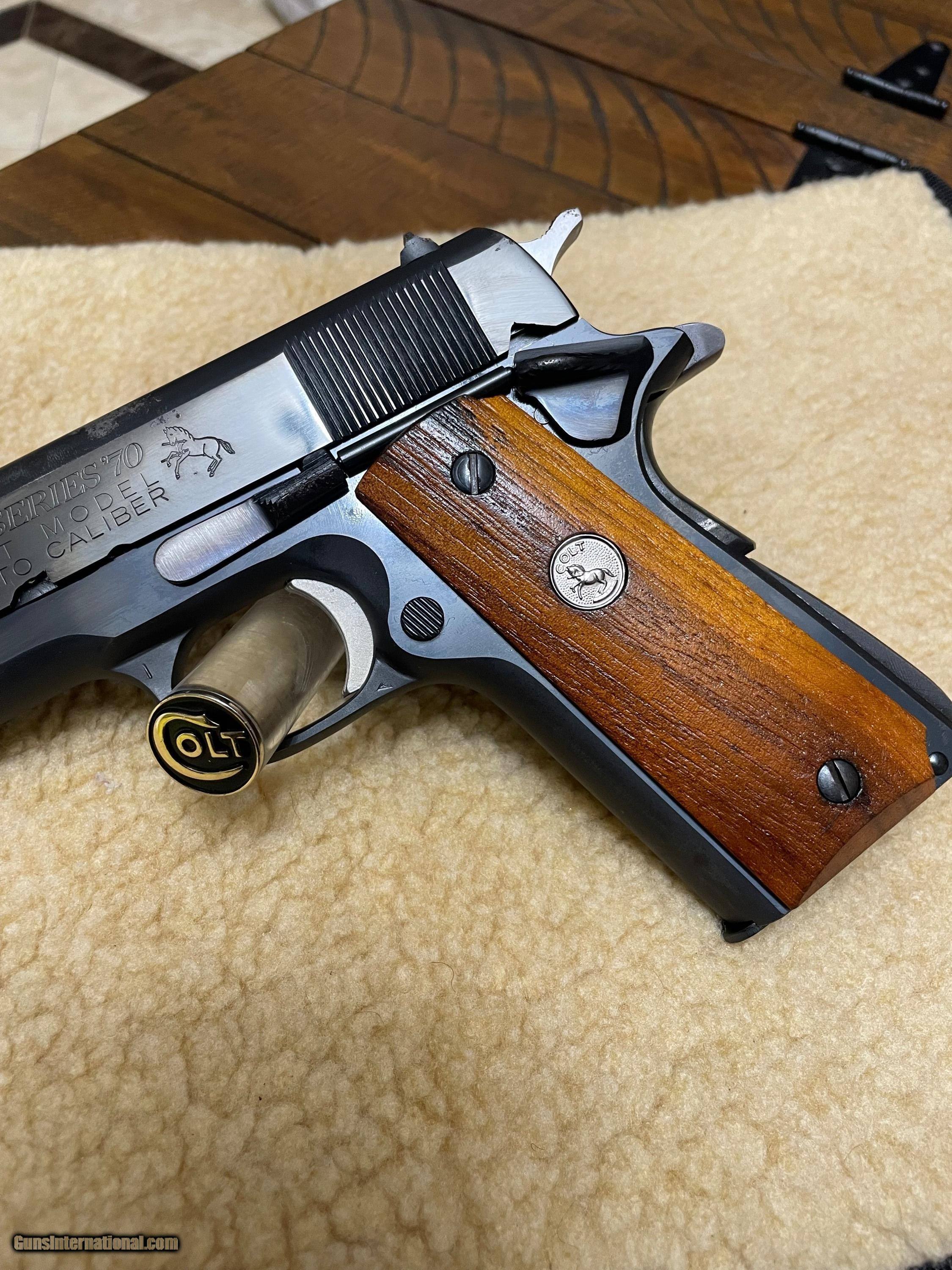 Description: 1975 Colt .38 Super 70 Series all original, pistol is showing some light pitting at the top of the slide,top of the barrel and the slide stop other than that rest of the gun is in really nice condition. There is no pitting inside of the gun or the internals. Buy Now Price includes free shipping. SOLD |