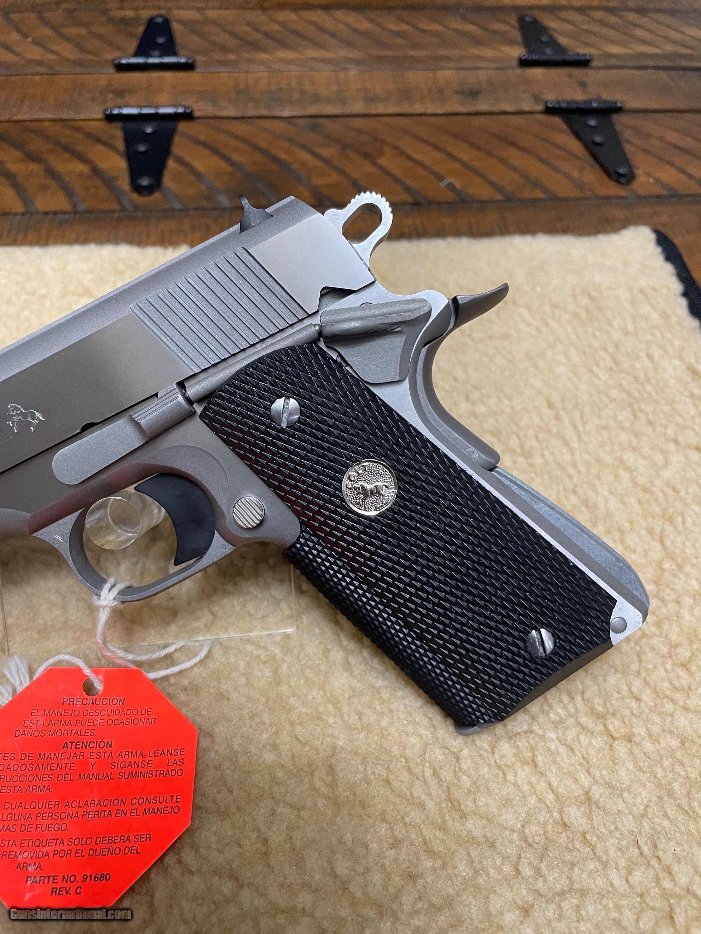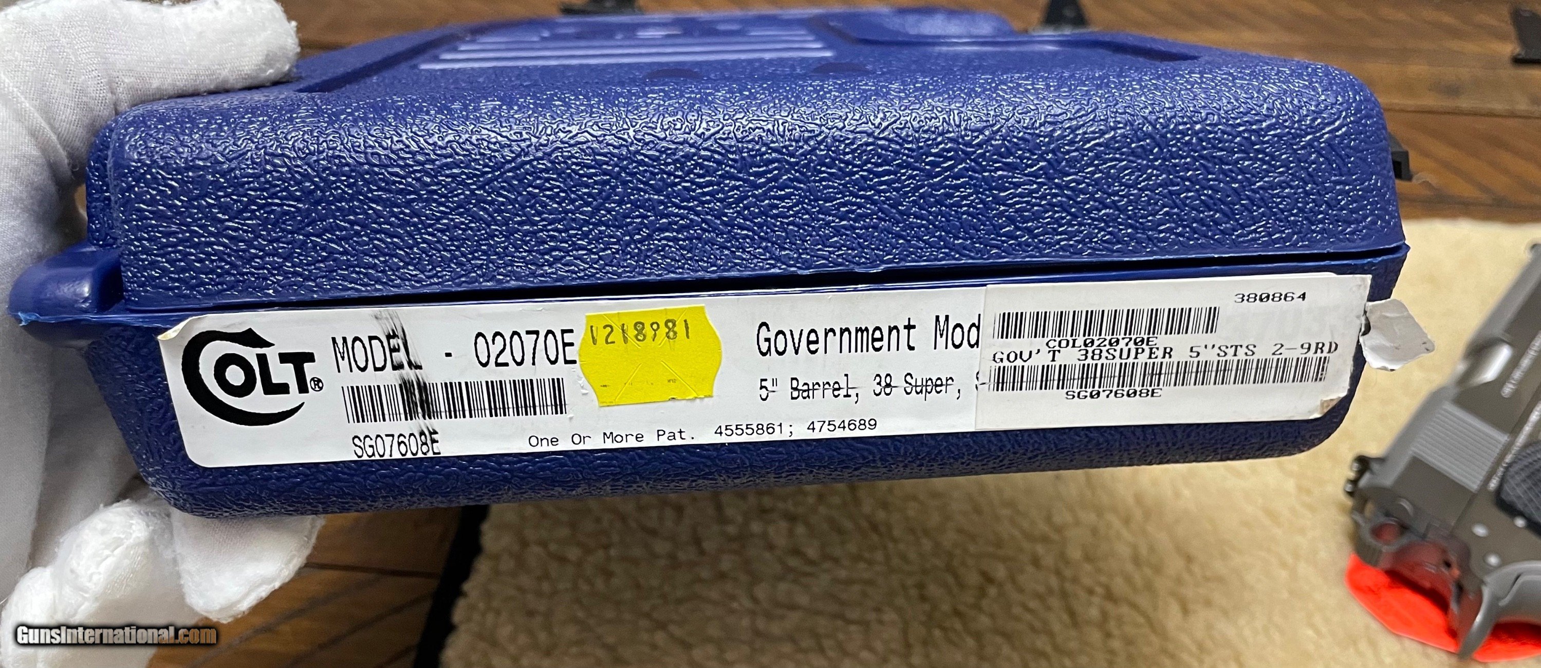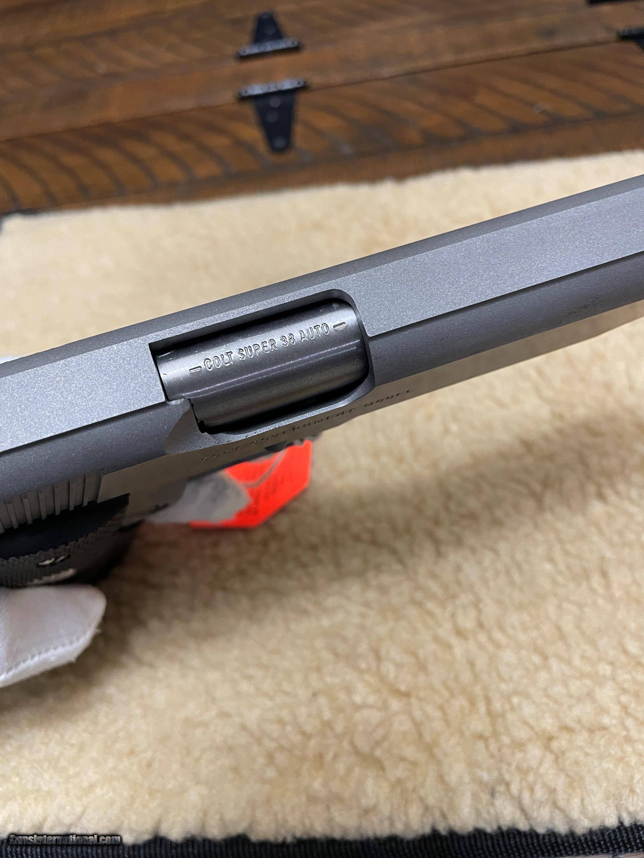 Description: Colt .38 Super 80 Series Enhanced Model with original box and matching label. Pistol is used but in excellent condition with box and 2 mags. Stainless finish with wrap around plastic Colt grips. Shipping is $35 not Cali Compliant unless Leo. SOLD |