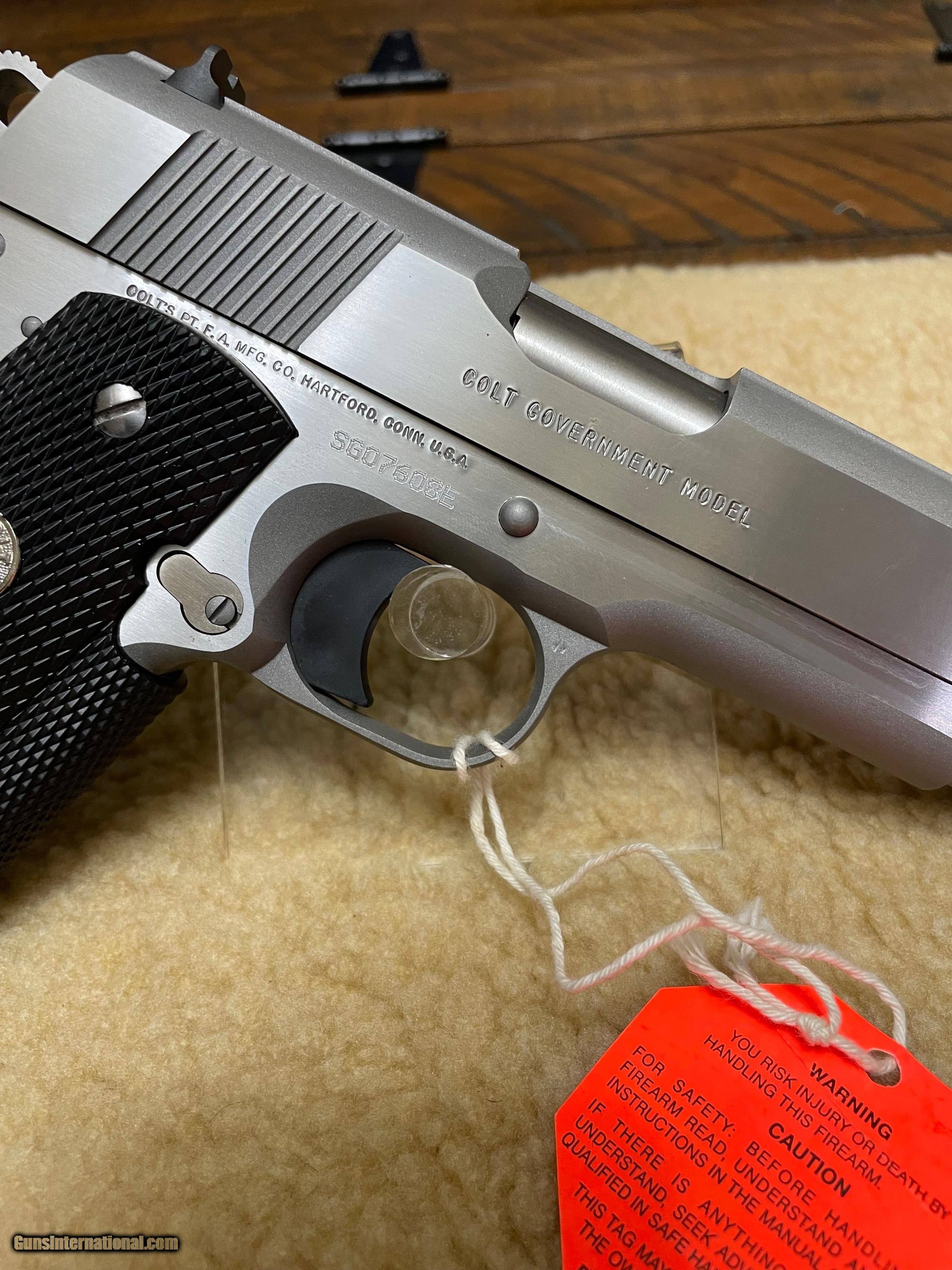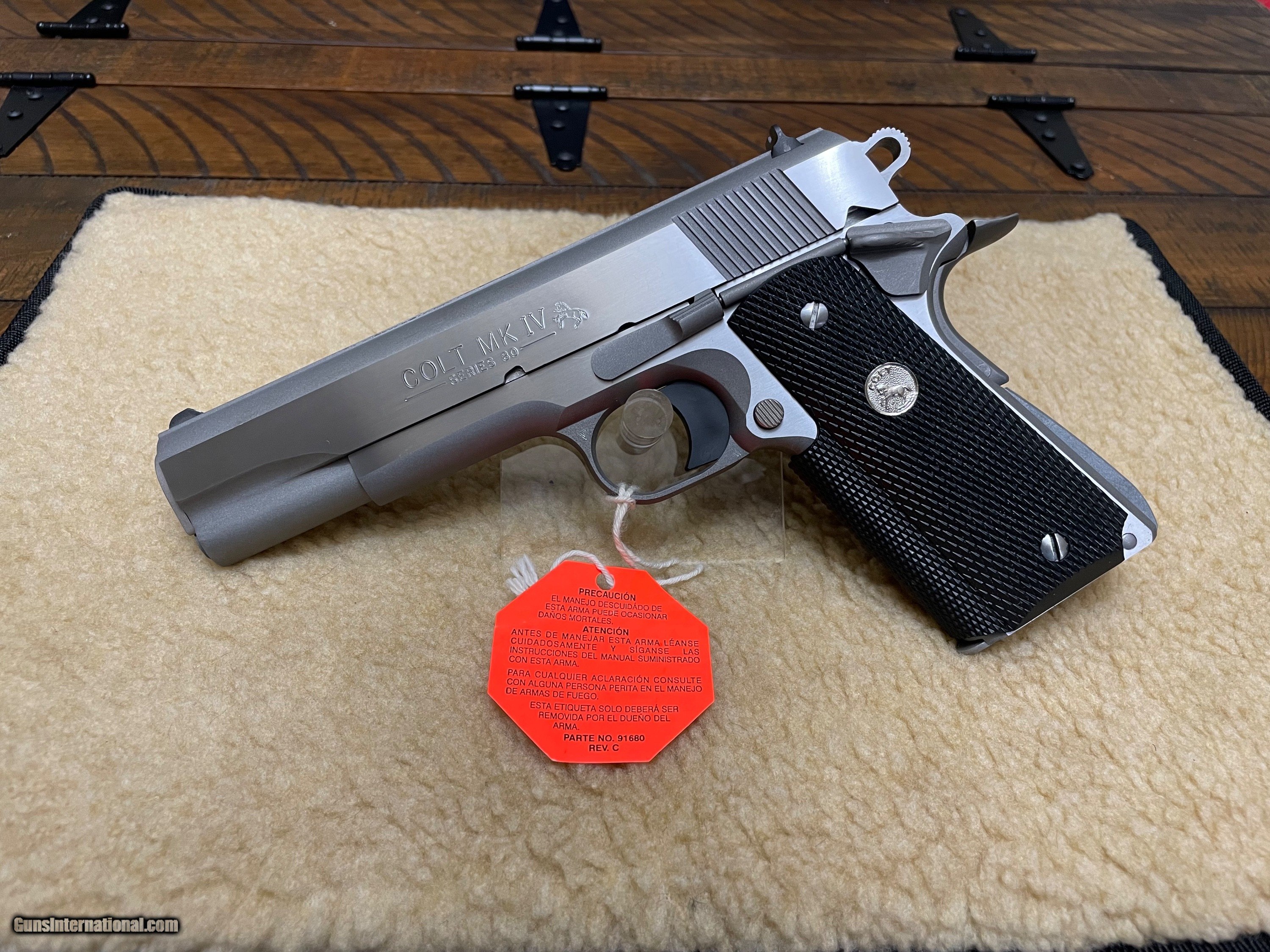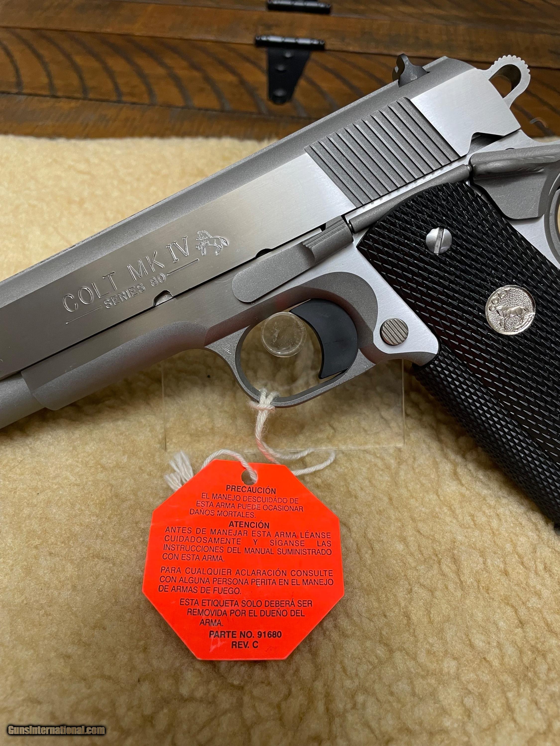 Description: Colt .38 Super 80 Series Enhanced Model with original box and matching label. Pistol is used but in excellent condition with box and 2 mags. Stainless finish with wrap around plastic Colt grips. Shipping is $35 not Cali Compliant unless Leo. SOLD |