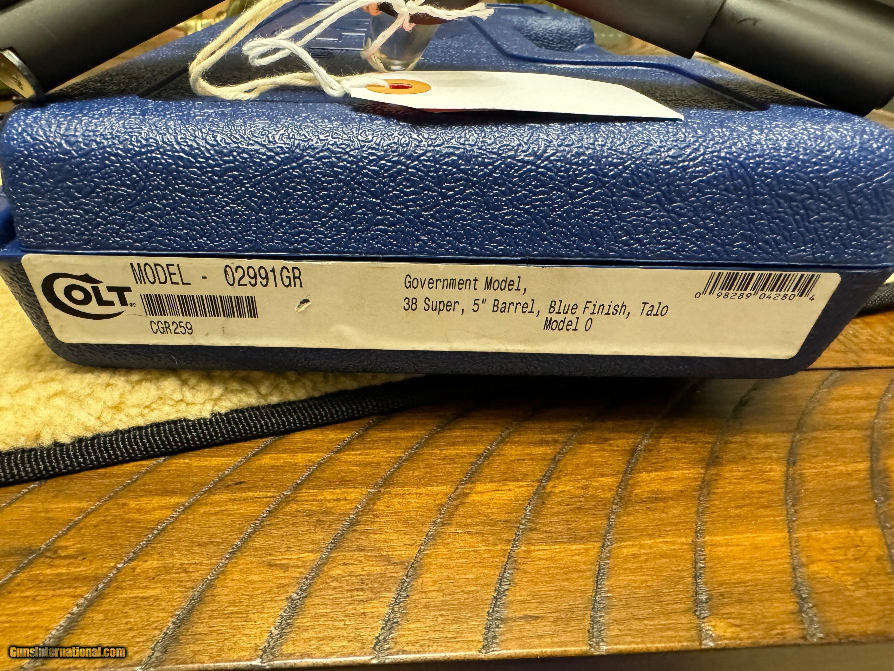 Description: Talo Novak Super 1 of 300. .38 Super Government Model , Blued Finish Carbon Steel Novak Mega Dot Tritium front Novak ghost ring rear sights. Serial number range CGR001-CGR300. All original with box and label serial number 259. In excellent condition.Shipping is $50 not California Compliany unless LEO. SOLD |