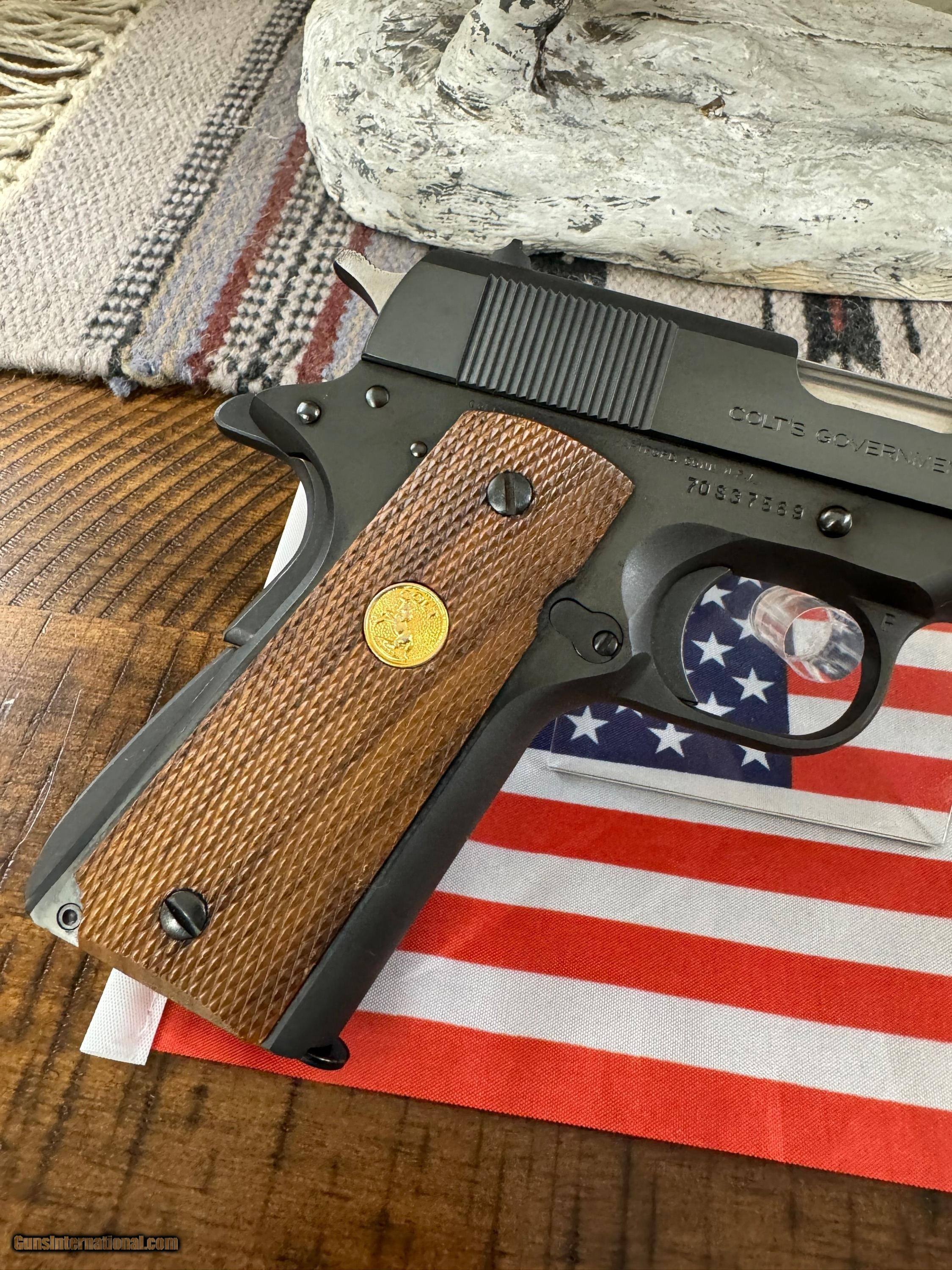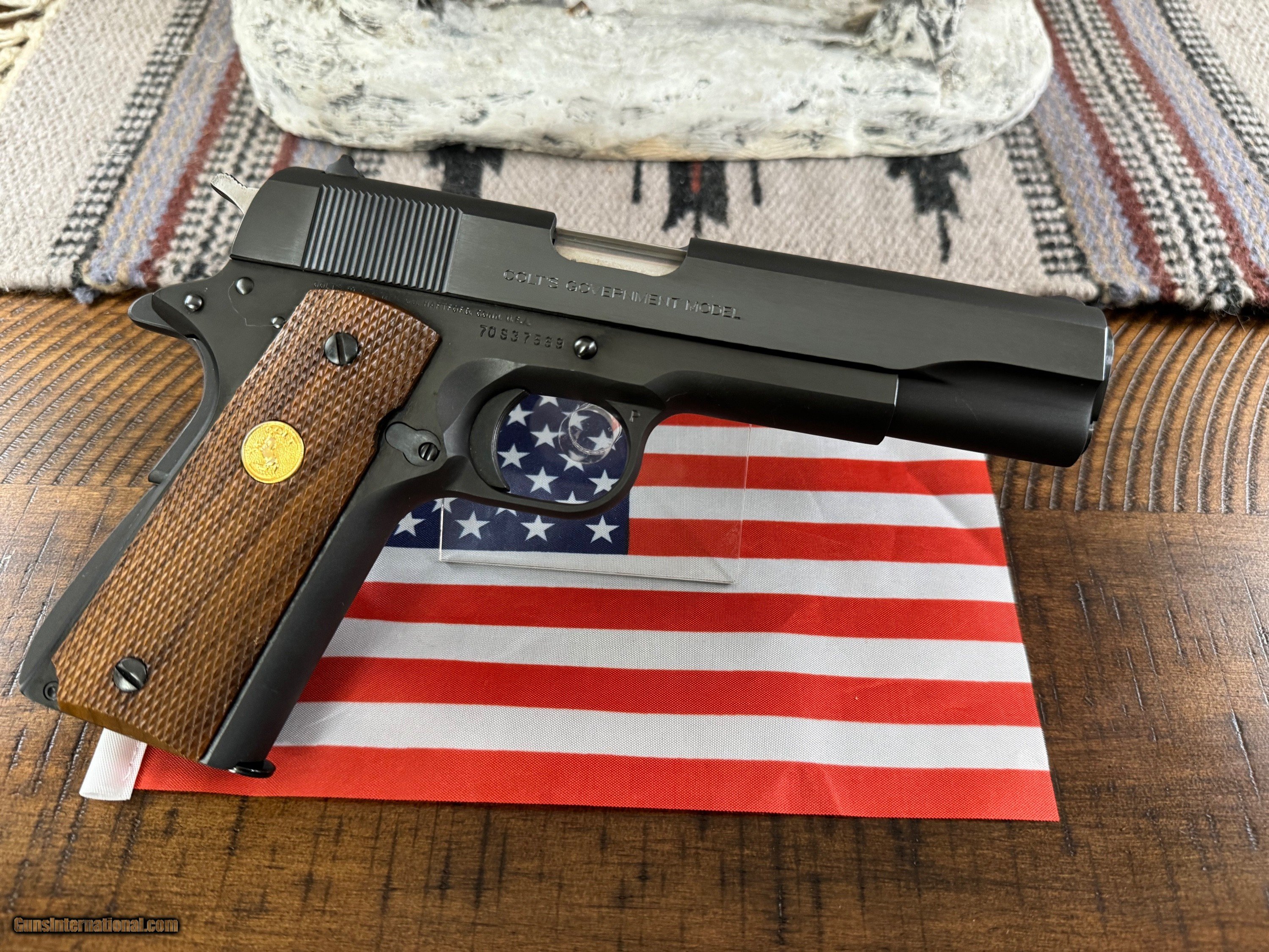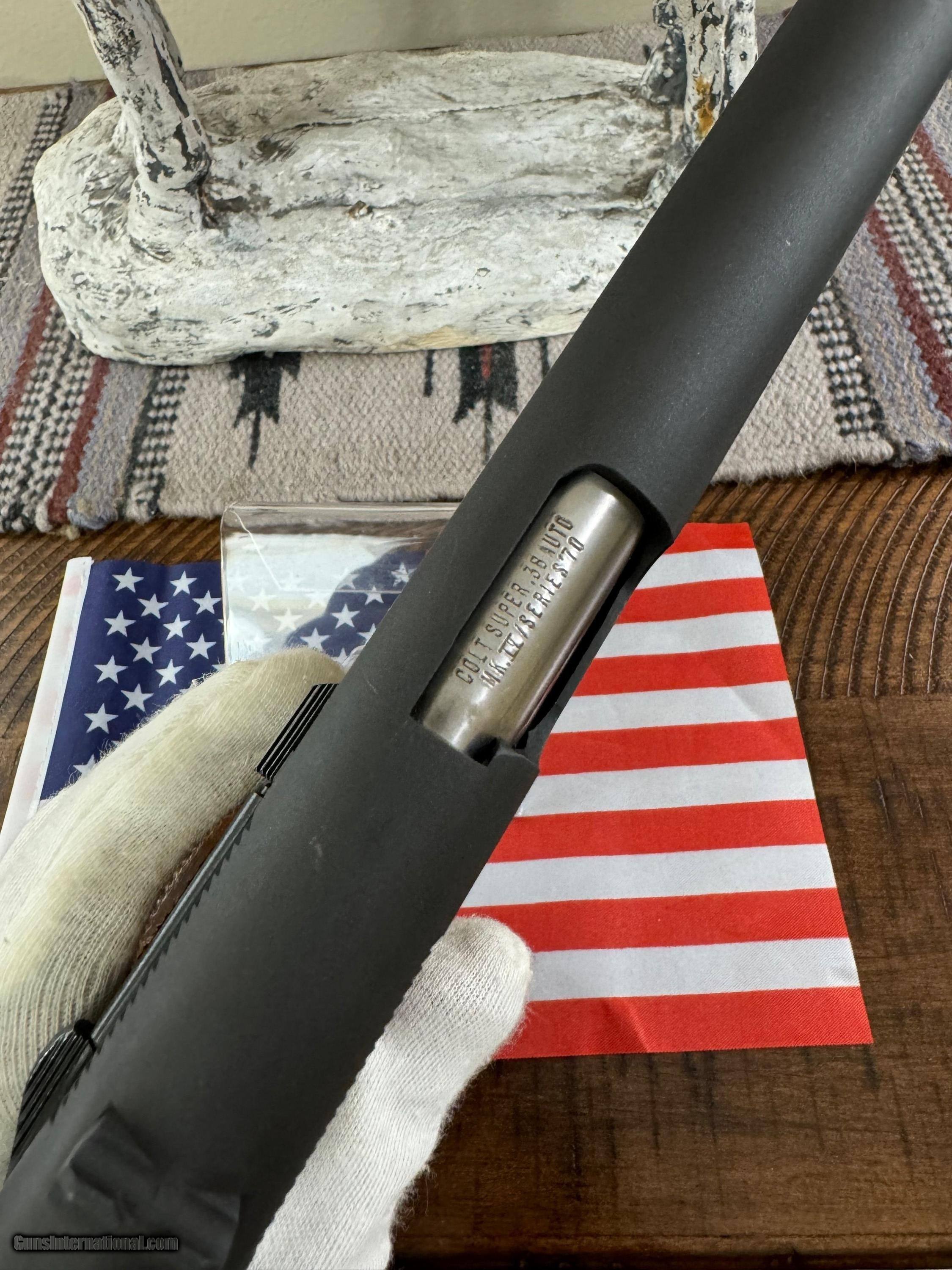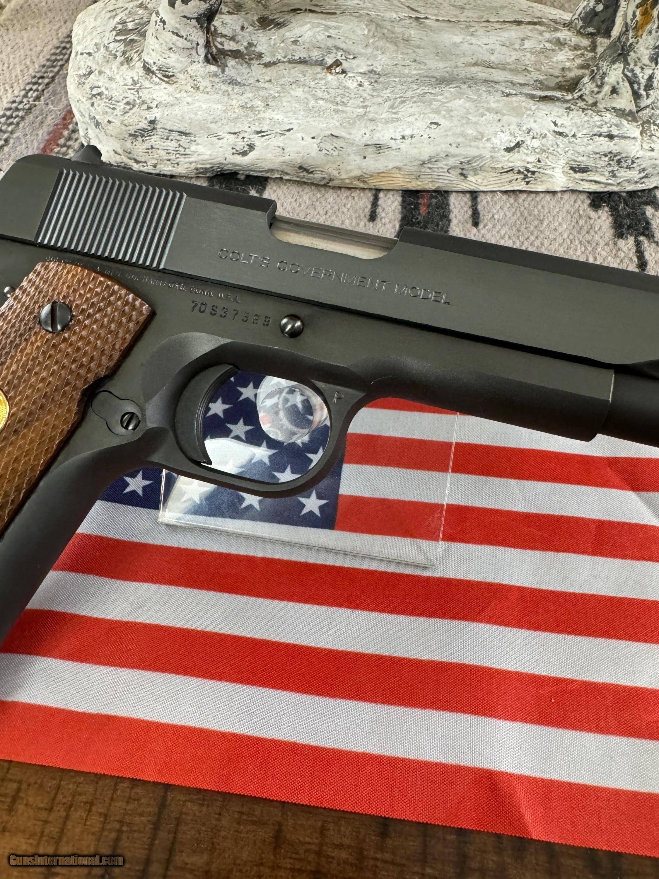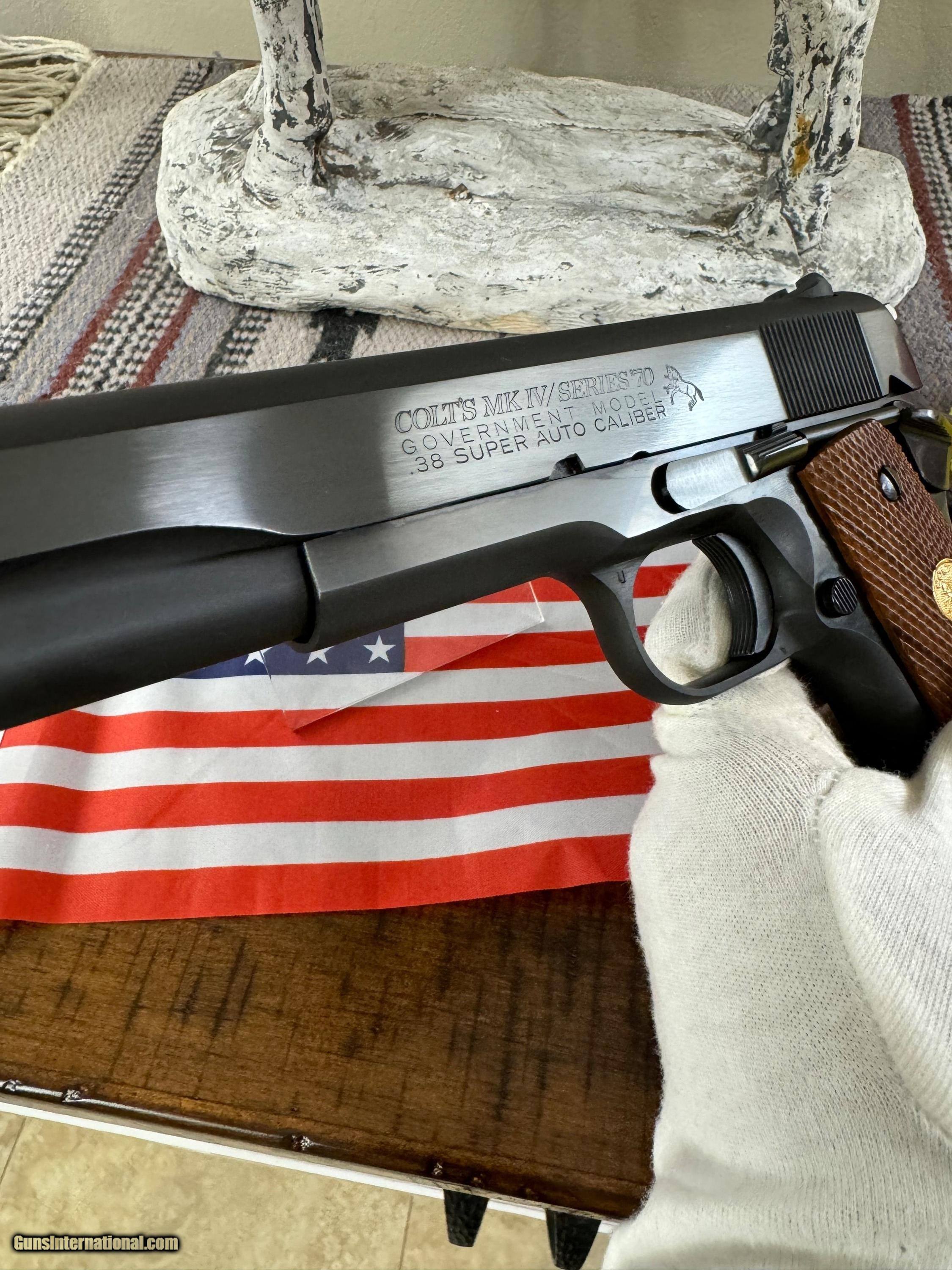 Description: Government Model MKIV Series 70 in the desirable caliber .38 Super, pistol is in near mint condition all original just the way it left the Colt Factory in 1980. No box and not California Compliant, please view all pictures. Feel free to ask any question you might have, shipping is $35. We take checks,money orders,cashiers checks and debit/credit cards. SOLD |