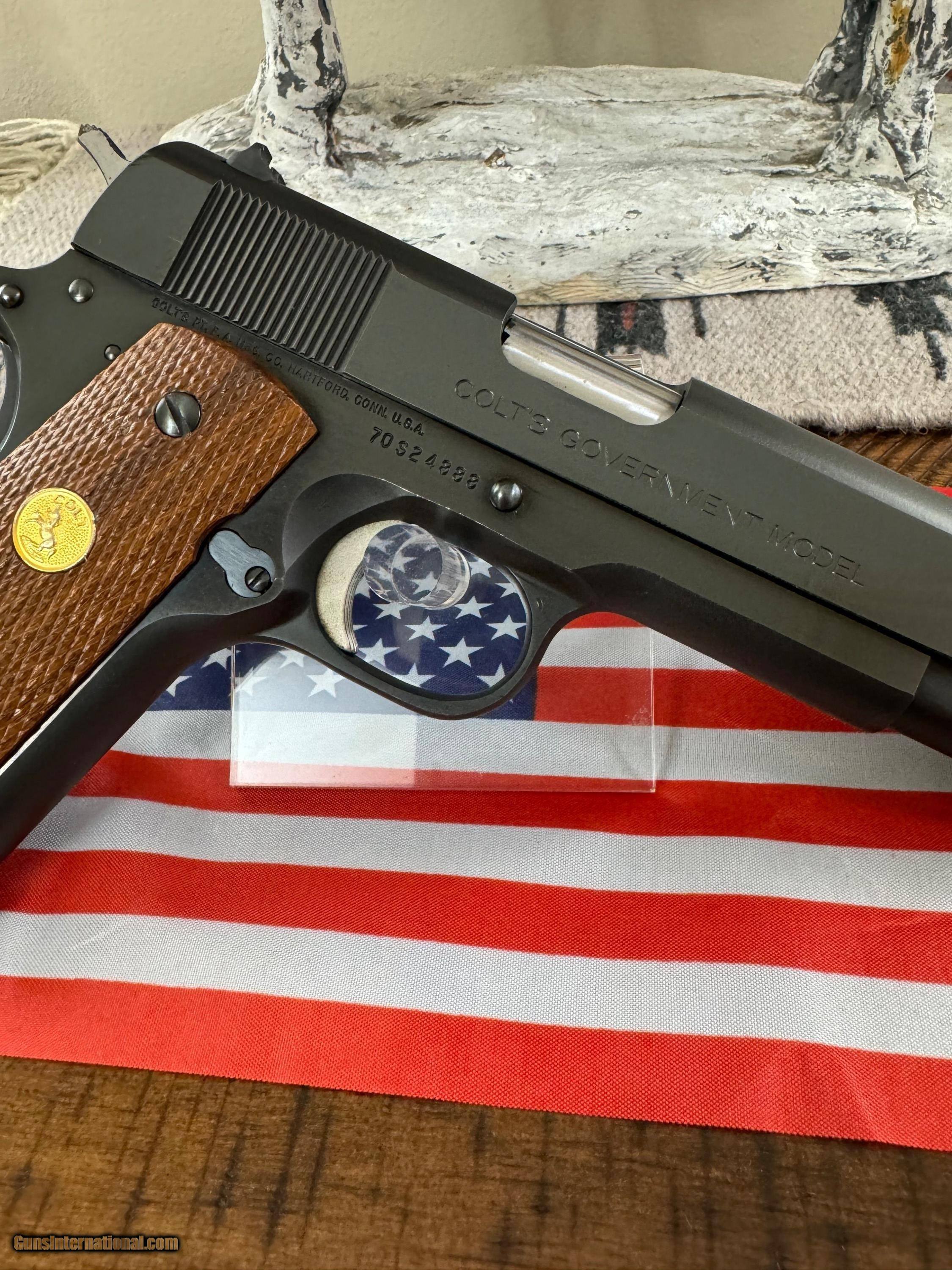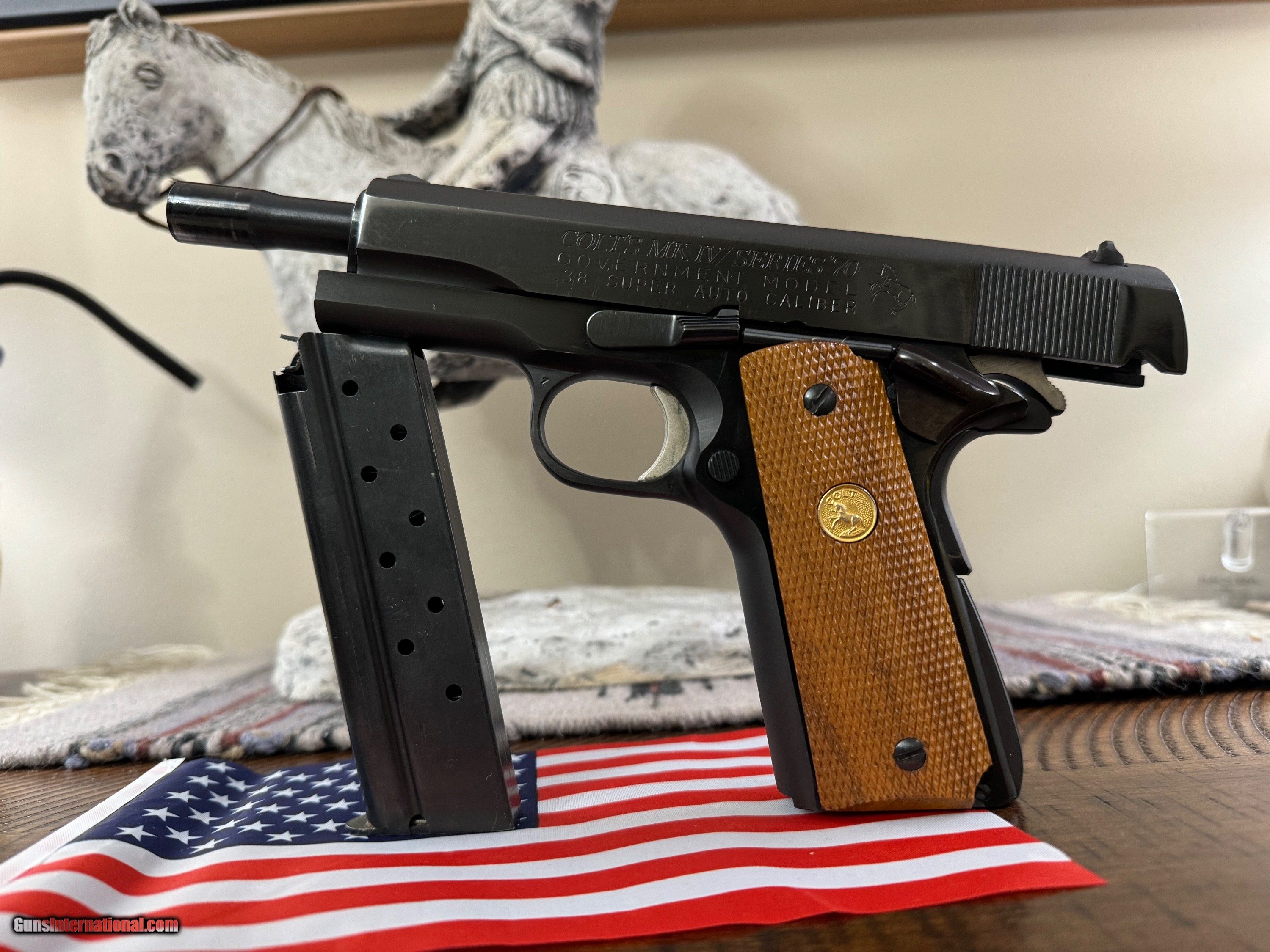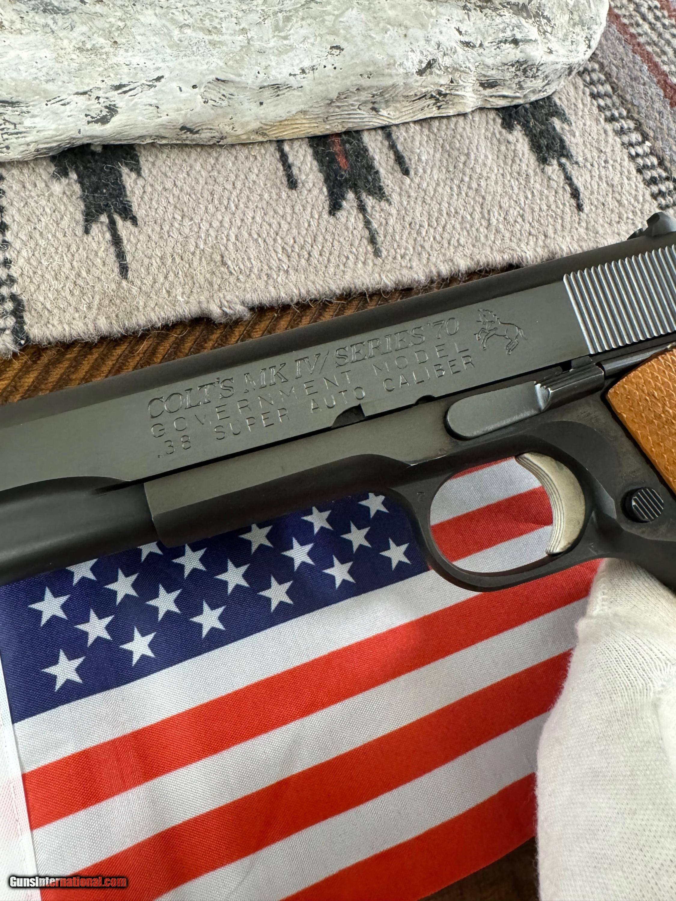Description: Government Model MKIV Series 70 in the desirable caliber .38 super, this pistol is the large rollmarks. All original just like when it left the Colt factory in 1977, it's in great condition as you see in our pictures. No box or Cali Compliant , shipping is $35 we take money orders, cashier checks,personal checks and debit/credit cards. SOLD |
