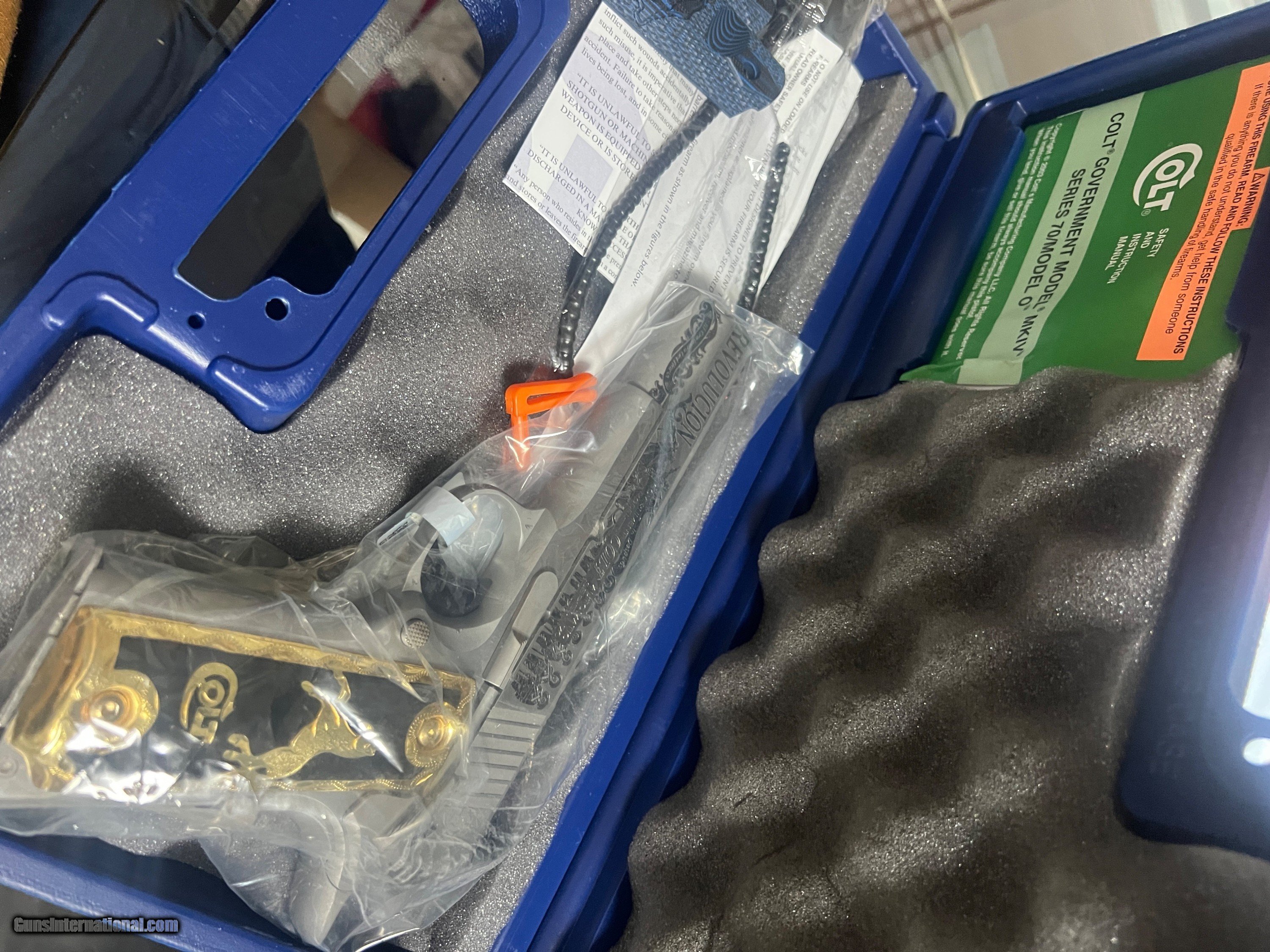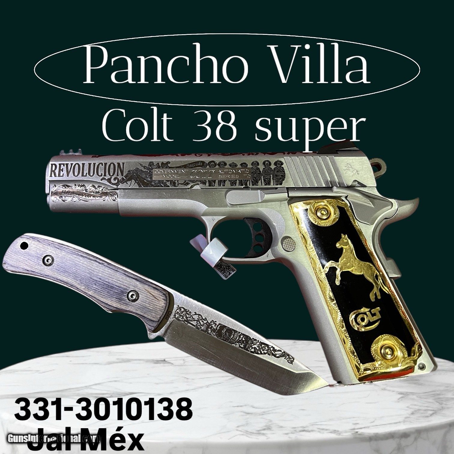 Description: Colt Competition Series 70 Government Model 38 Super 5'' National Match Barrel Pancho Villa edition Revolution Gold Plate Grips 14K New Knife comes with Gun engraved with revolution generals and pancho villas face For Questions Fell free to Call 3313010138 transfers exept California SOLD Handgun Caliber: .38 S&W (.38 Colt New Police, .38 Super Police) |