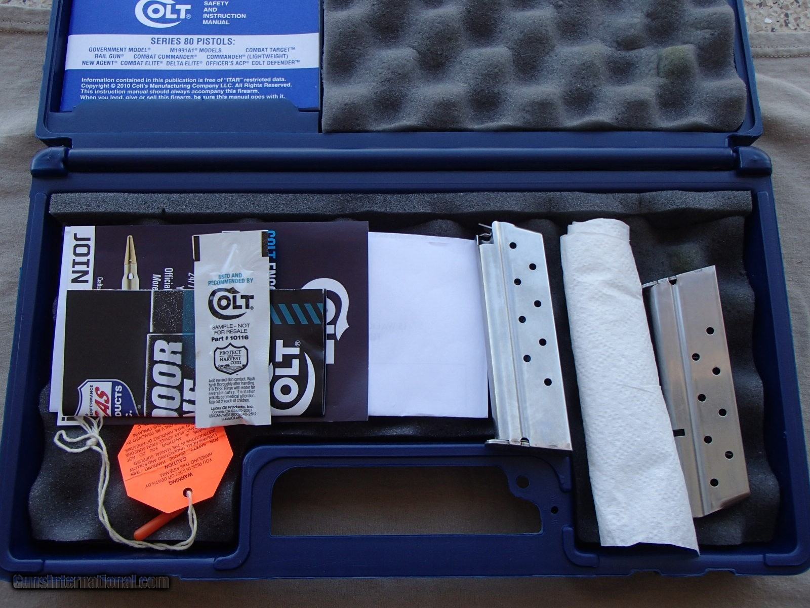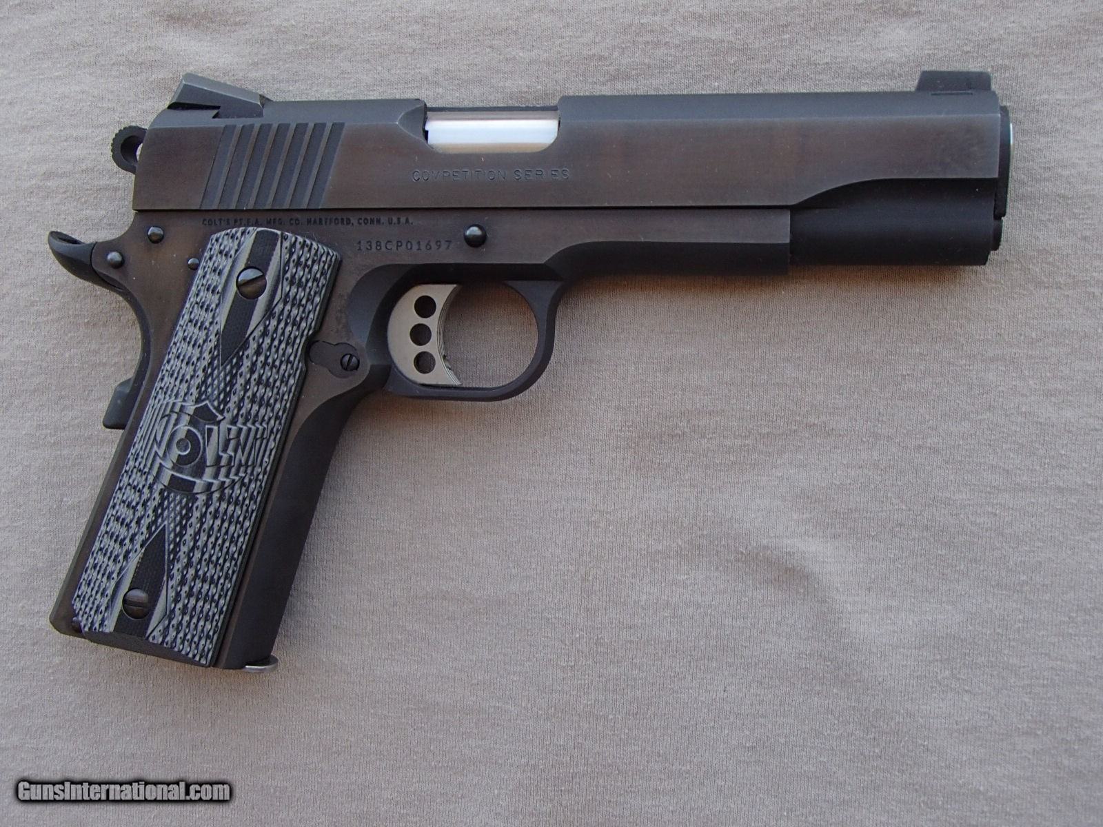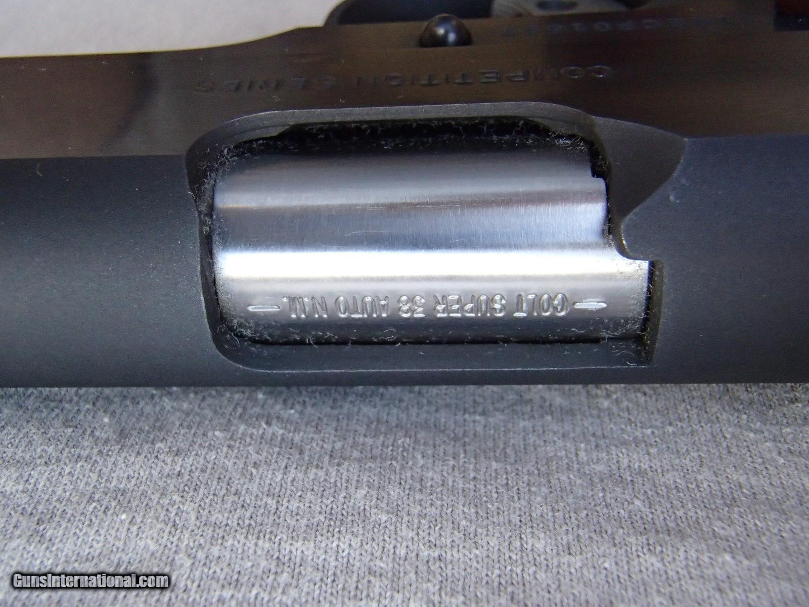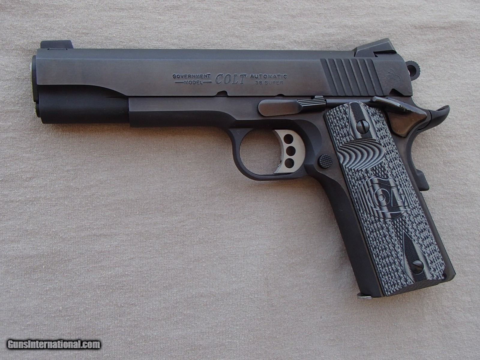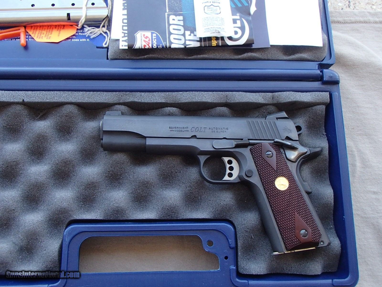 Description: New in Case, unfired Colt Government .38 super. National Match, high end competiton pistol, full featured, Lew Horton special order with Letter. Two stainless magazines, two sets of Grips, all paperwork and case, as shipped from the factory. Top quality, modern Colt 1911 that rivals much more expensive 1911's. Collector potential limited run for Lew Horton. Any perceived surface anomolies in the pictures are due to residual preservation oil. The gun's finish is flawless. This is a beautiful 1911 in a great caliber. $35 to ship to your FFL west of the Mississippi; $40 to the east. T H A N K S SOLD Manufacturer: Colt Model: 1911 Goverment Caliber Info: .38 super Finish: blue |