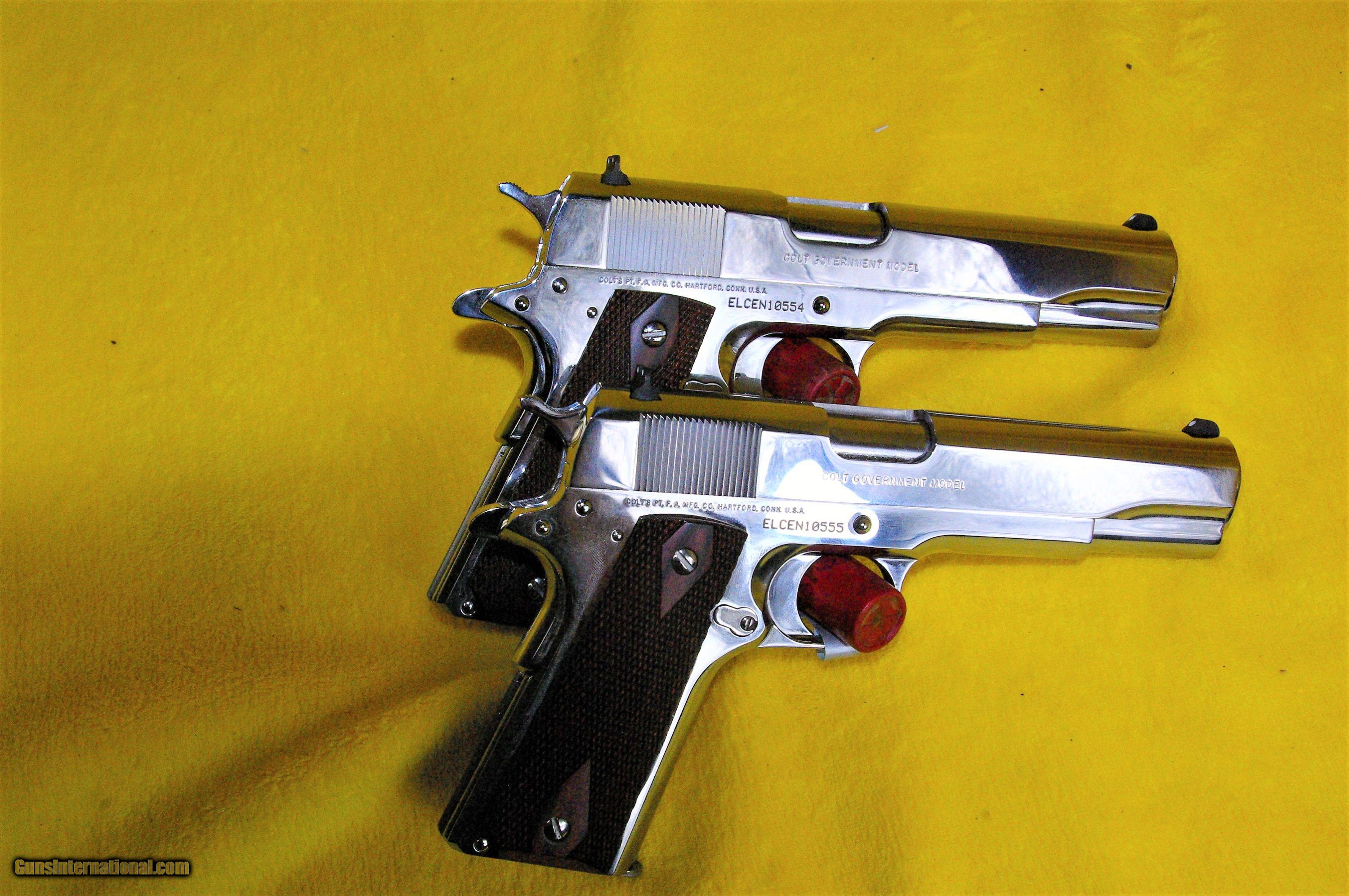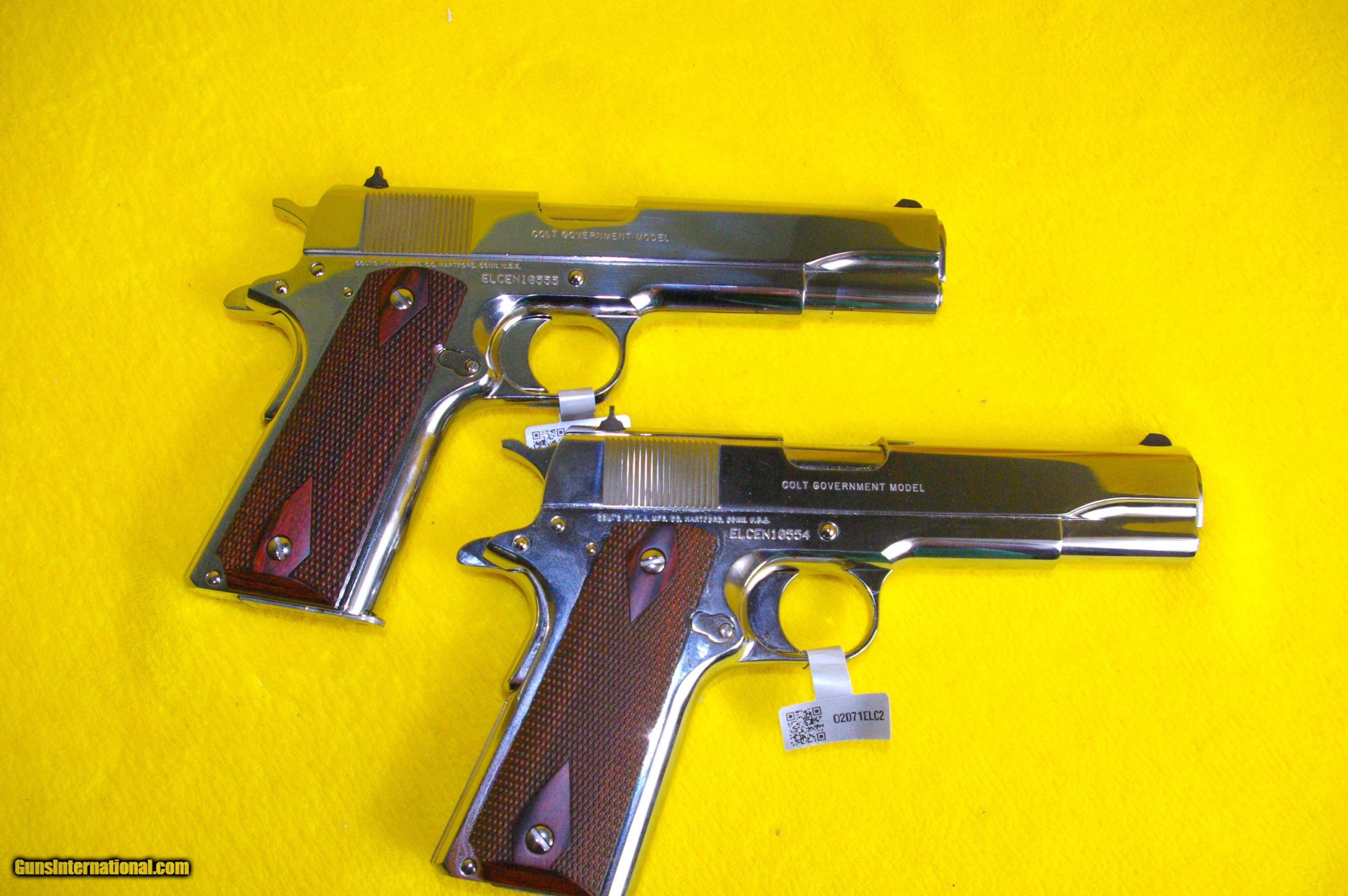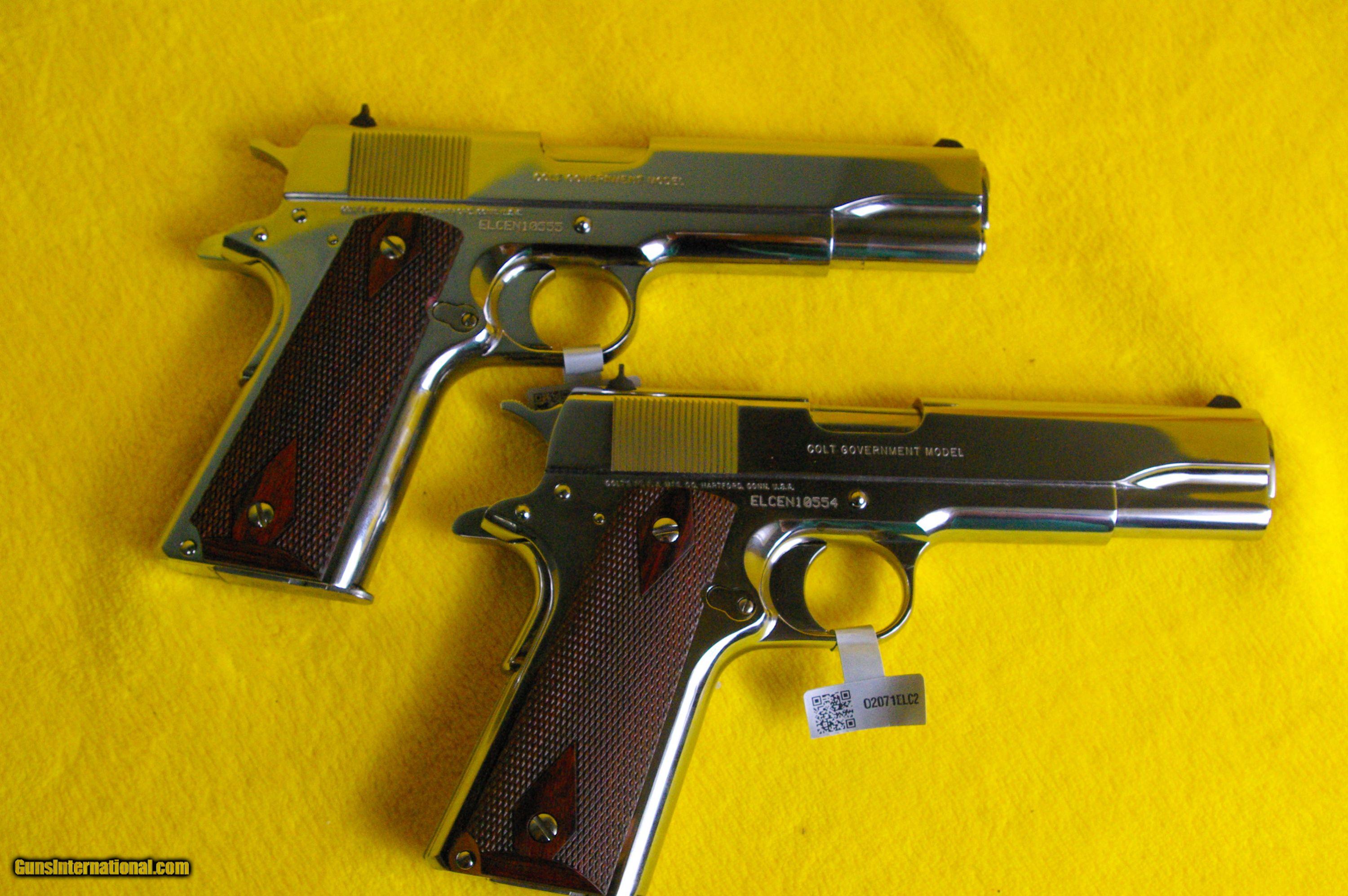 Description: PRICE REDUCTION!!! LOOK AT THIS! We have an exceptional offering! For $3750.00, We have for sale a matched pair of sequentially serial numbered Colt Custom Government Model pistols in .38 SUPER caliber. The factory finish on these pistols is a highly polished stainless steel. Even the trigger is HPSS! The stocks are beautifully checkered rosewood grips. These are 1991 series , built on an 80 Series firing system.$3,750.00These are brand new pistols, in pristine condition. The photos will speak for themselves. Don’t pass up on this once in a lifetime opportunity! And speaking of lifetimes; a Lifetime warranty is included in the purchase price for the pair. SOLD Manufacturer: Colt Caliber Info: .38 Super Condition: new Metal Condition: new Wood Condition: new |