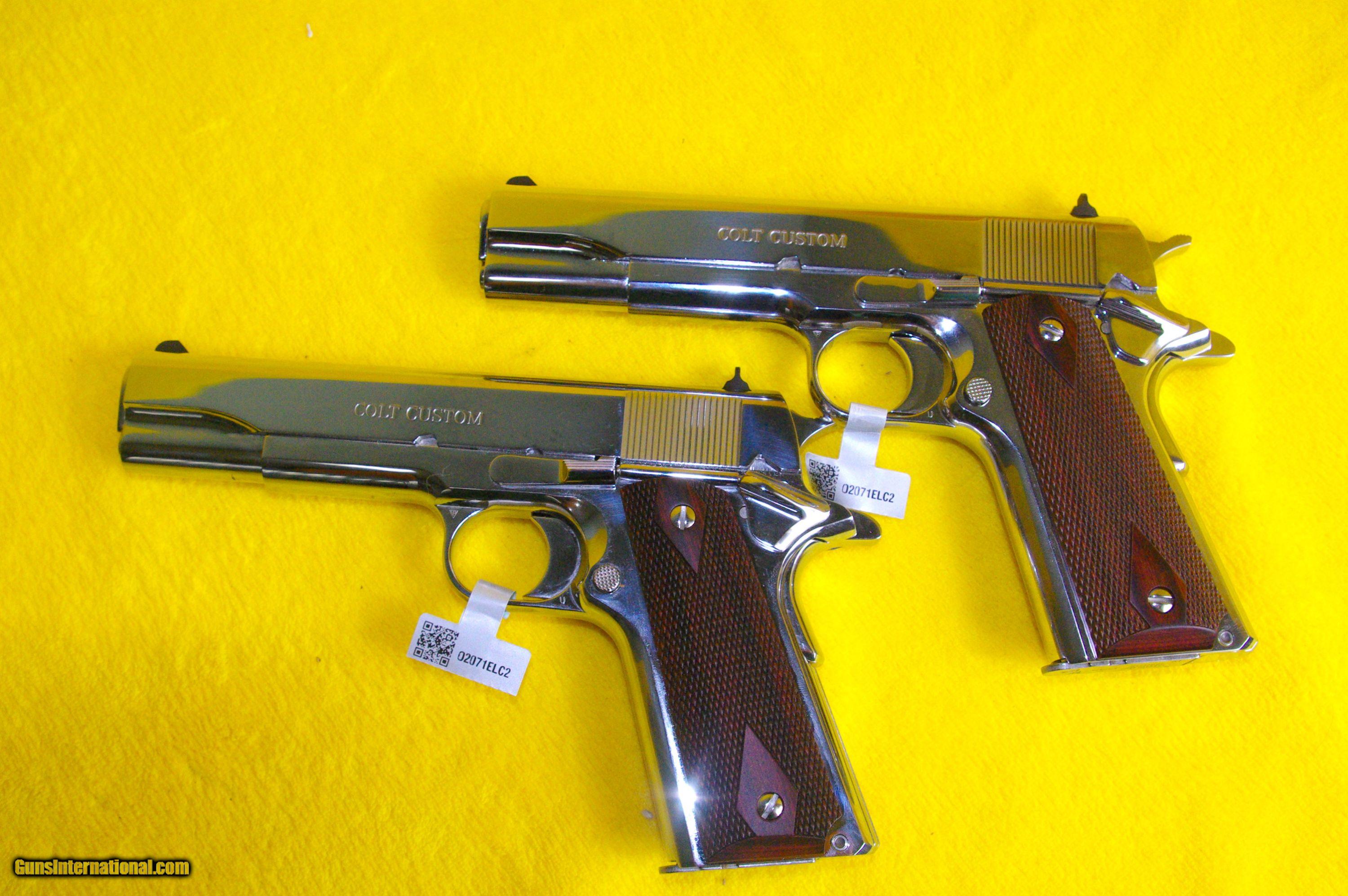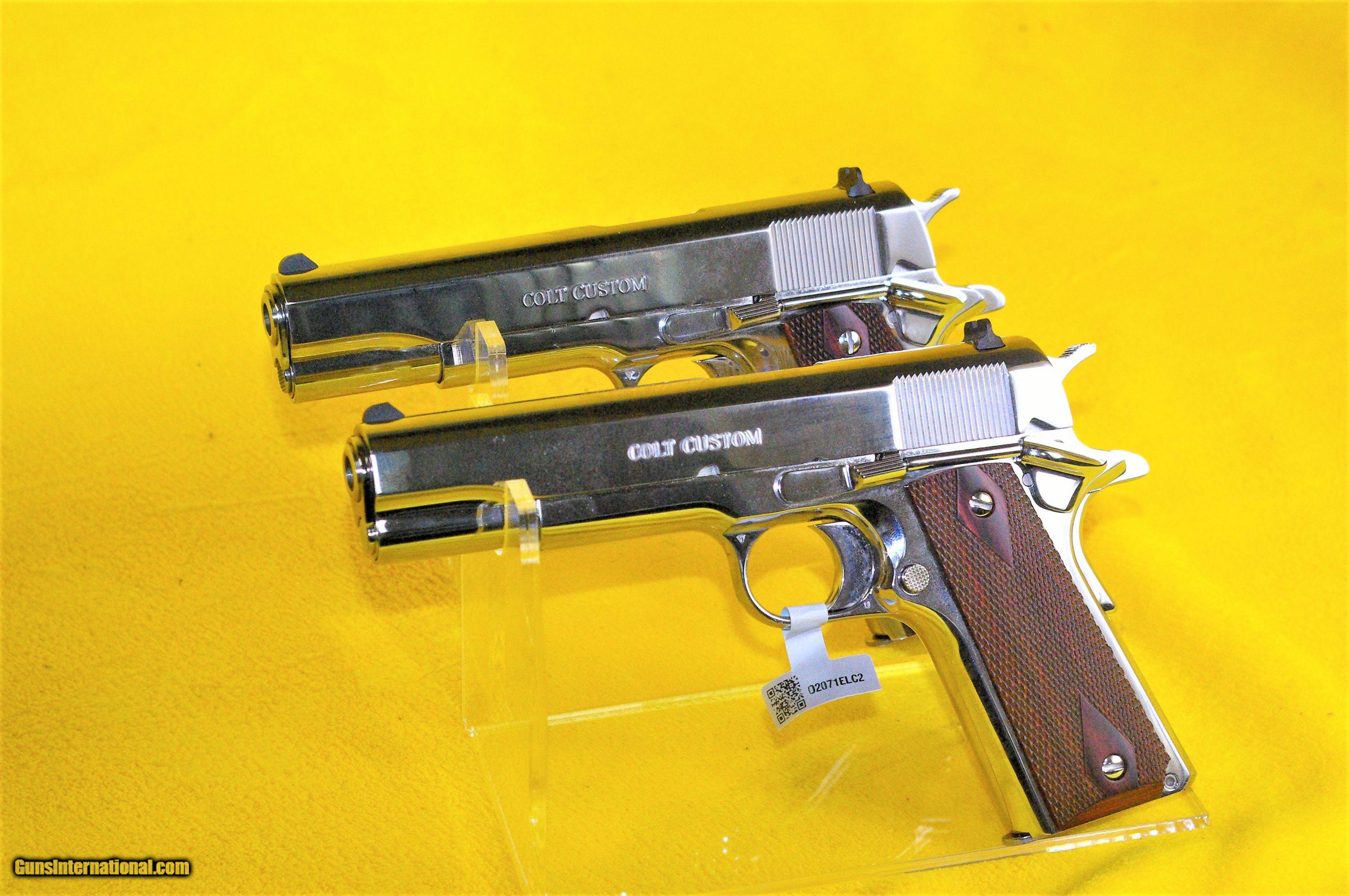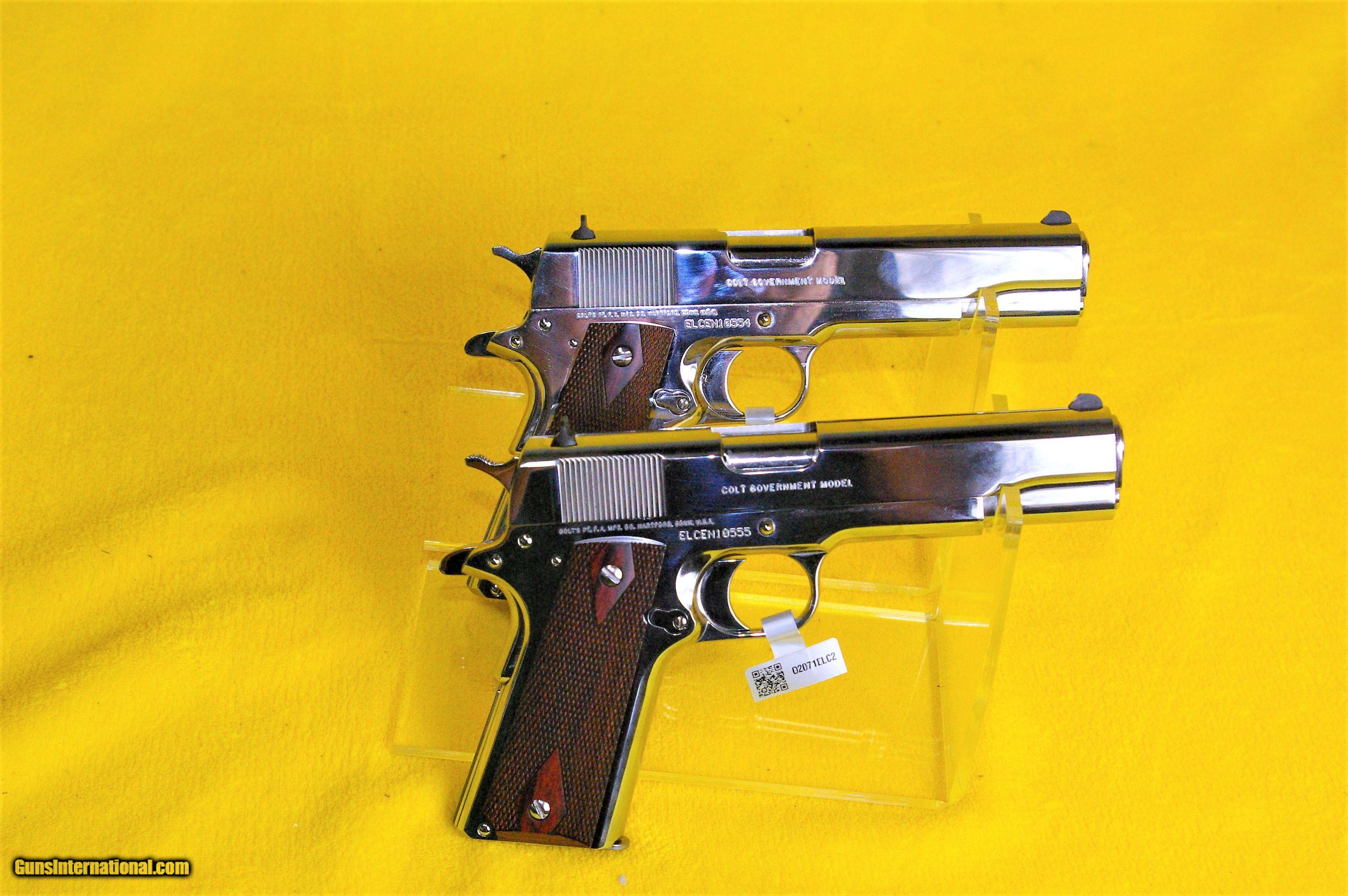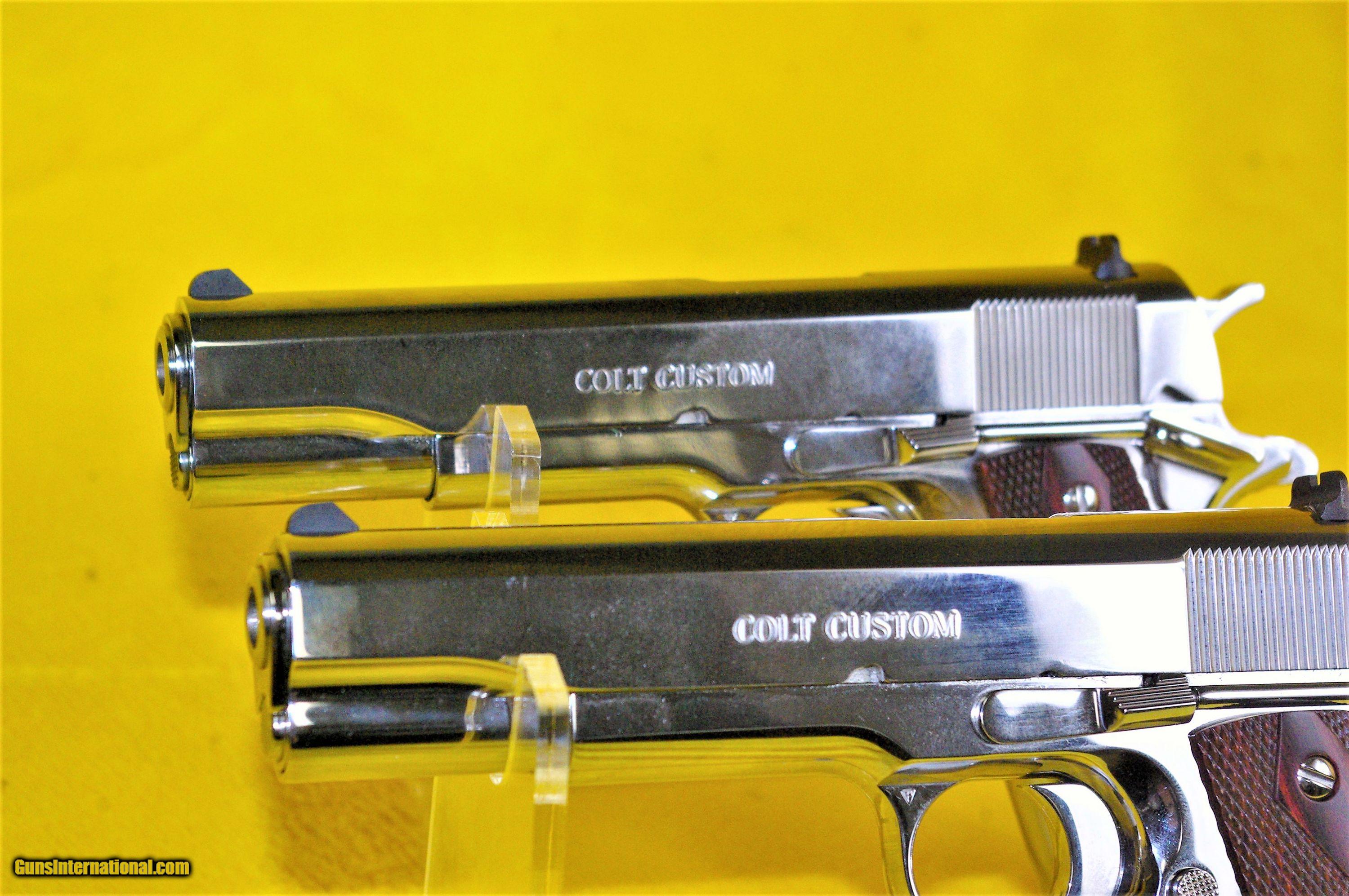Description: PRICE REDUCTION!!! LOOK AT THIS! We have an exceptional offering! For $3750.00, We have for sale a matched pair of sequentially serial numbered Colt Custom Government Model pistols in .38 SUPER caliber. The factory finish on these pistols is a highly polished stainless steel. Even the trigger is HPSS! The stocks are beautifully checkered rosewood grips. These are 1991 series , built on an 80 Series firing system.$3,750.00These are brand new pistols, in pristine condition. The photos will speak for themselves. Don’t pass up on this once in a lifetime opportunity! And speaking of lifetimes; a Lifetime warranty is included in the purchase price for the pair. SOLD Manufacturer: Colt Caliber Info: .38 Super Condition: new Metal Condition: new Wood Condition: new |