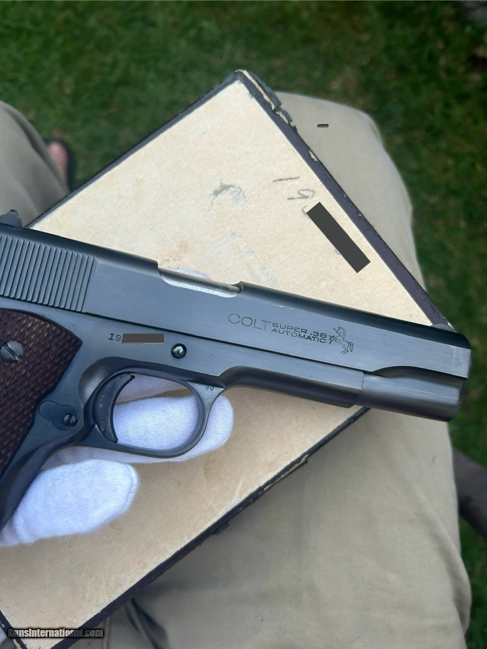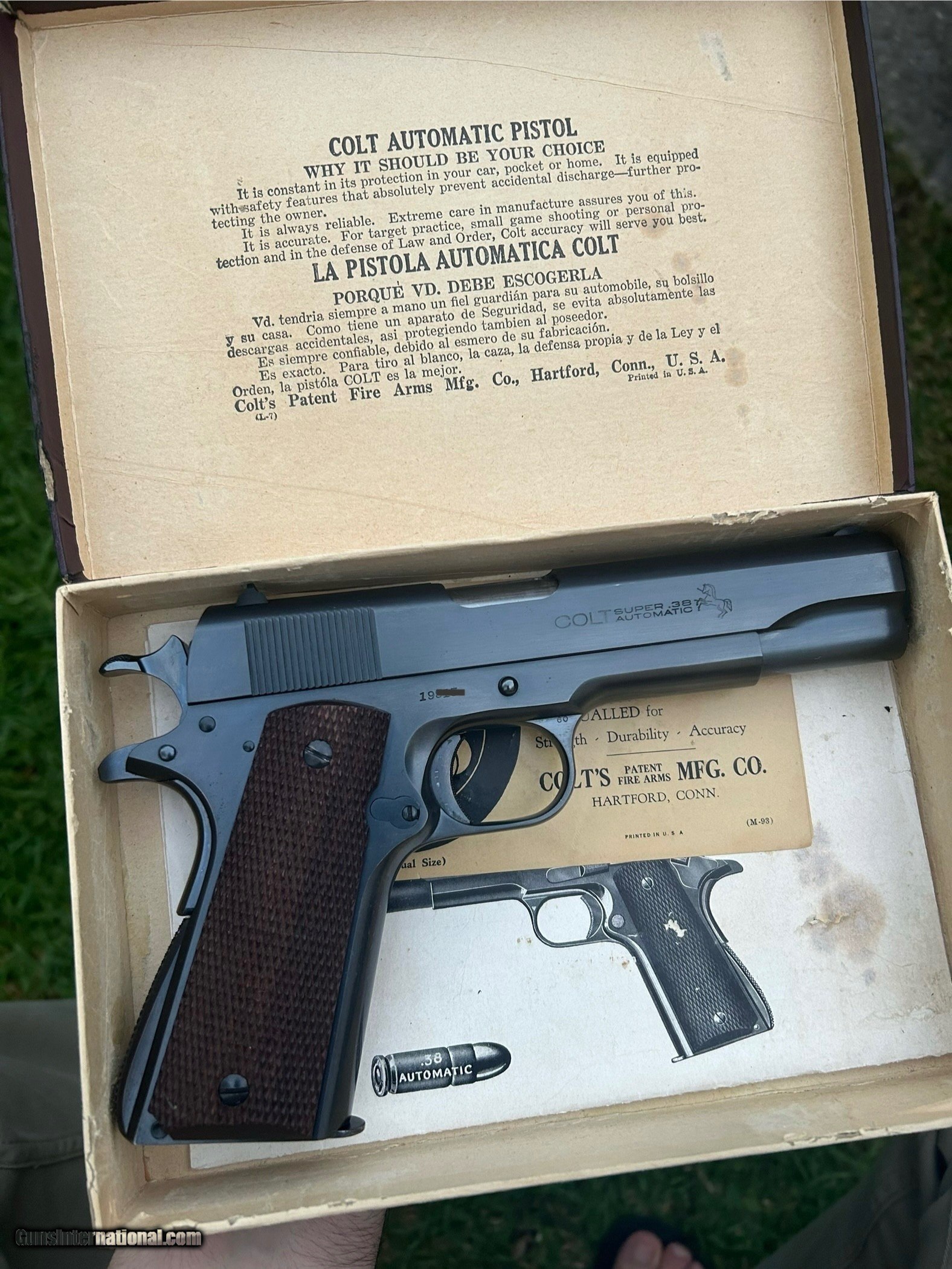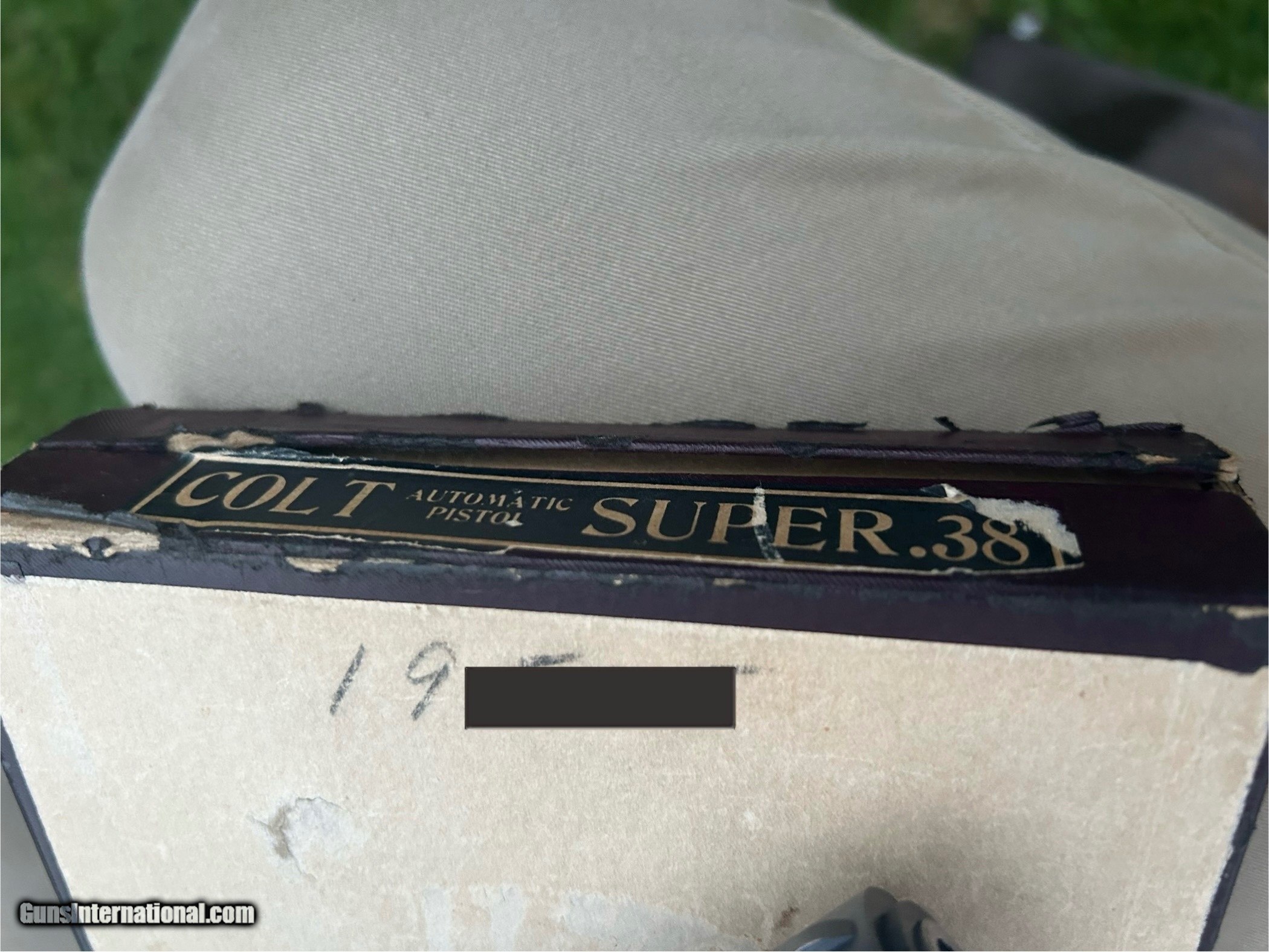 Description: Excellent Colt super 38 Prewar manufactured 1936 Fine example complete with original matching serial box to gun. They are Becoming harder to come by in complete original factory condition. SOLD Curio/Relic: Yes |