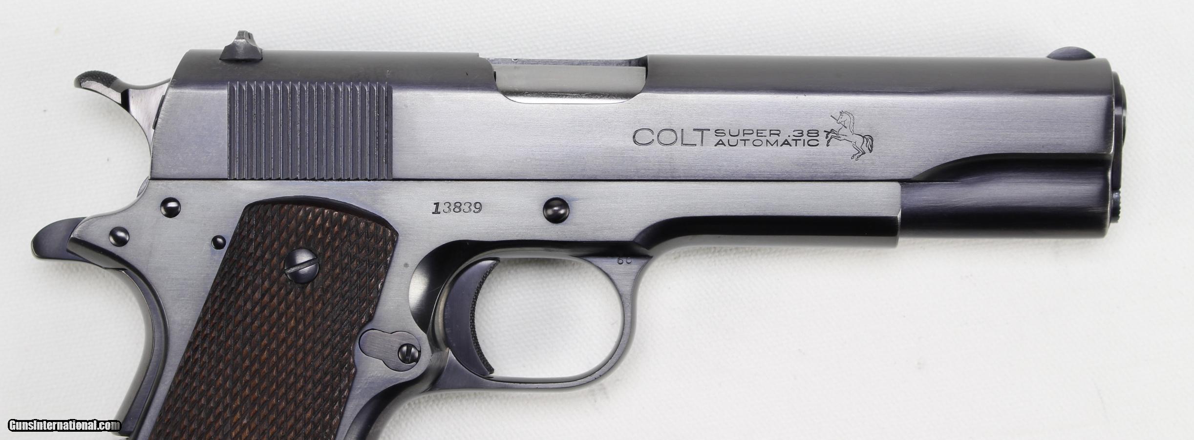 Description: COLT, 1911A1, SUPER 38, "FINE CONDITION W/ORIGINAL BOX. SN#13839, MFG: 1932, Factory Polished Slide, & Frame, Original Wooden Grips, Original Box & Paperwork.. Excellent Condition overall. Ships to Lower 48, $65.00 SOLD Manufacturer: COLT Model: 1911A1 Serial Number: 13839 Caliber Info: SUPER 38 Condition: EXCELLENT Barrels: 5 |