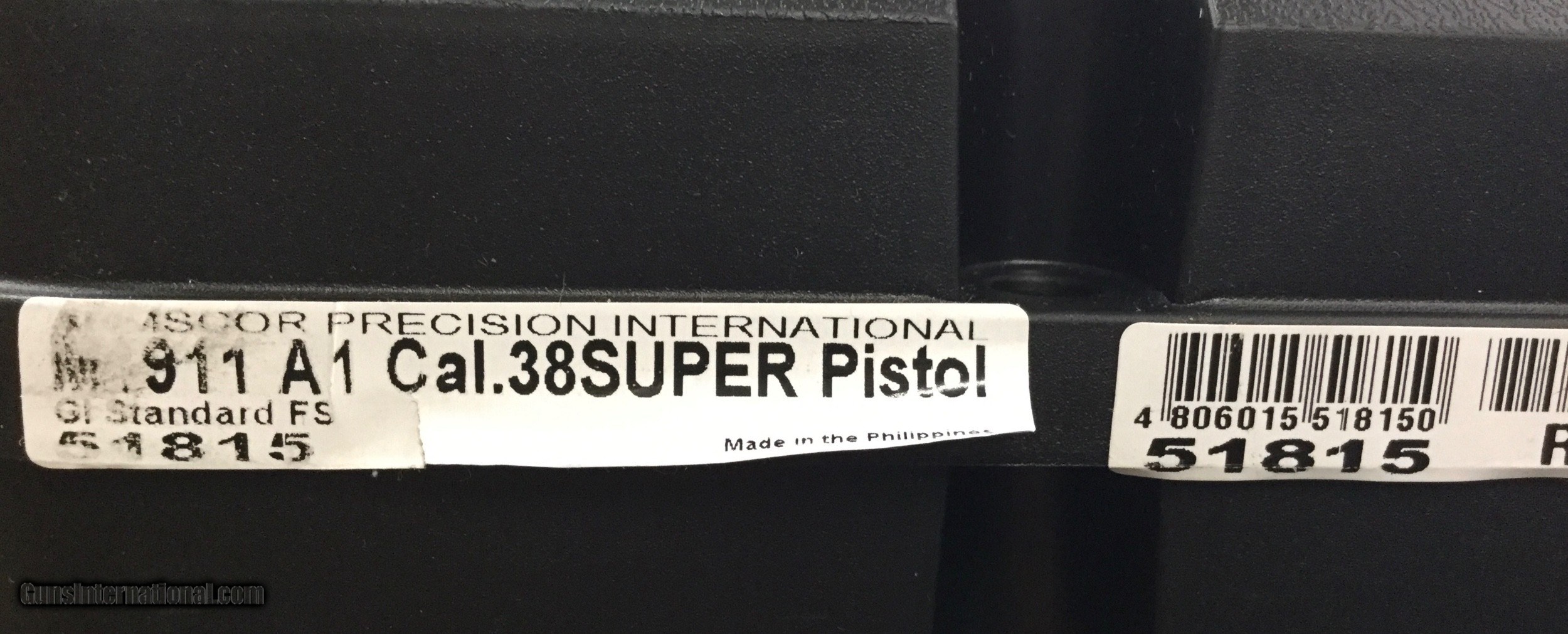 Description: ~~NEW~~ Rock Island 51815 GI Standard FS *CA Compliant 38 Super 5" 9+1 Black Parkerized Steel Frame & Slide Wood Grip. $475.00 plus $40.00 insured and shipped to your FFL dealer. Add 3% for payments by card. "The M 1911 GI standard is a great representation of the original US GI combat issue 1911 and is chambered in 38 Super and built with our exacting engineering standards. Fixed, low profile sights and traditional smooth slim design are perfect for quick pull holster use. A durable parkerized finish gives it a tough, smooth, non-reflective surface. Smooth wood grips offer comfort in both feel and design. The 5" barrel offers a balanced weight to assist with the accuracy and recoil that made the original 1911 design famous. True to all Rock Island 1911s, the GI Standard comes with a crisp factory 4- to 6-pound trigger to make it a great experience right out of the box." ~~Sports South SOLD |