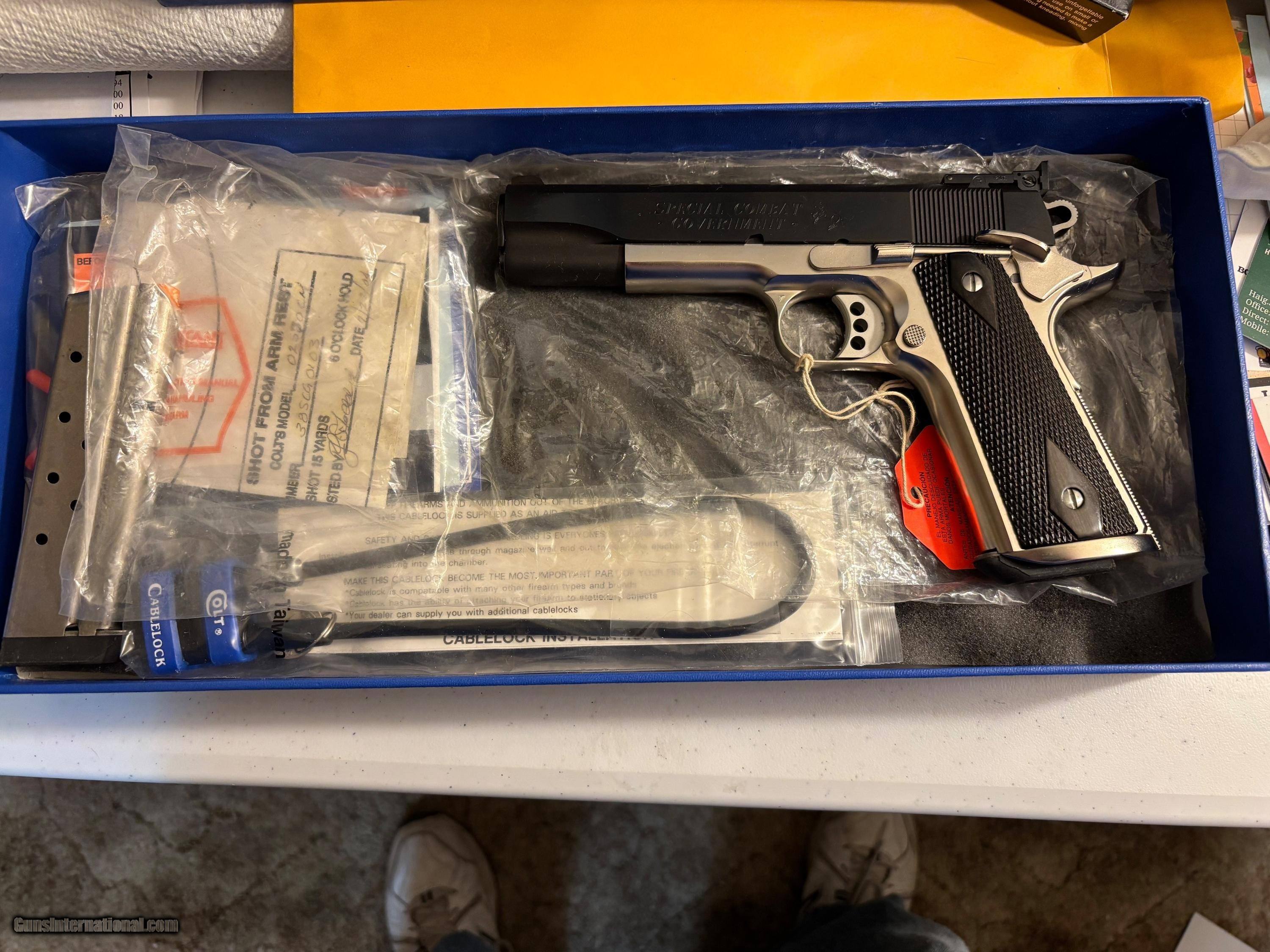 Description: Special Combat Government, Competion Model, 5" Bbl., 38 Super, Blue/Satin Nickel. This is NIB Old Stock Unfired, I was an FFL in Iowa and Have moved. It has everything as it left the factory with. I will ship to your FFL in the continental 48 States with insurance to cover the total price. Handgun Caliber: .38 Super Auto Manufacturer: Colt Model: 02570CM Serial Number: 38SCG0103 Barrel Length: 5 Condition: New Metal Condition: New Bore Condition: New Price: $2,400.00 Shipping: $150.00 Buy Now Contact Seller |