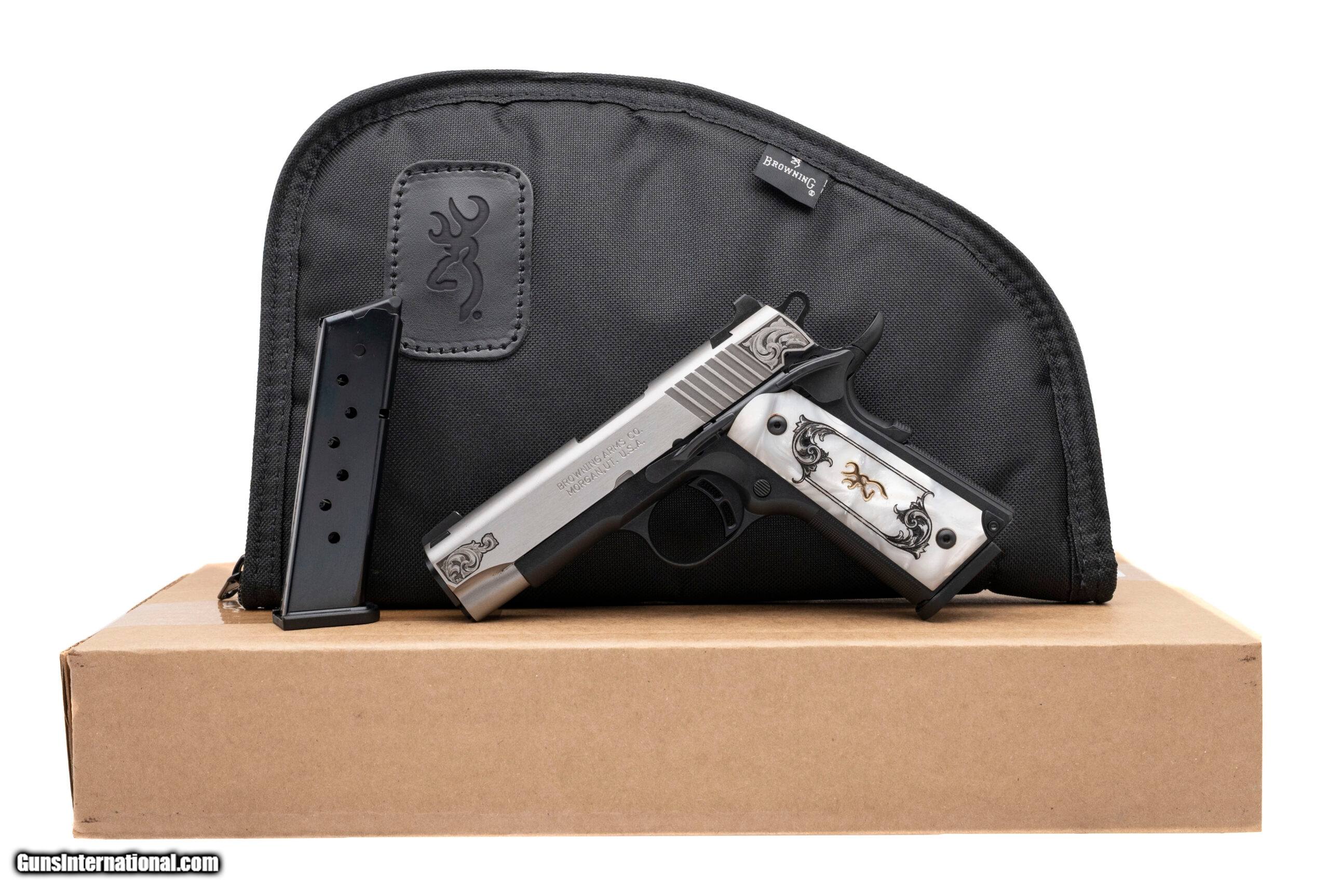 Description: "Polymer Frame 1911 Style Pistol with a 3.6"" Barrel. Single-Action Only, 3-Dot Sights, Ambidextrous Manual Thumb Safety, Engraved Stainless Steel Slide, and Engraved Faux Peral Grips w/Gold Inlay. Includes 2-8rd Magazine. NEW. UPC: 023614743095 (STOCK PHOTO) Price: $1,099.95 Contact Seller |