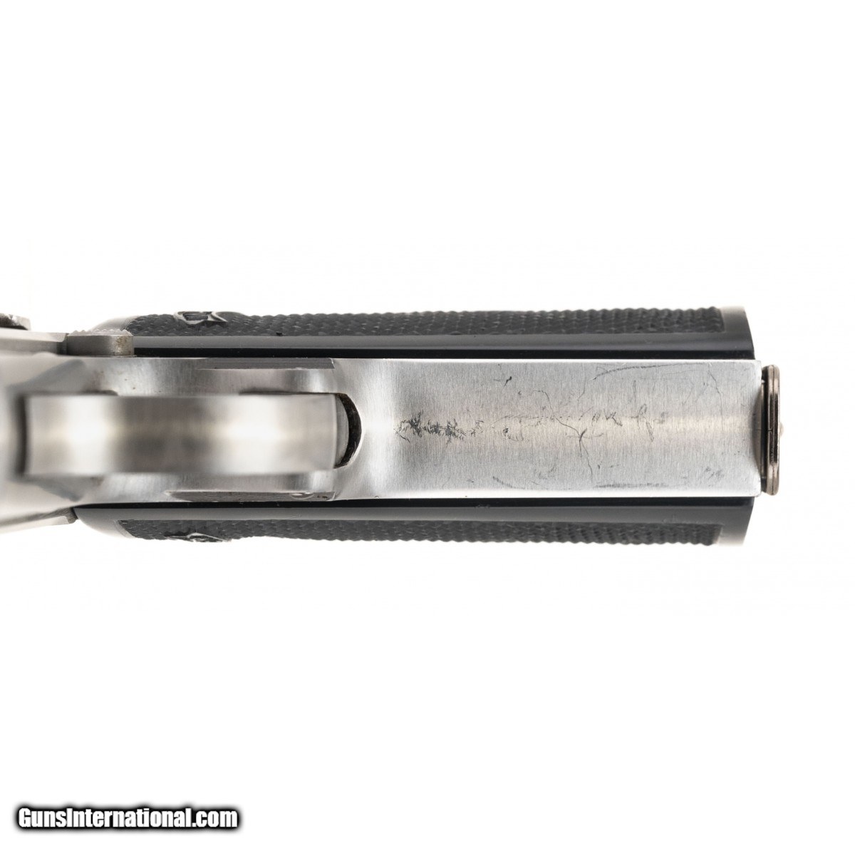 Semi-auto metal frame pistol with a 3.6"" barrel, fixed sights and, a manual safety. Overall in very good condition, comes with a box.
