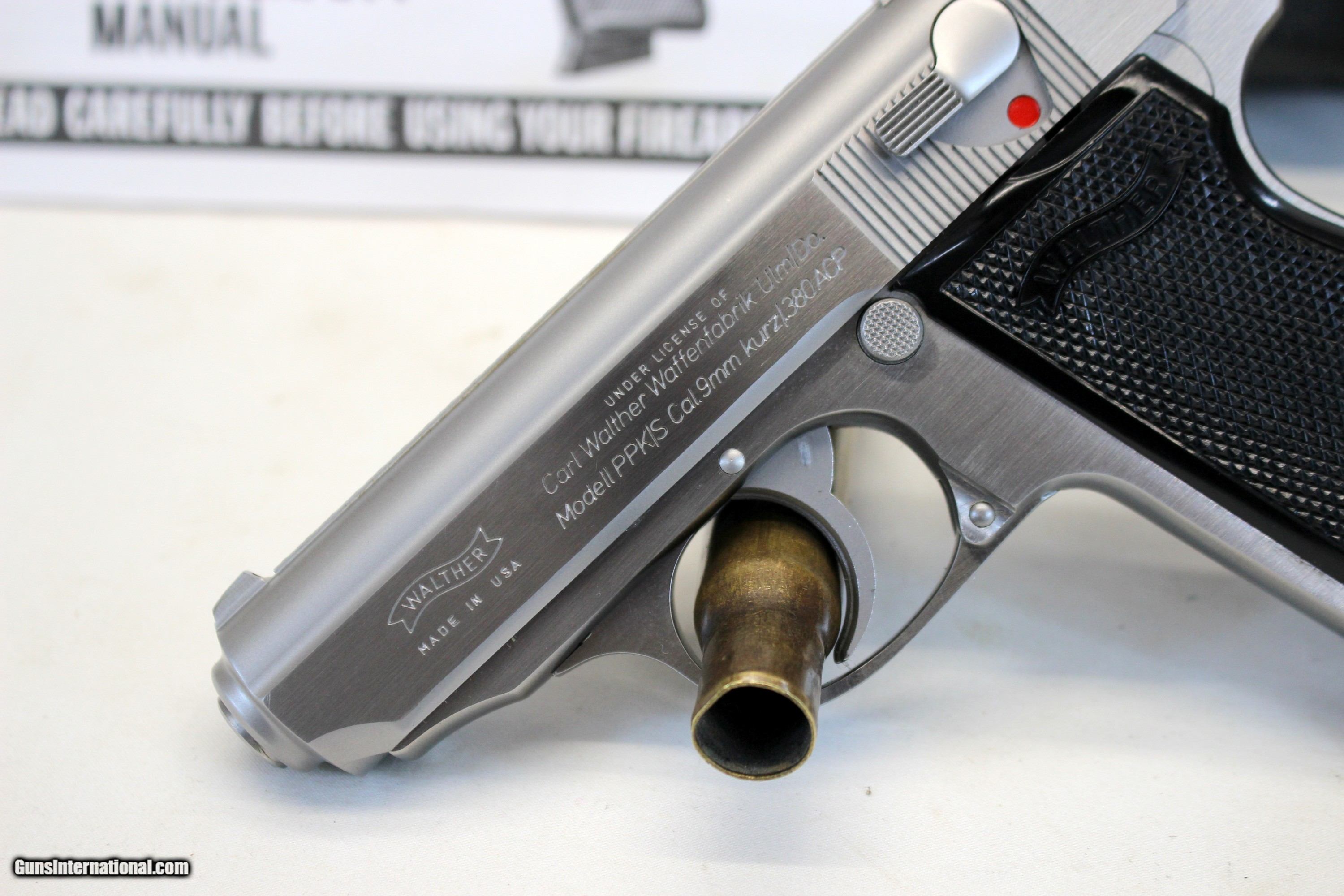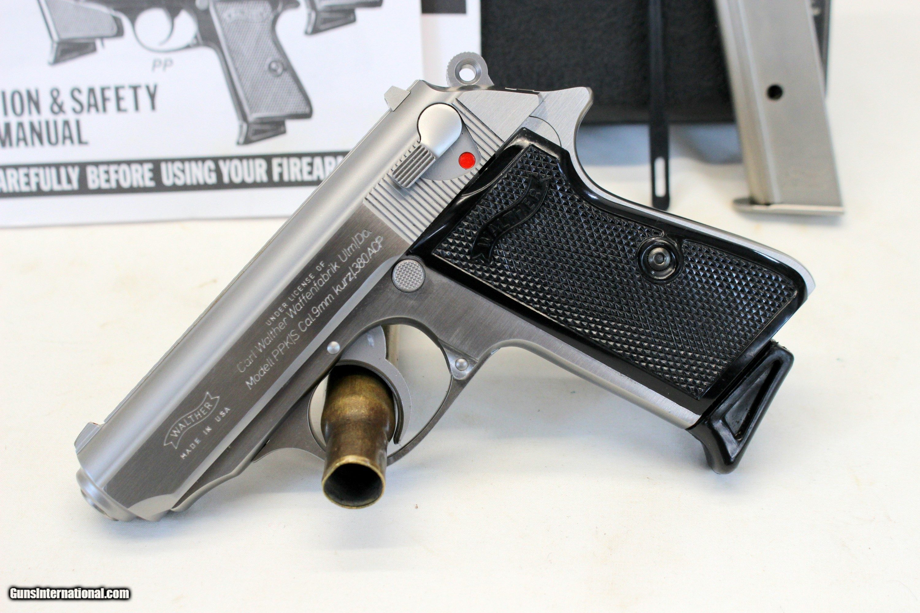 1996 Interarms WALTHER PPK/S semi-auto pistol .380acp Case, Manual, (2) Mags & Target