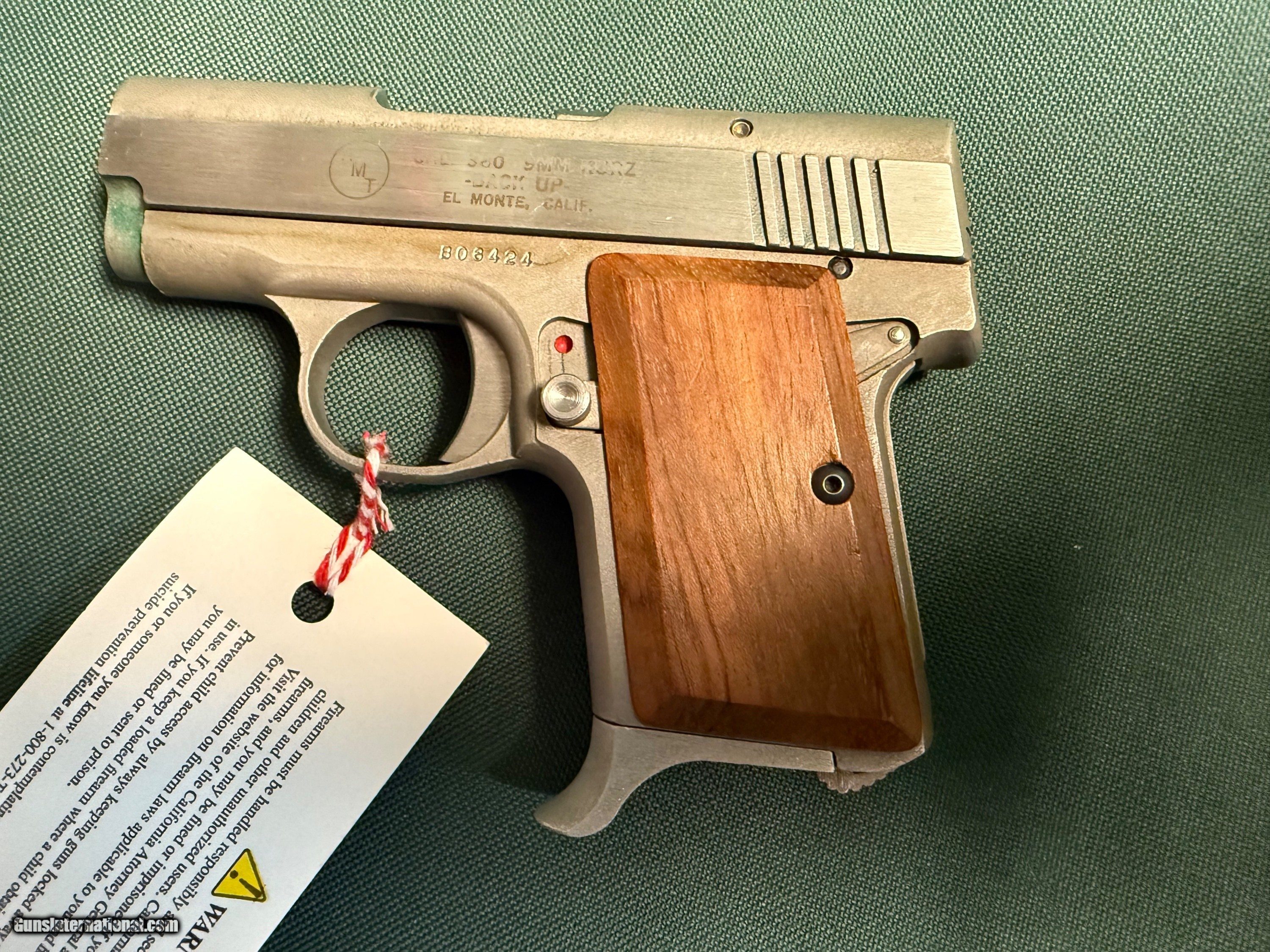 Description: AMT Back Up pistol chambered in 380acp with a 2.5" barell Handgun Caliber: .380 ACP (9x17mm Browning Short) Manufacturer: AMT Model: Back Up Serial Number: B06424 Barrel Length: 2.5 Condition: Very Good Price: $650.00 Contact Seller |