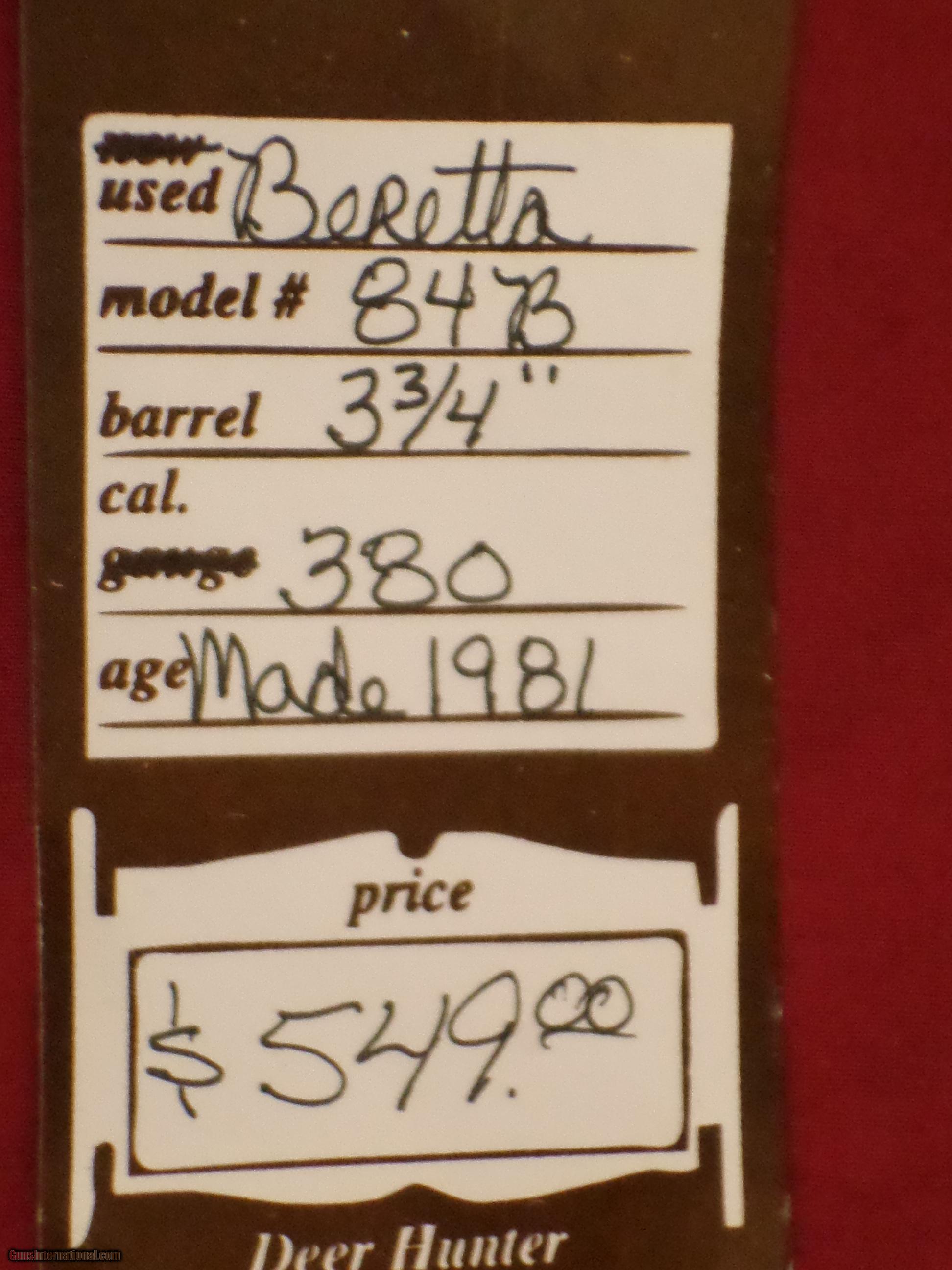 Description: SOLD For sale, Beretta 84B .380 pistol, excellent condition. Circa 1981 SOLD To see more of our inventory, visit deerhunterguns,com We collect 7% sales tax for Florida sales. We accept MC, Visa and Discover, no AmEx. No Sales to California. Like us on Facebook: Deer Hunter Guns SOLD |