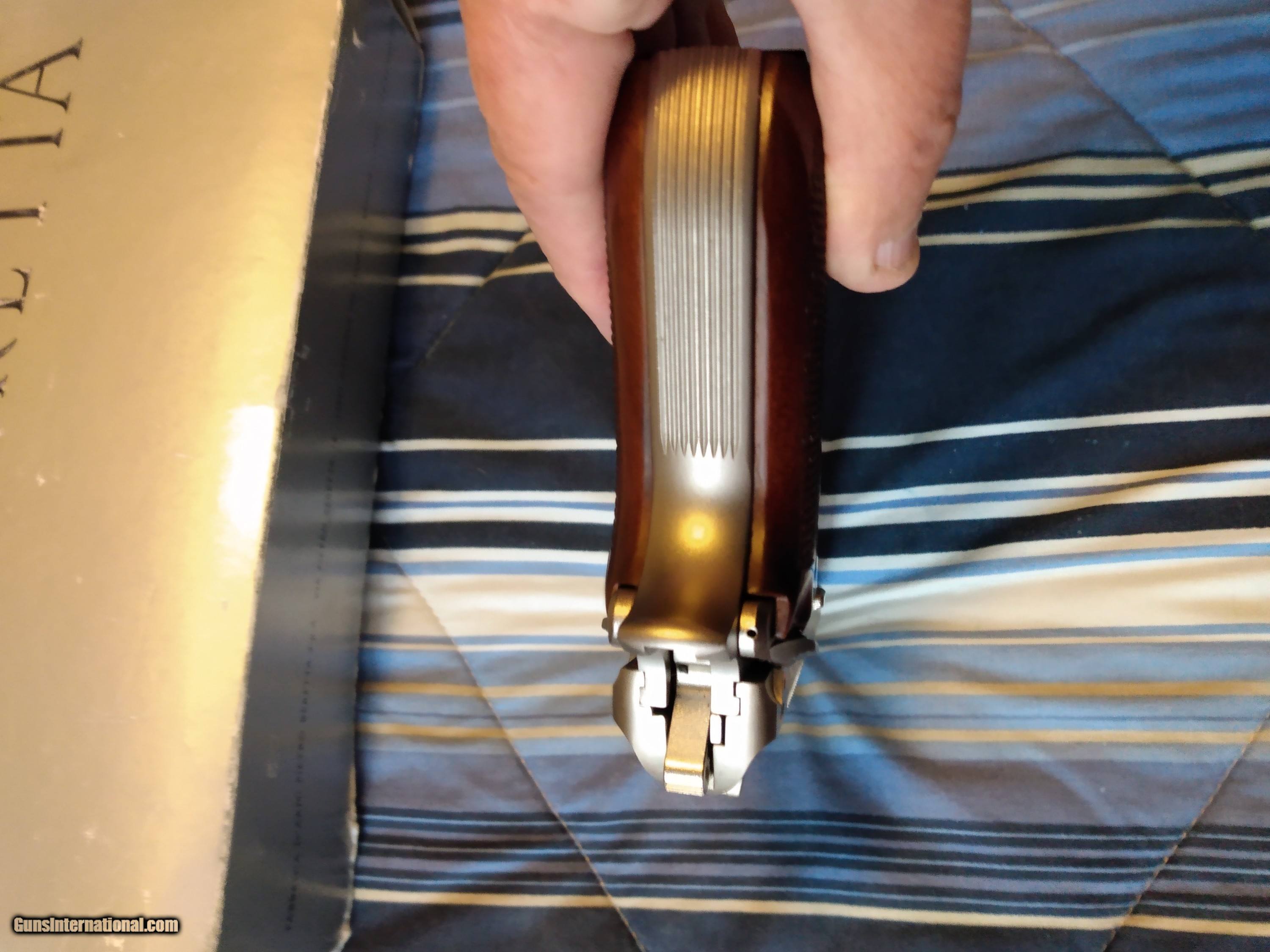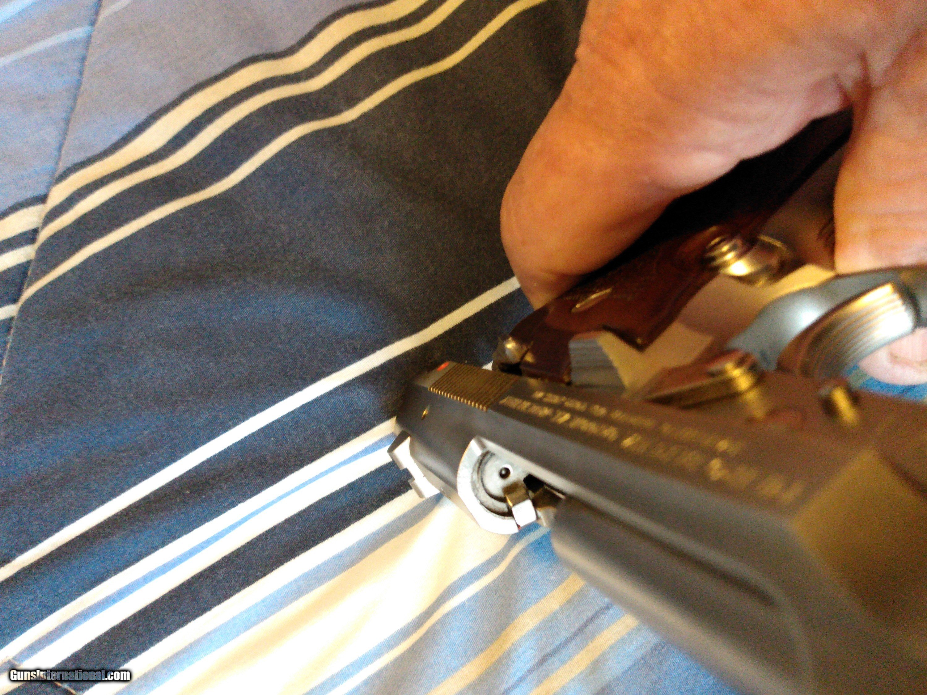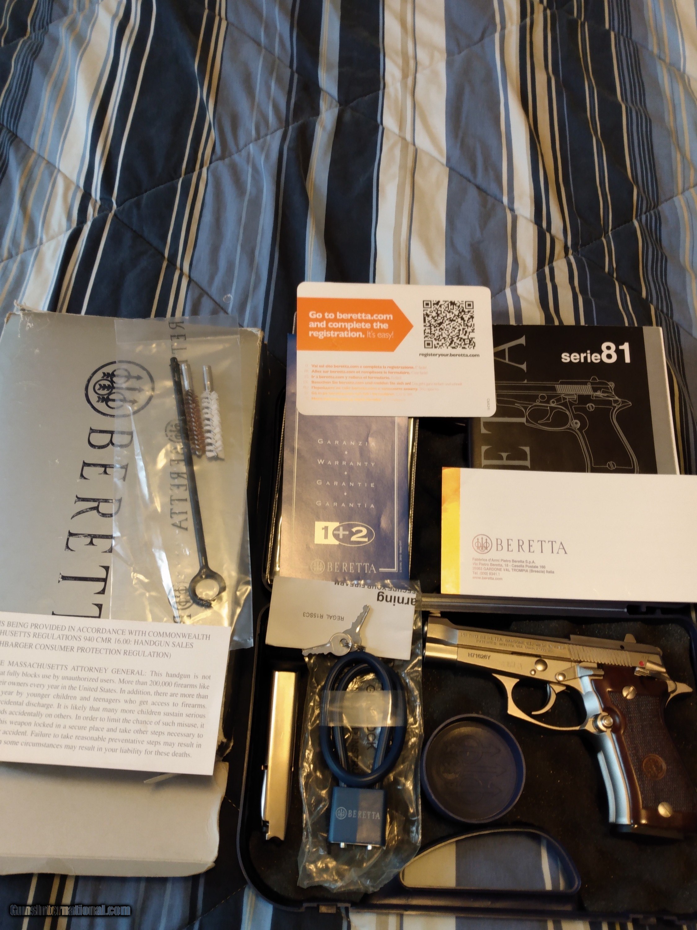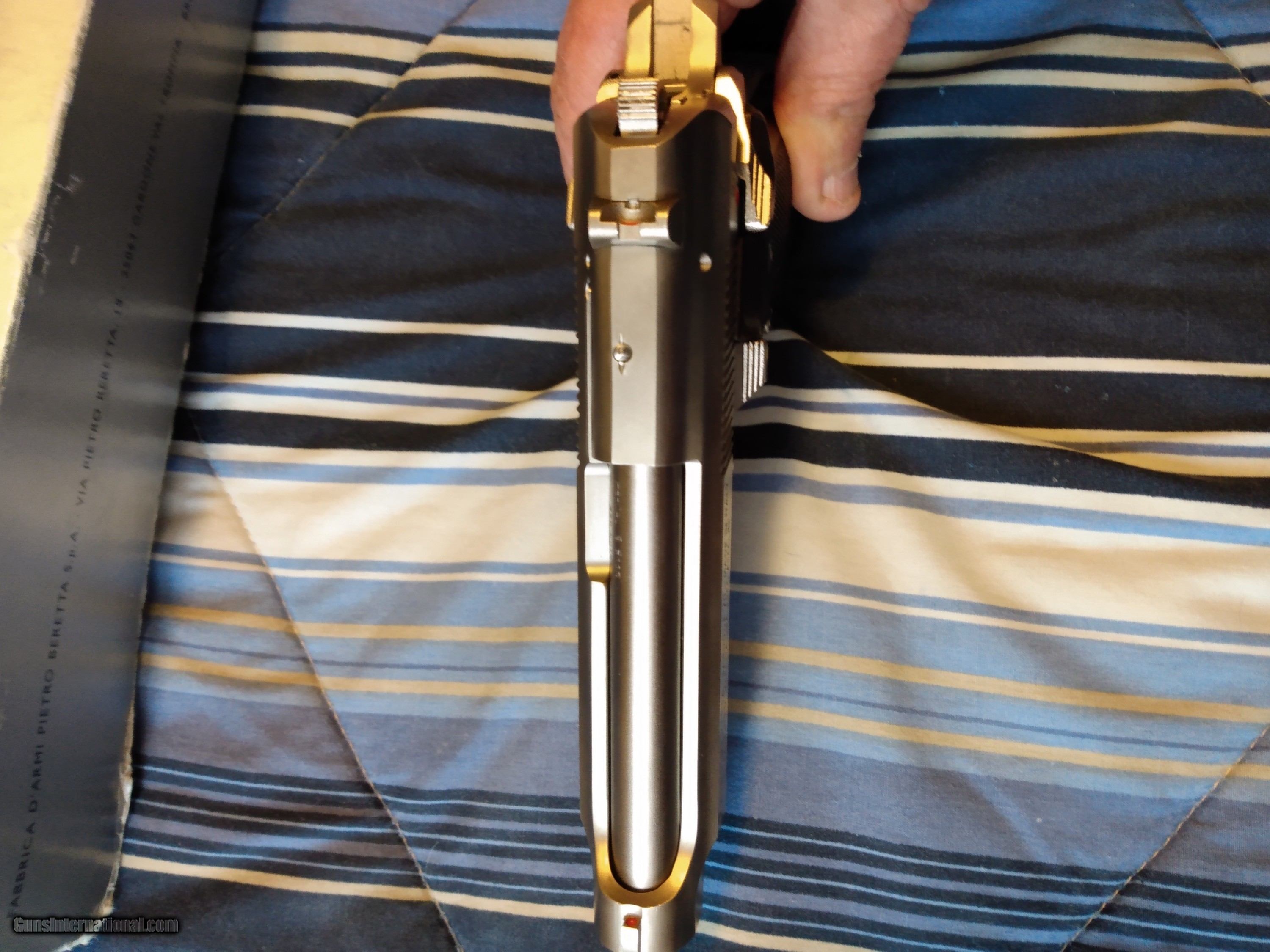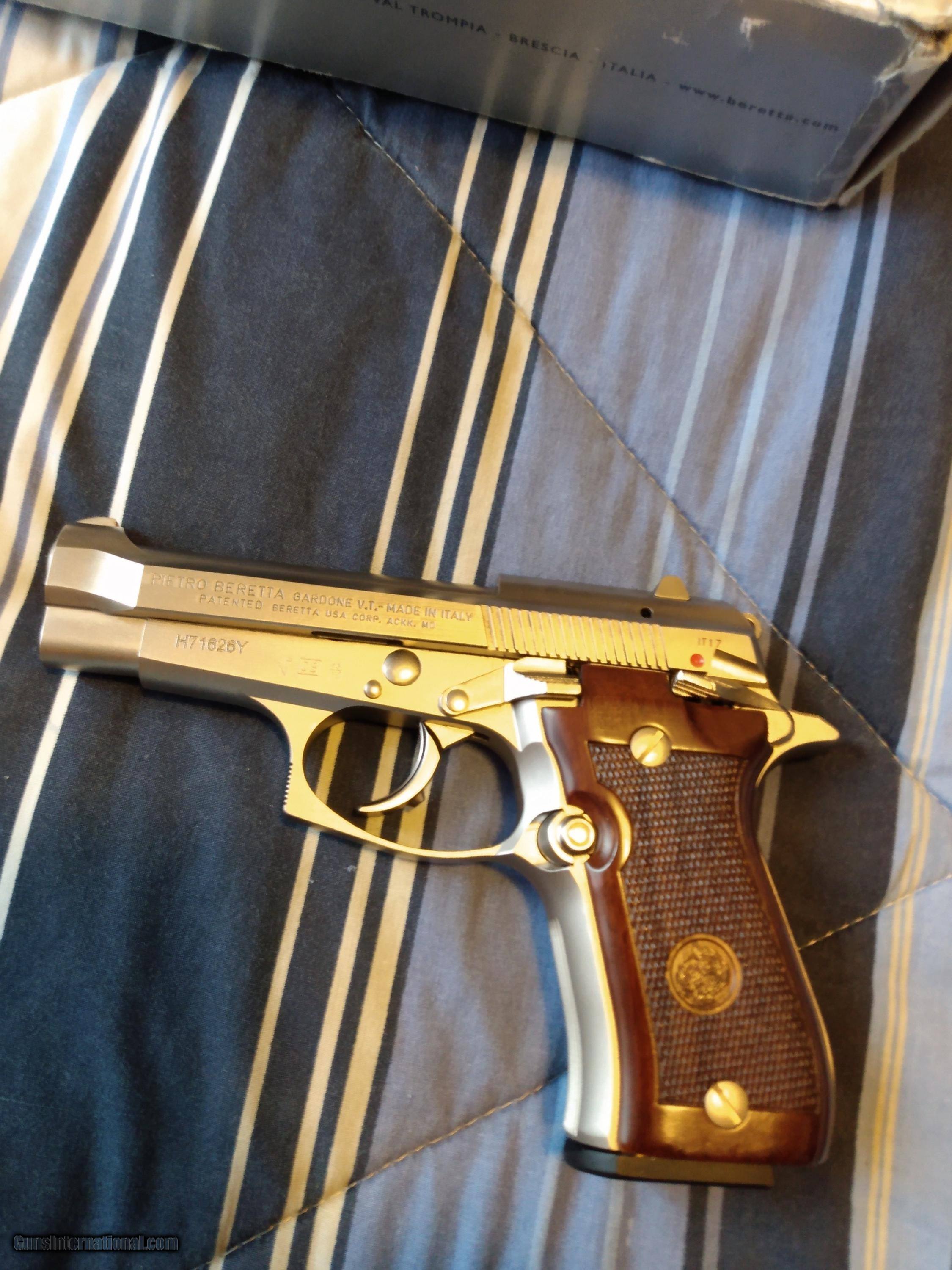 Description: Here is a hard to find Beretta model 84fs in beautiful nickel finish with walnut grips. It is in excellent condition. Comes with original factory hard case. Also has cardboard outer sleeve which is rare.It is numbered to the gun. Has all original accessories that shipped with it from Beretta. Owners manuals, (2) warranty,registration and warning card, safty gun lock, and cleaning kit with 2 brushes still sealed in factory plastic. Also has case spacer. Comes with 2 13rd. factory nickel magazines. One shows wear,the other is excellent condition. If you are a Beretta collector or just love Beretta quality don't miss out on this one. Tried to get good pictures. This gun is shipped with insurance and shipping included in price. Call if you have questions. Handgun Caliber: .380 ACP (9x17mm Browning Short) Manufacturer: Beretta Model: 84fs nickel Serial Number: H71626Y Barrel Length: 3.8 in. Condition: Excellent Metal Condition: Excellent Wood Condition: Excellent Bore Condition: Excellent Finish: Nickel Sights: Red dot front and rear Manufacture Date: 1917. CS code Case: Factory hard case with original cardboard sleeve. Grips: Checked walnut Price: $1,800.00 Contact Seller |