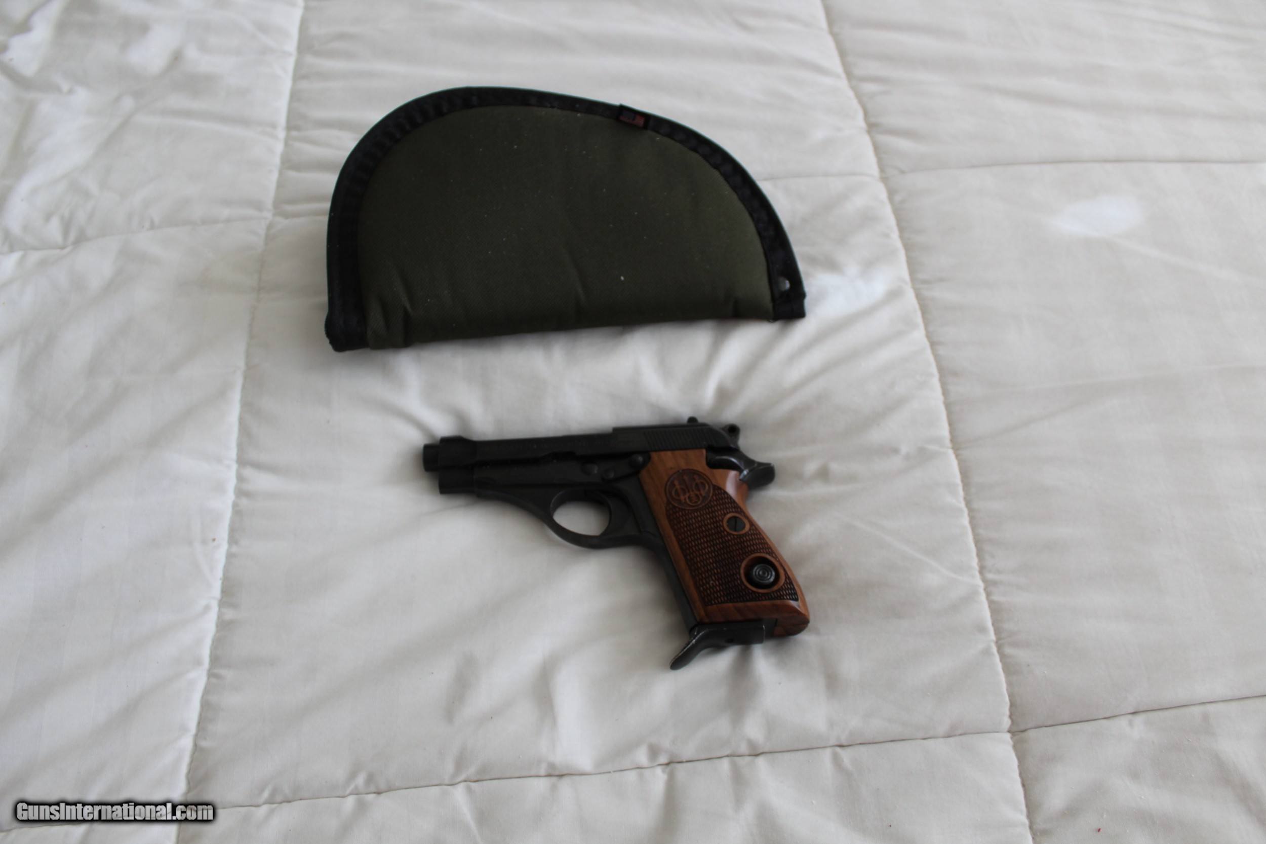 Description: PRICE REDUCED Beretta Model 70S in 380 caliber. This little pistol is in MINT condition, I see no marks on it, anywhere. The gun has wooden Beretta grips which are in mint condition. The barrel is 3&1/2". There is a single magazine with the pistol, no box but it comes with a Allen soft case, There is no paperwork with the pistol. This gun as with all "used" guns should be inspected by a trusted gunsmith before firing. We offer a 3 day NON-FIRING inspection period and you may reurn it at your expense, if you don't like it for any reason. No Califonia sales, sorry. Postage and shipping will be at actual cost. SOLD |