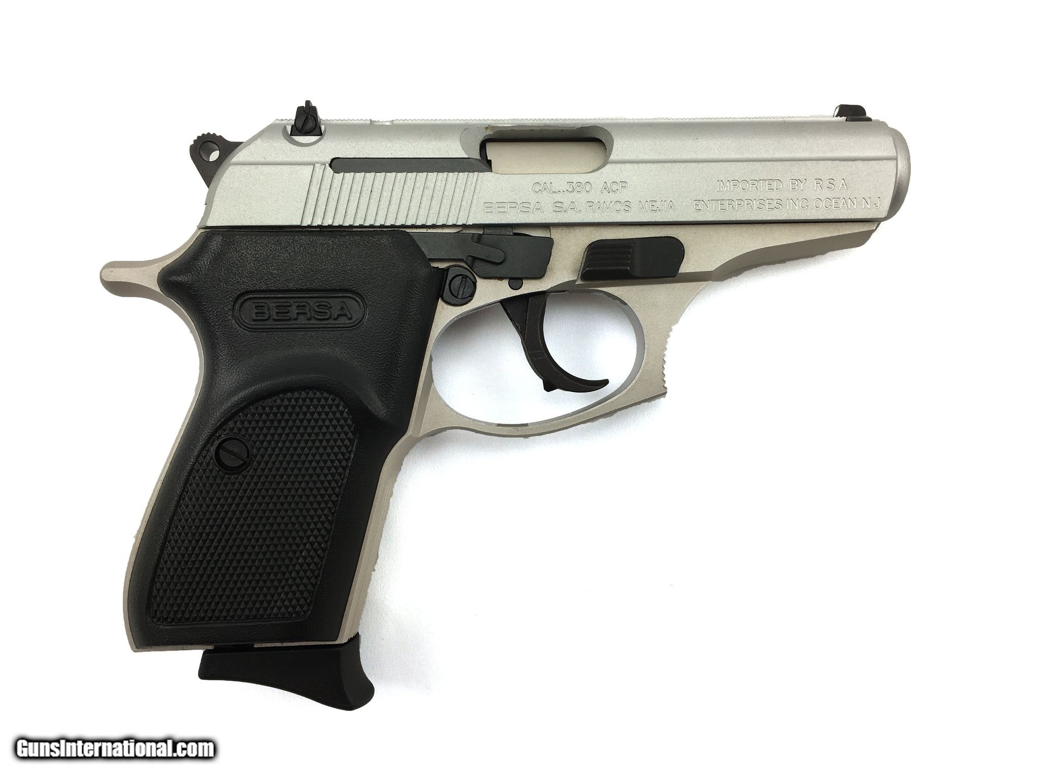 Description: Guns Listing ID: 17148 The Bersa Thunder is a semi-automatic pistol. It features a lightweight aluminum alloy frame steel slide with rear cocking serrations 3.5 barrel micro-polished bore with deep rifling integral blade front and notched-bar dovetailed rear three-dot sights combat style trigger guard checkered polymer grips with long rearward tang to prevent hammer and slide bite magazine with extended finger rest decocker and integral locking system. Some models additionally feature an automatic firing pin block. Details Bersa T380NKL8 Thunder 380 SingleDouble 380 Automatic Colt Pistol (ACP) 3.5 81 Black Polymer Grip Nickel Manufacturer: BERSA Model: THUNDER 380 Caliber Info: .380 ACP Condition: new Barrels: 3.5" BARREL Action: DOUBLE ACTION Finish: NICKEL Weight: 1.3 LBS. Price: $307.99 Contact Seller |