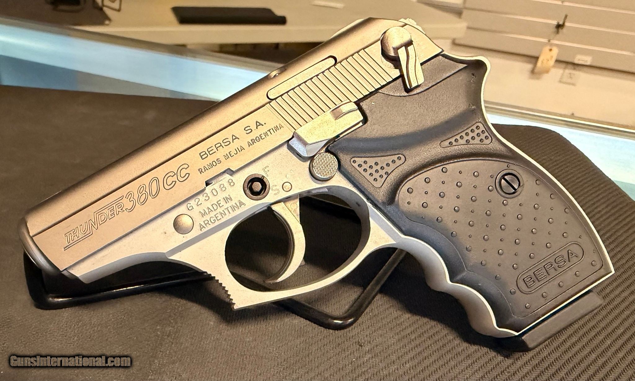 Description: Guns Listing ID: 615564 - EXCELLENT CONDITION - ORIGINAL BOX - ONE 7 ROUND MAGAZINE Manufacturer: BERSA Model: Thunder 380 CC Caliber Info: .380 ACP Condition: Used - Non-Certified Barrels: 3.5" BARREL Action: SEMI AUTOMATIC Finish: silver and black Price: $275.99 Contact Seller |
