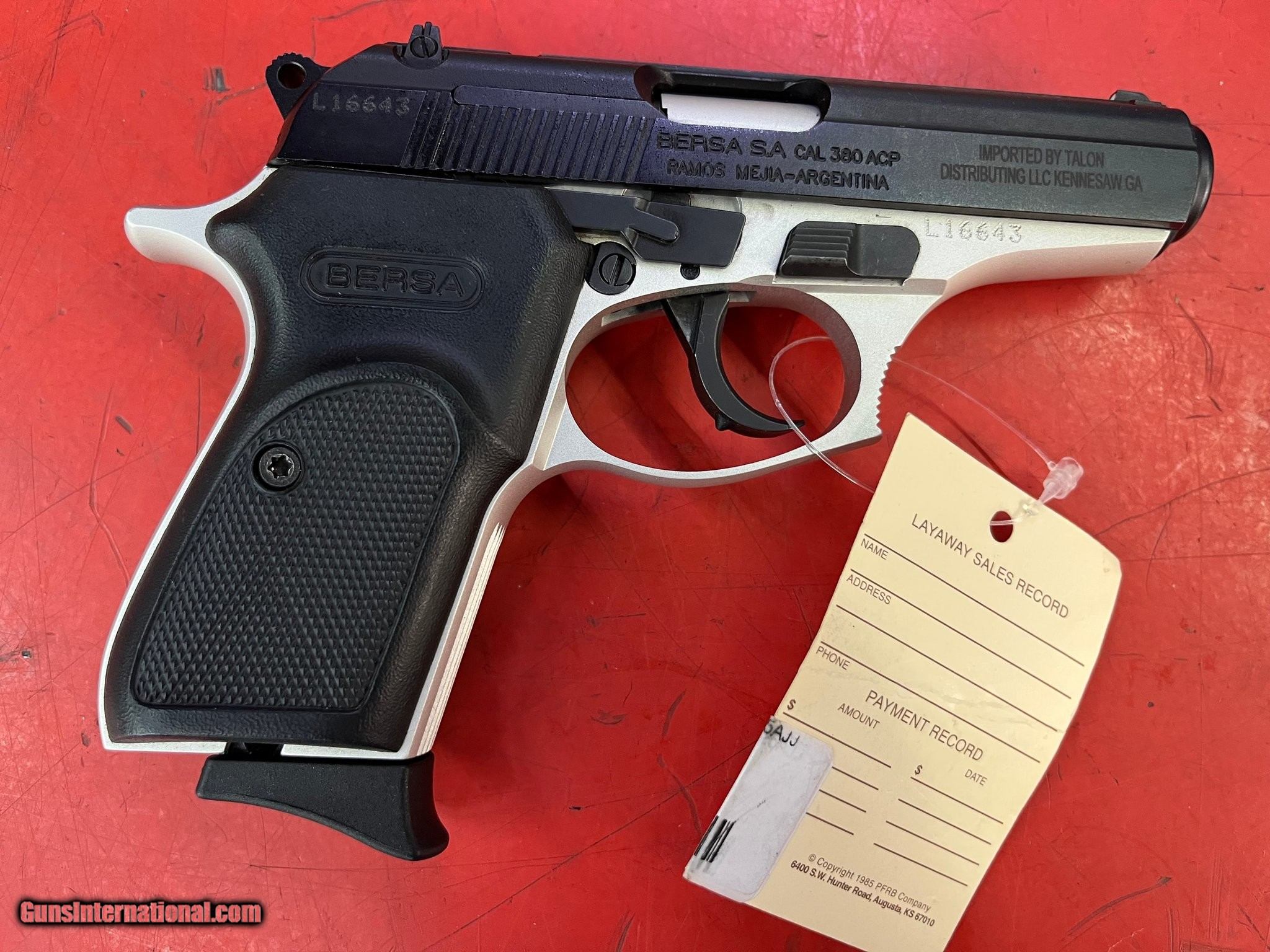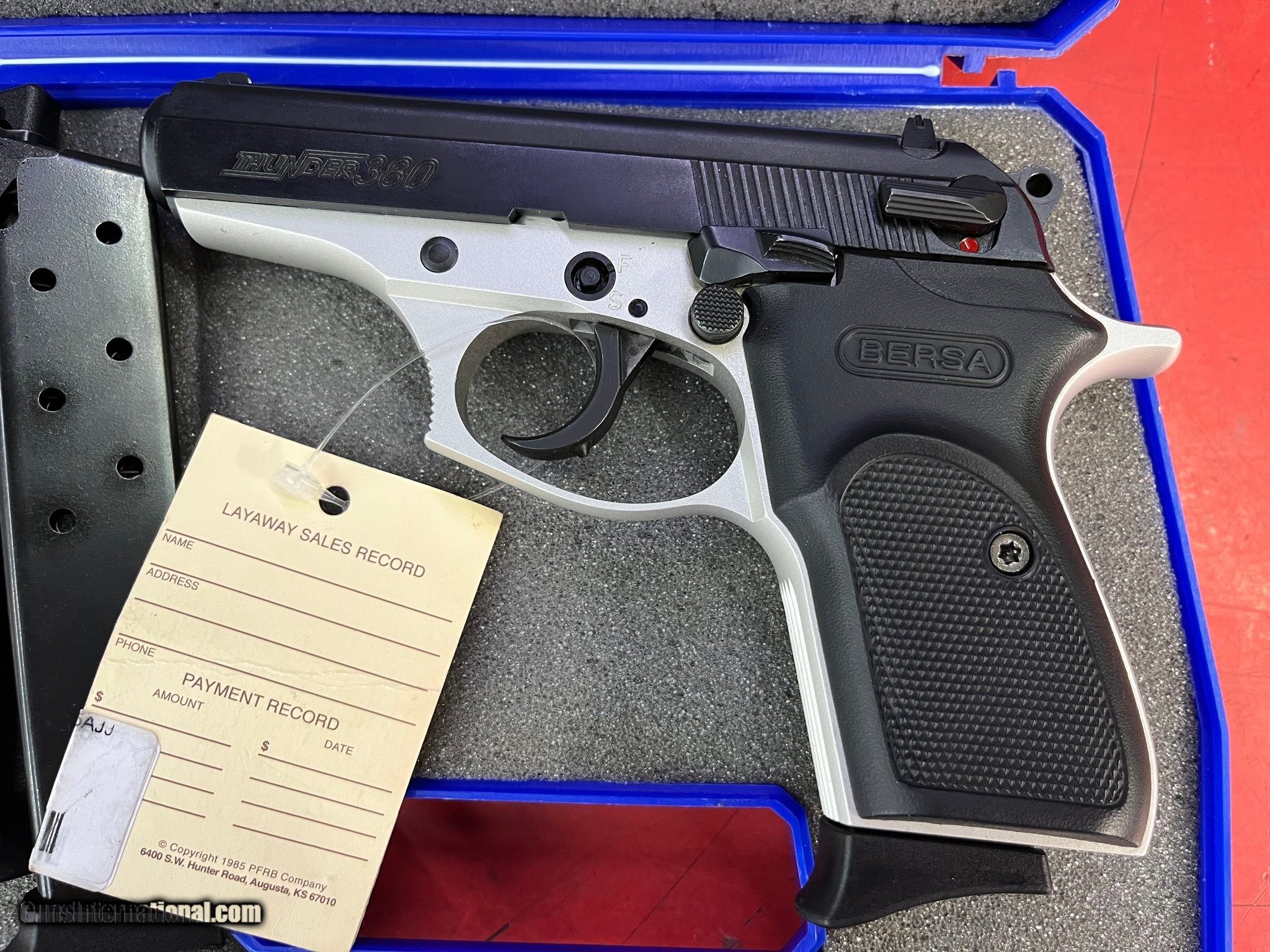 Description: Guns Listing ID: 569337 Comes with box & 2 extra magazines. Manufacturer: BERSA Model: Thunder 380 Duotone Caliber Info: .380 ACP Condition: Used - Non-Certified Barrels: 3.2" BARREL Action: SINGLE/DOUBLE Finish: TWO TONE. BLACK/SILVER Weight: 1.2 lbs. Price: $299.99 Contact Seller |