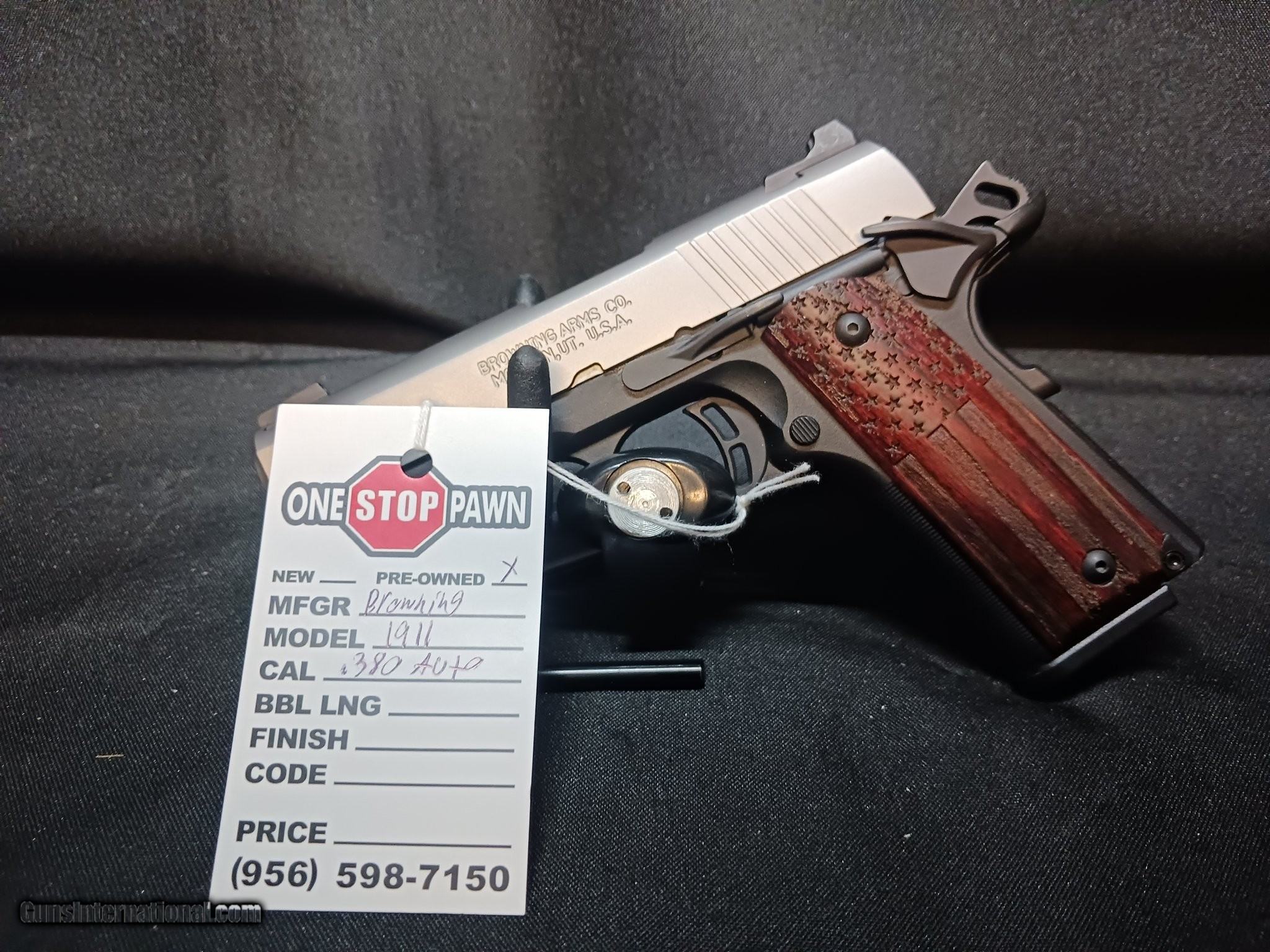 Description: Guns Listing ID: 618532 PRE-OWNED BROWNING 1911 380 BLACK LABEL PISTOL WITH WOODED AMERICAN FLAG GRIPS AVAILABLE FOR SALE Manufacturer: BROWNING Model: 1911 380 BLACK LABEL Caliber Info: .380 ACP Condition: Used - Non-Certified Barrels: 3.5" BARREL Action: SEMI AUTOMATIC Price: $1,299.99 Contact Seller |