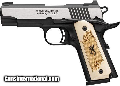Description: BROWNING 1911-380 BLACK LABEL 380ACP 3.58"FS 10RD MAPLE BROWNING 1911-380 BLACK LABEL 380ACP 3.58"FS 10RD MAPLE In Stock--Ready to Ship!! 2025 SHOT Show Special - Maple medallion grips with intricate checkering and gold Buckmark. Stainless steel finish with brush polished flats and black curves. Full size, 85% scale 1911 pistol chambered in 380 ACP. Steel three-dot combat sights or night sights. Composite frame, ergonomic, and skeletonized controls.