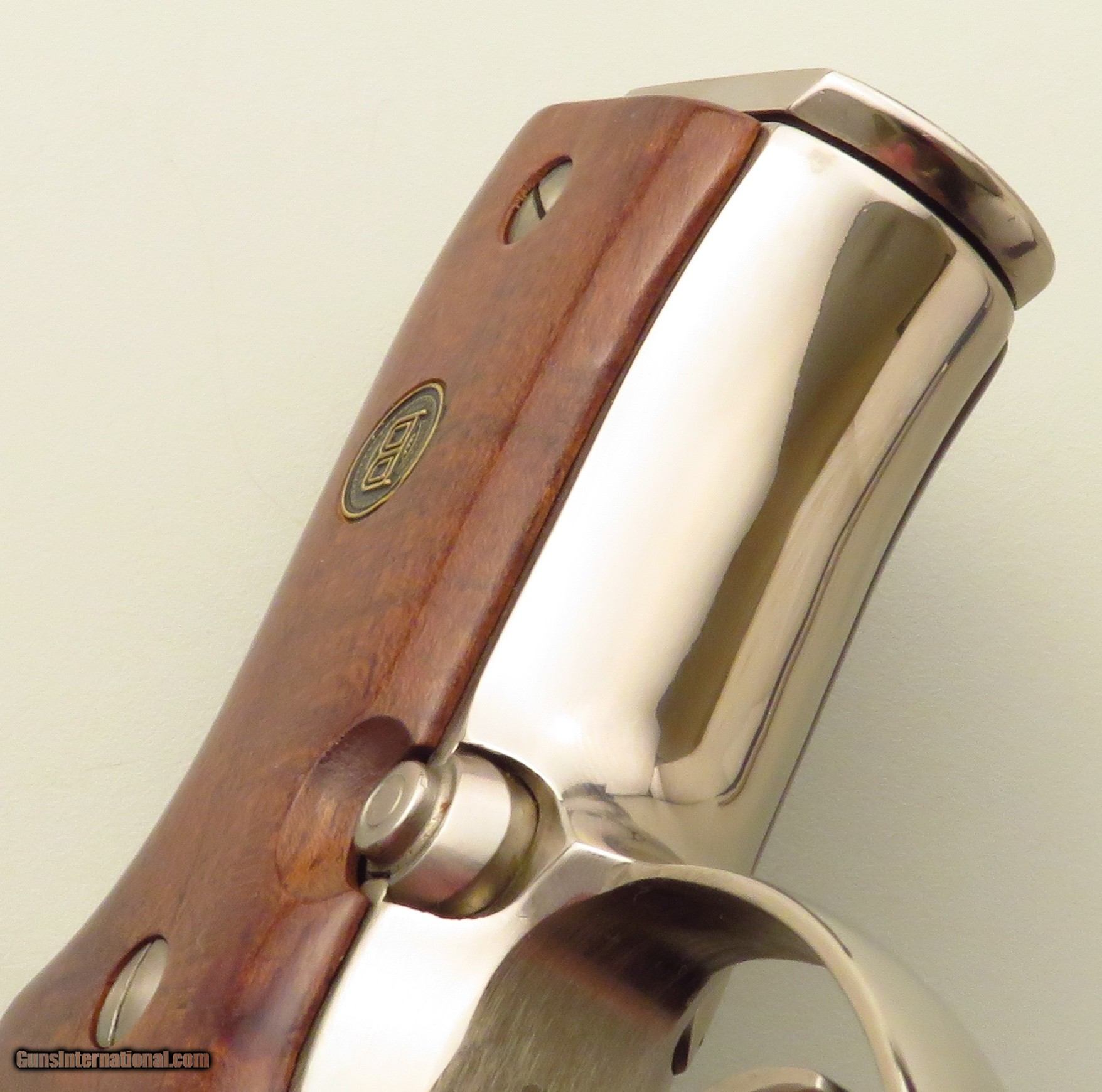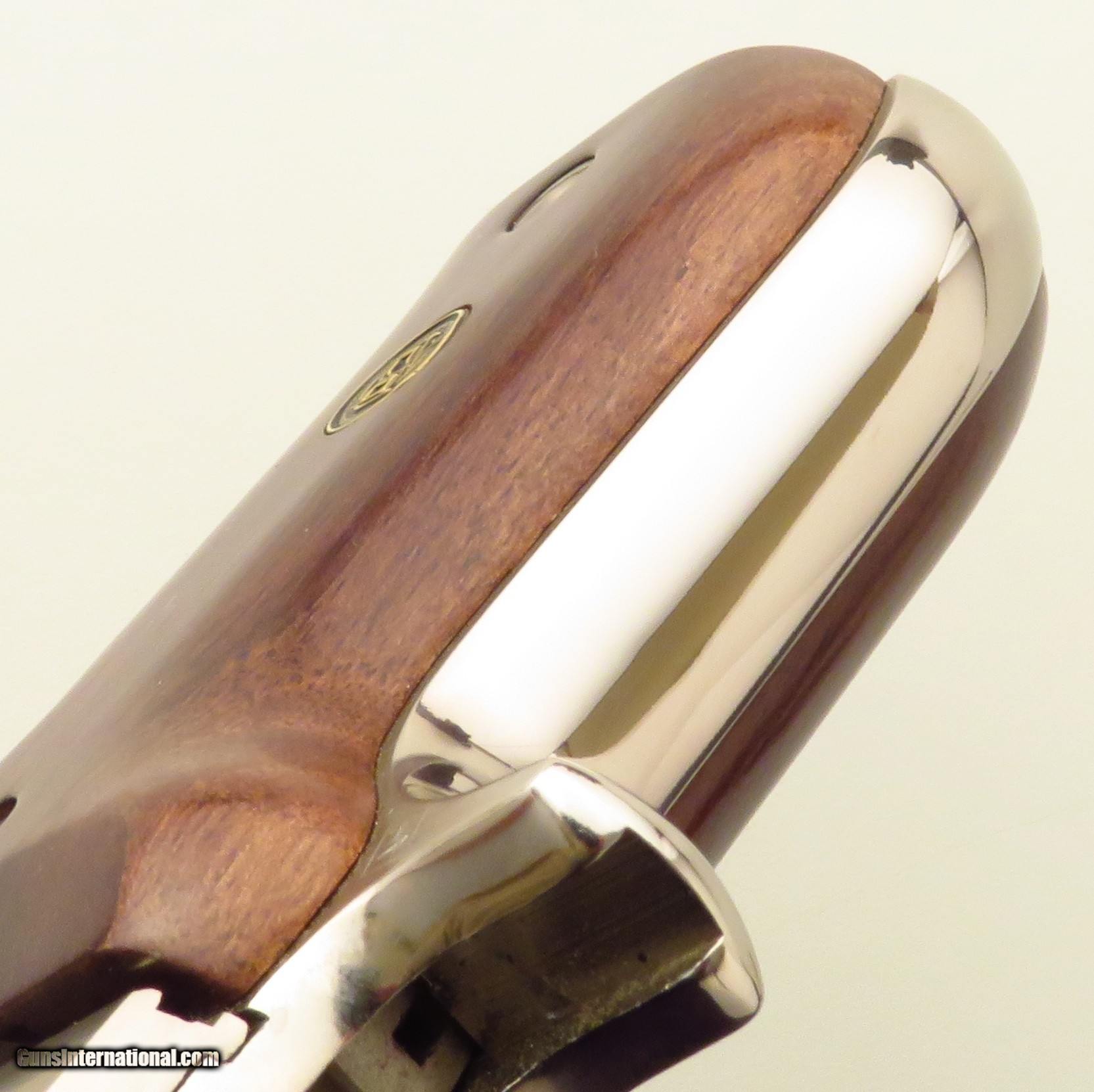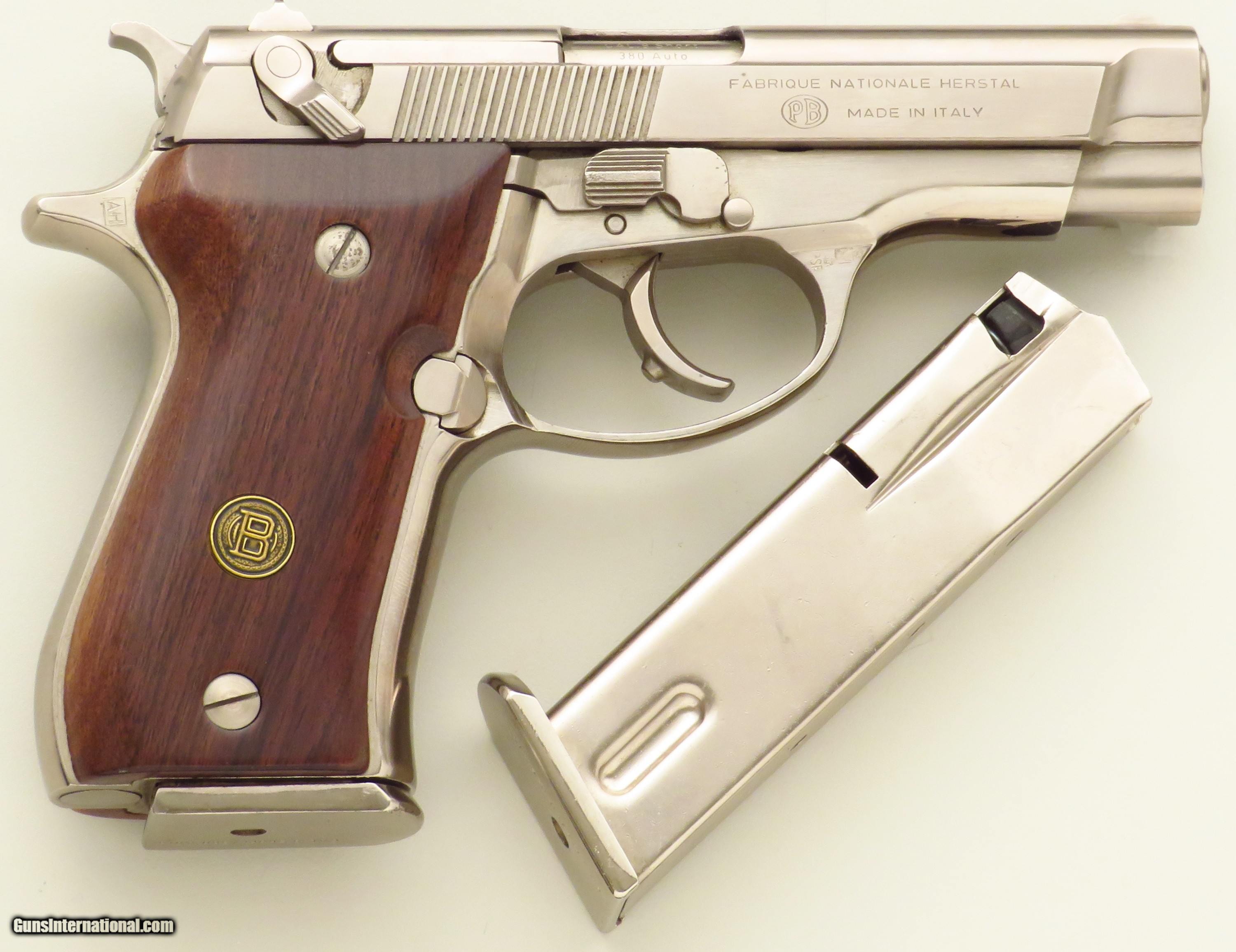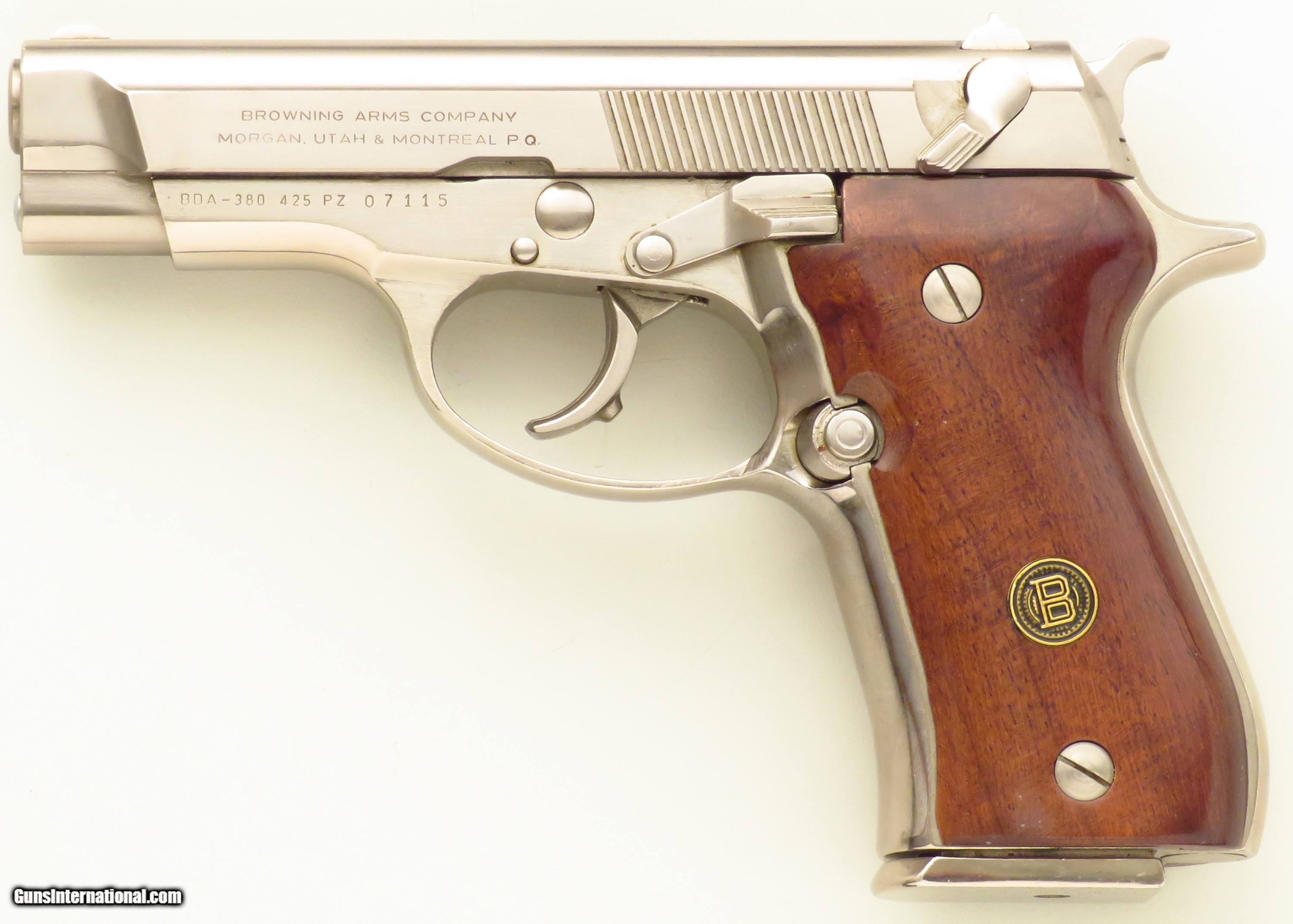 Description: Browning BDA-380 .380 ACP. Made in Italy by Beretta, serial 425PZ07115 has nickel finish, 3.75-inch barrel, flat top slide, double action trigger system (operates in both single and double action, magazine safety disconnect), thumb safety/decocker and wood grips. Two 13-round magazines are included. No box or papers. CONDITION: The bore is strong and bright. Mechanics are solid. Metal finish is well over 90 percent with light rubbing near the muzzle. Grips are approximately 95 percent with trace rubbing. The price is firm. $750 plus shipping. Handgun Caliber: .380 ACP (9x17mm Browning Short) Price: $750.00 Shipping: $40.00 Contact Seller |