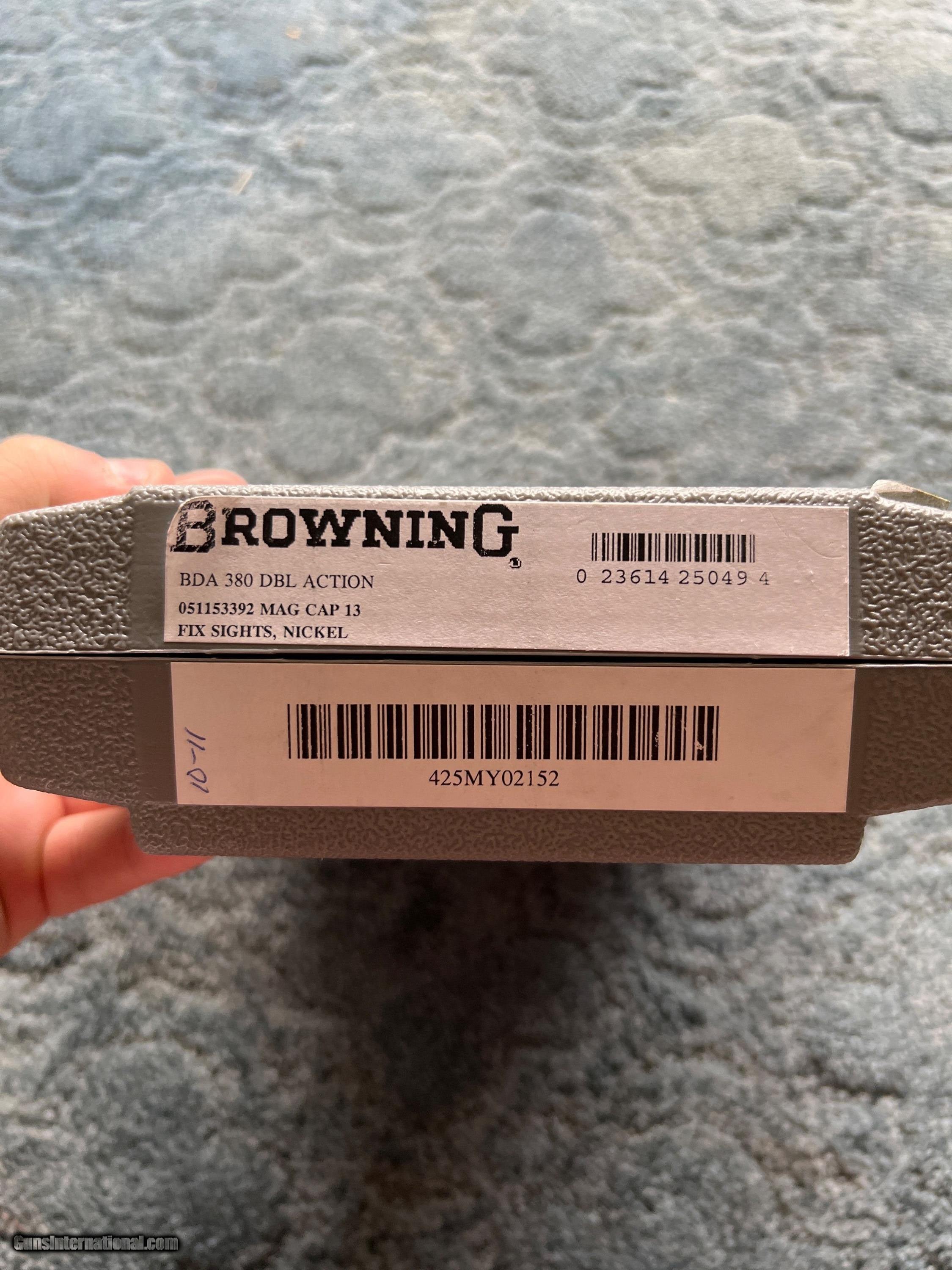 Description: Browning BDA 380 in nickel gun is virtually new inbox Seems to be shot very seldom, though the left side grip panel is missing the browning medallion most likely due to the glue drying out over the years asking 1500 but open to offers comes with box and extra nickel mag SOLD Handgun Caliber: .380 ACP (9x17mm Browning Short) Manufacturer: Browning Model: BDA Serial Number: MY02152 Barrel Length: 3.75” Condition: 95% Metal Condition: 100% Wood Condition: 90% |