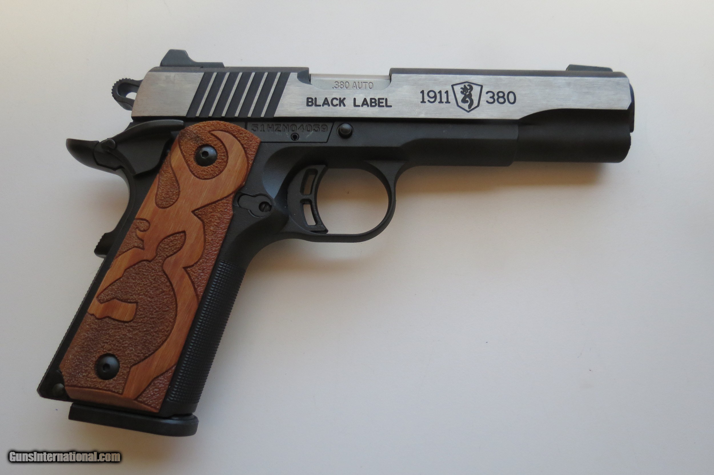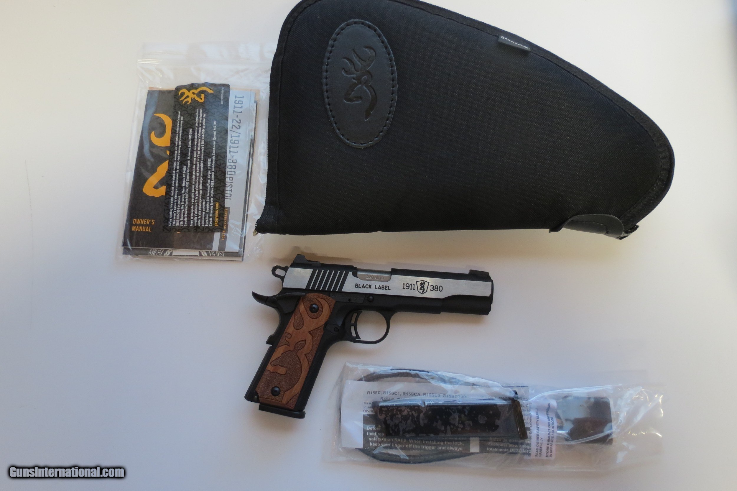 Description: New in box Browning Black Label 1911-380 Medallion. 380 ACP. Composite frame 4.25" barrel, target crown, 2 - 8 shot magazines, blackened stainless steel finish with silver brush polished flats on slide, skeletonized hammer, single action trigger, steel 3-dot combat sights, dovetailed into slide, intricately checkered grips with Buckmark, extended ambidextrous manual thumb safety, beavertail grip safety, extended slide release, nylon carry case. Shipping/Insurance $25 SOLD Handgun Caliber: .380 ACP (9x17mm Browning Short) Manufacturer: Browning Model: 1911-380 Medallion Condition: New in Box |
