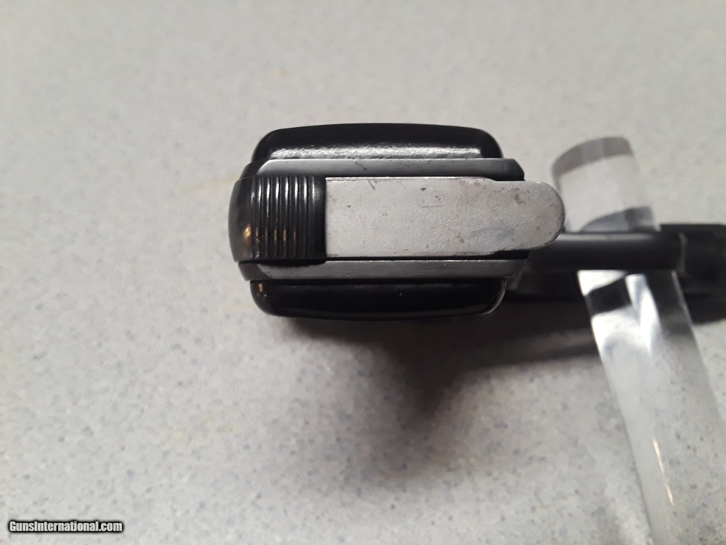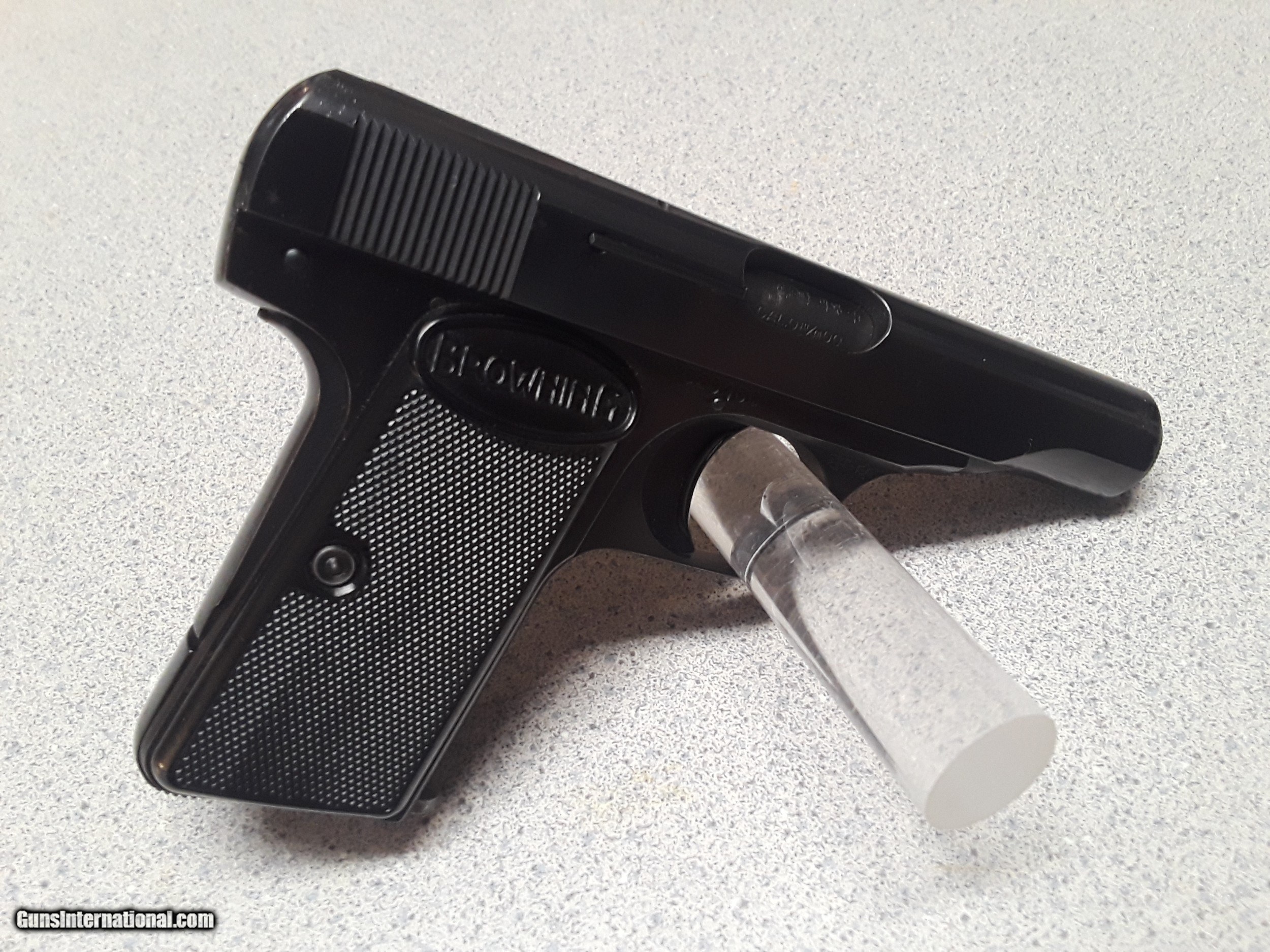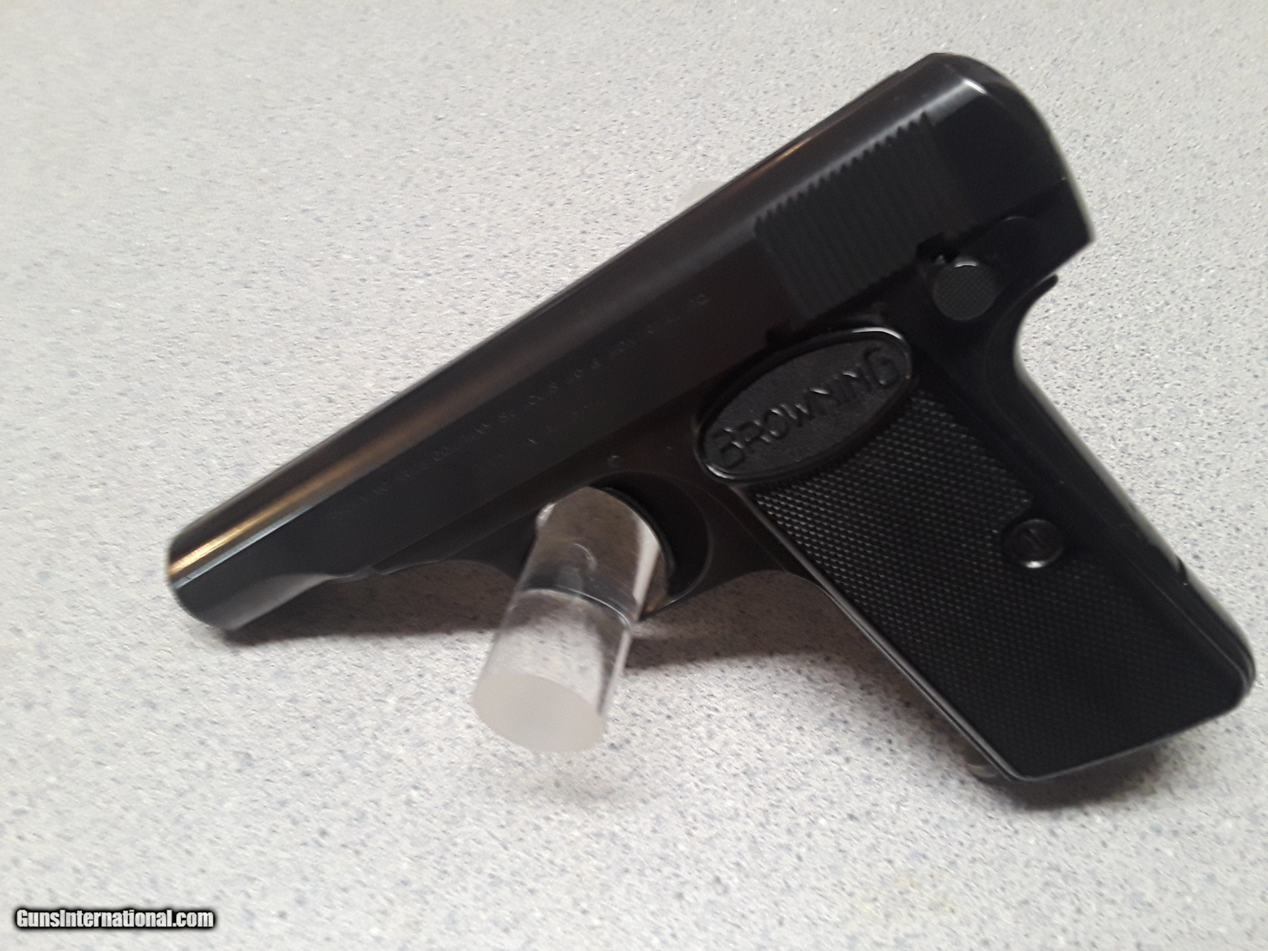 Description: The item for sale is a Browning Model 1955 pistol made in Belgium and chambered for the 380 ACP cartridge. This is one of the guns manufactured in the final year, 1969, before production was shutdown. This is in excellent condition and truly collector quality. The gun shows very little if any use. The original factory blue is 98-99% and the original grips are excellent. The original magazine is missing. The replacement magazine is inferior condition and should be replaced. Fortunately these magazines are available. If you are looking for one of these Browning pistols it will be difficult to find any nicer. We will require a FFL copy prior to shipment. Please include $25 for shipping and insurance. SOLD Curio/Relic: Yes Handgun Caliber: .38 Auto (.38 ACP) Manufacturer: Browning Model: 1955 Serial Number: 628186 Condition: Excellent Metal Condition: Excellent Bore Condition: Excellent Finish: Original Factory Manufacture Date: 1969 |