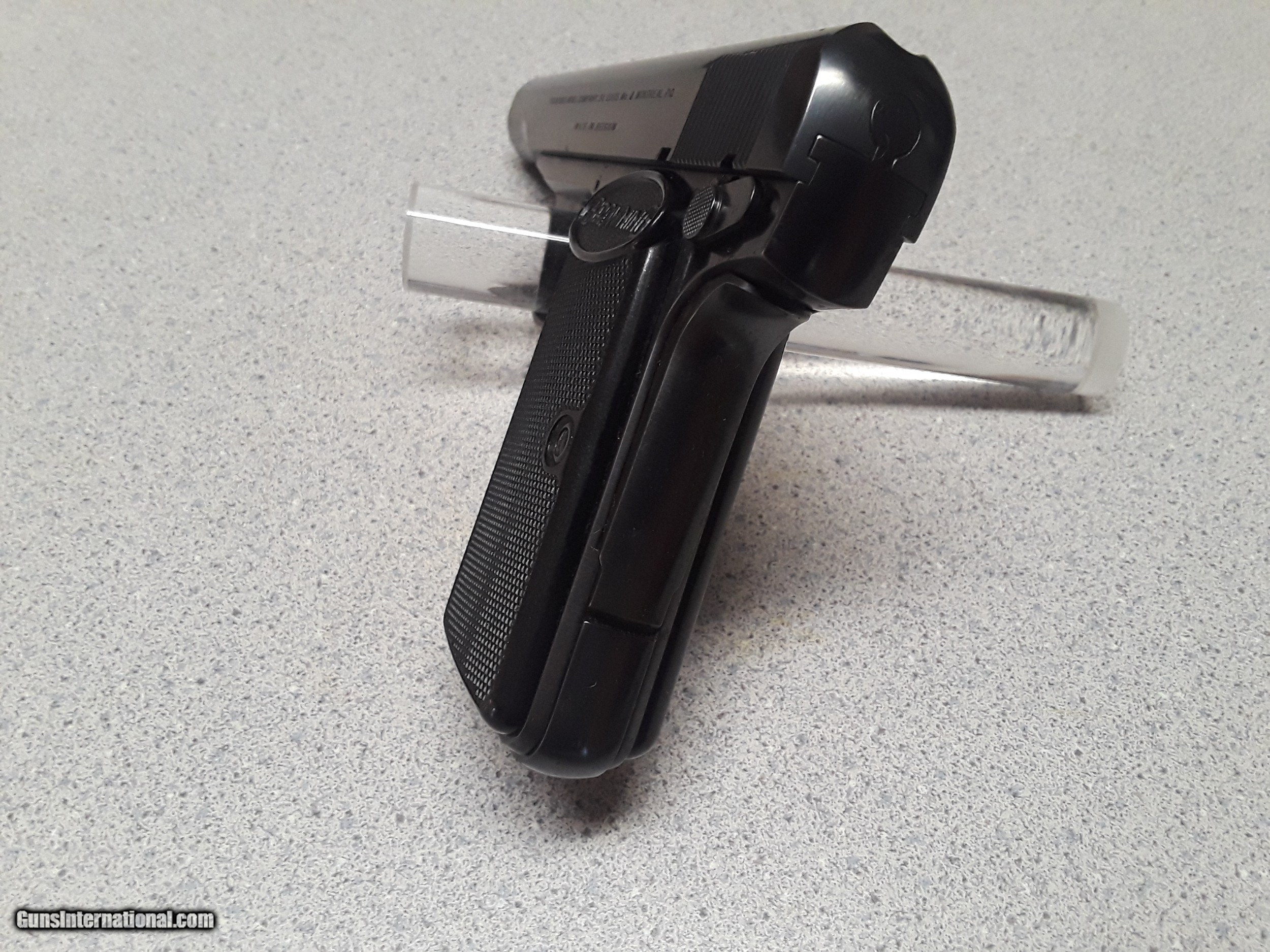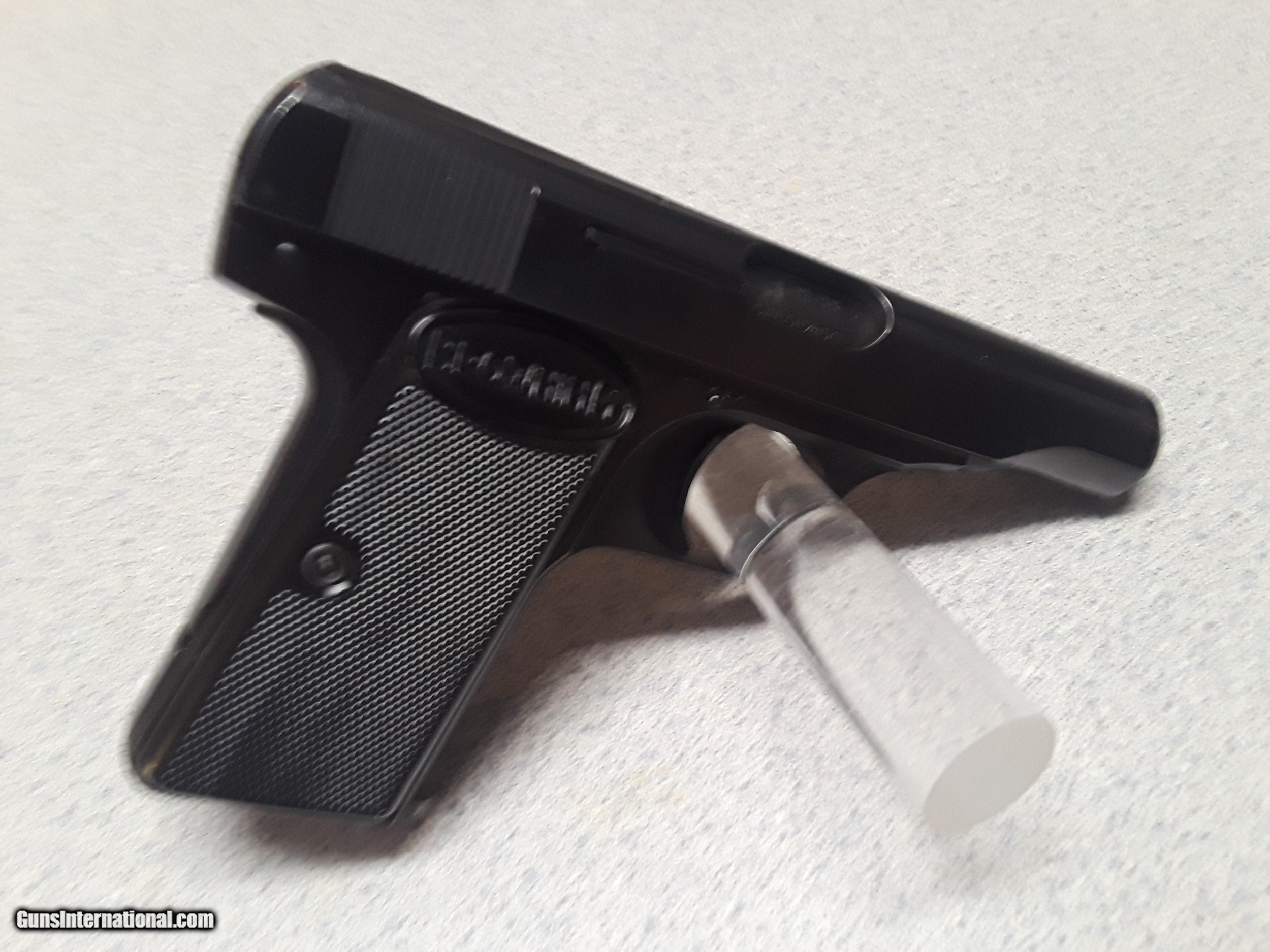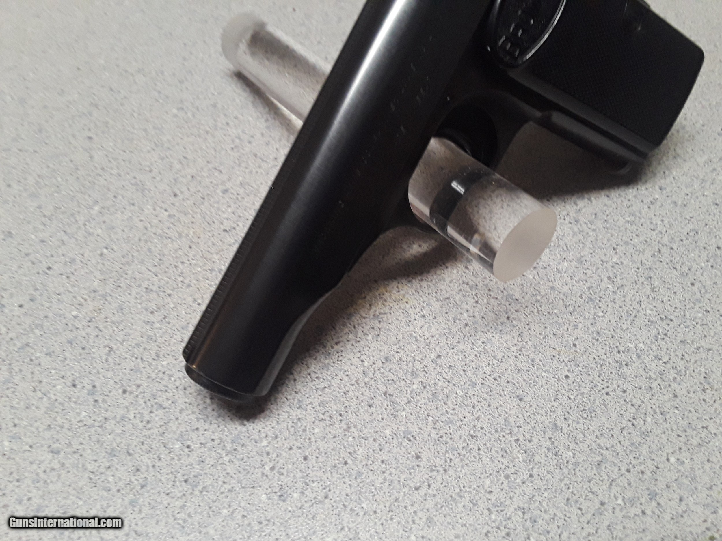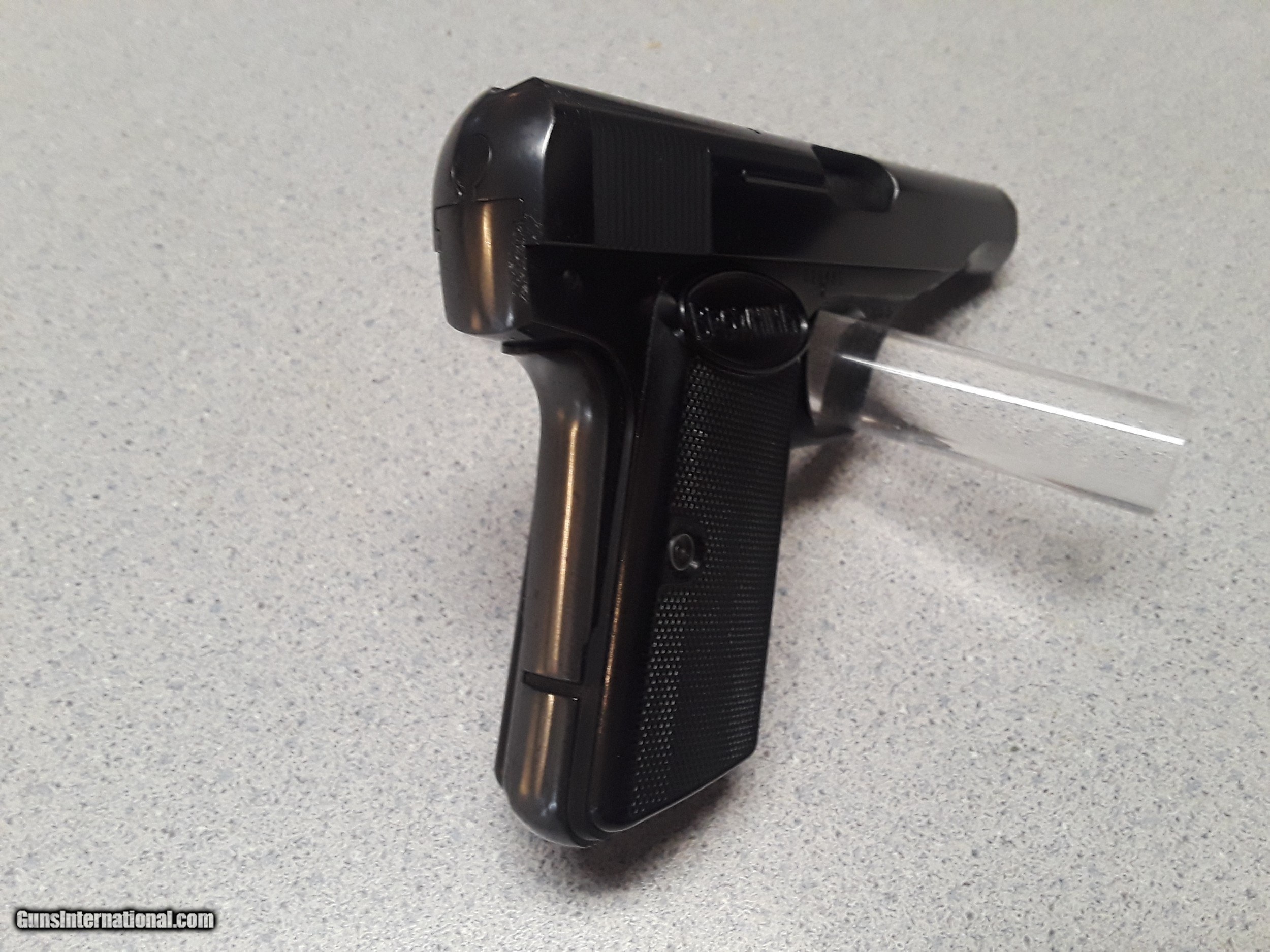 Description: The item for sale is a Browning Model 1955 pistol made in Belgium and chambered for the 380 ACP cartridge. This is one of the guns manufactured in the final year, 1969, before production was shutdown. This is in excellent condition and truly collector quality. The gun shows very little if any use. The original factory blue is 98-99% and the original grips are excellent. The original magazine is missing. The replacement magazine is inferior condition and should be replaced. Fortunately these magazines are available. If you are looking for one of these Browning pistols it will be difficult to find any nicer. We will require a FFL copy prior to shipment. Please include $25 for shipping and insurance. SOLD Curio/Relic: Yes Handgun Caliber: .38 Auto (.38 ACP) Manufacturer: Browning Model: 1955 Serial Number: 628186 Condition: Excellent Metal Condition: Excellent Bore Condition: Excellent Finish: Original Factory Manufacture Date: 1969 |