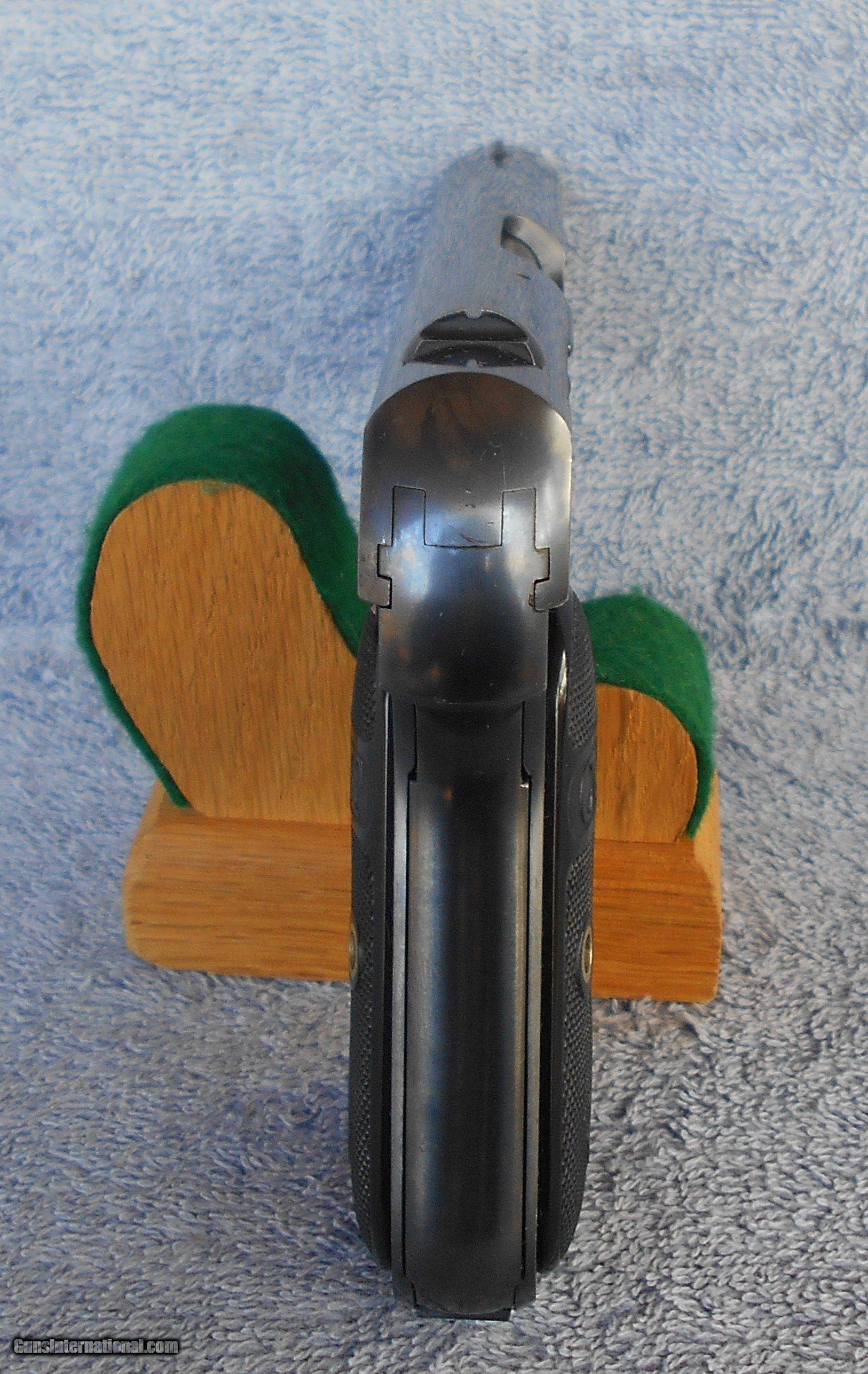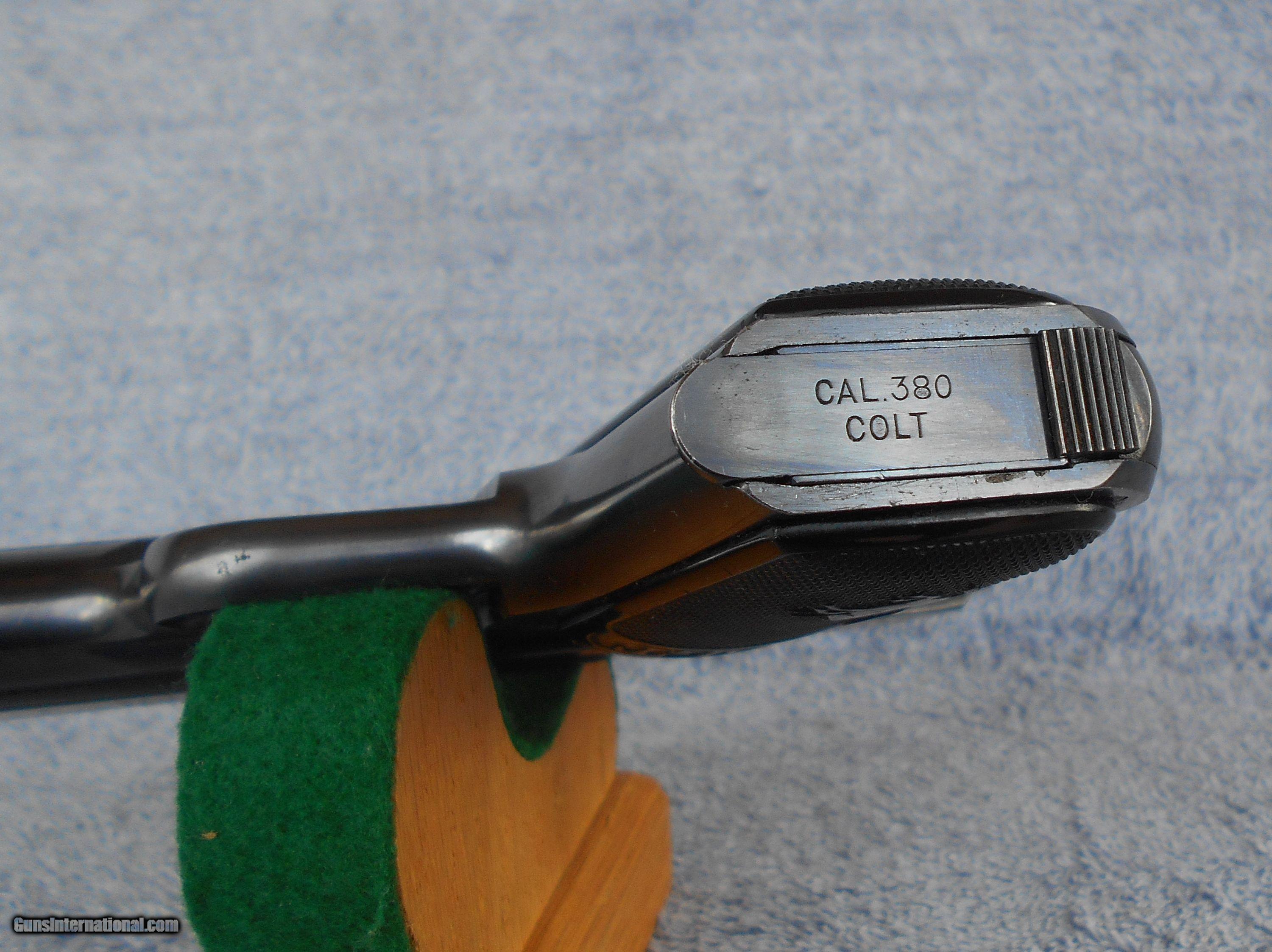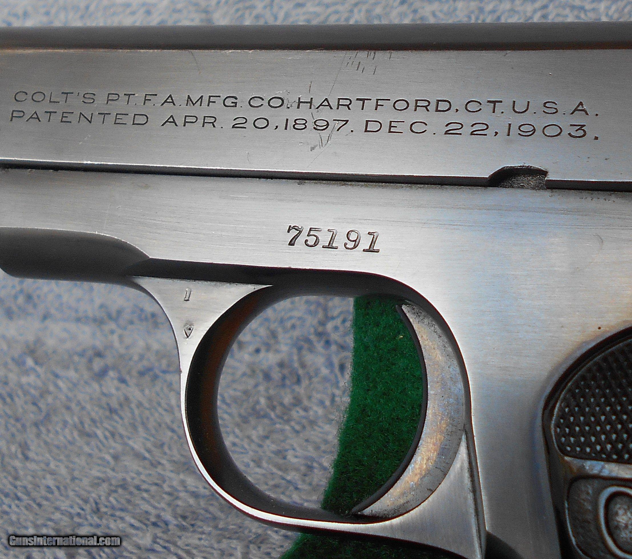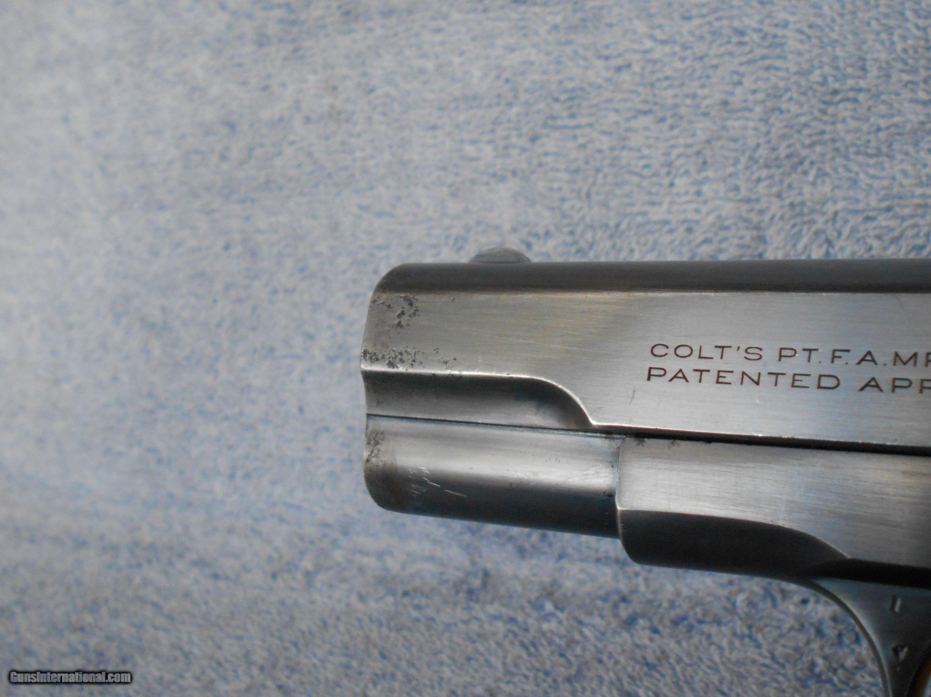 Description: Year of manufacture is 1925. This pistol is very close to being super nice. A high percentage of the original blue finish remains on the slide and receiver. Also the grip straps retain a very high percentage as well. This pistol shows little wear overall. Markings are clear and original. The bore is bright and shiny. It shows little wear and will rate a nine on a one to ten scale. Grips are excellent with no cracks or chips. Action is smooth and tight. It works perfectly. The only area you need to be aware of is the left side of the slide. It has a small amount of pitting and is discolored. I made the area look as bad as I could in the pictures. This Colt 1908 .380 is really close to being a great piece. It will make a super shooting addition to any collection. Please let me know if you would like additional pictures. American Arms & Antiques item #2012 SOLD Curio/Relic: Yes |