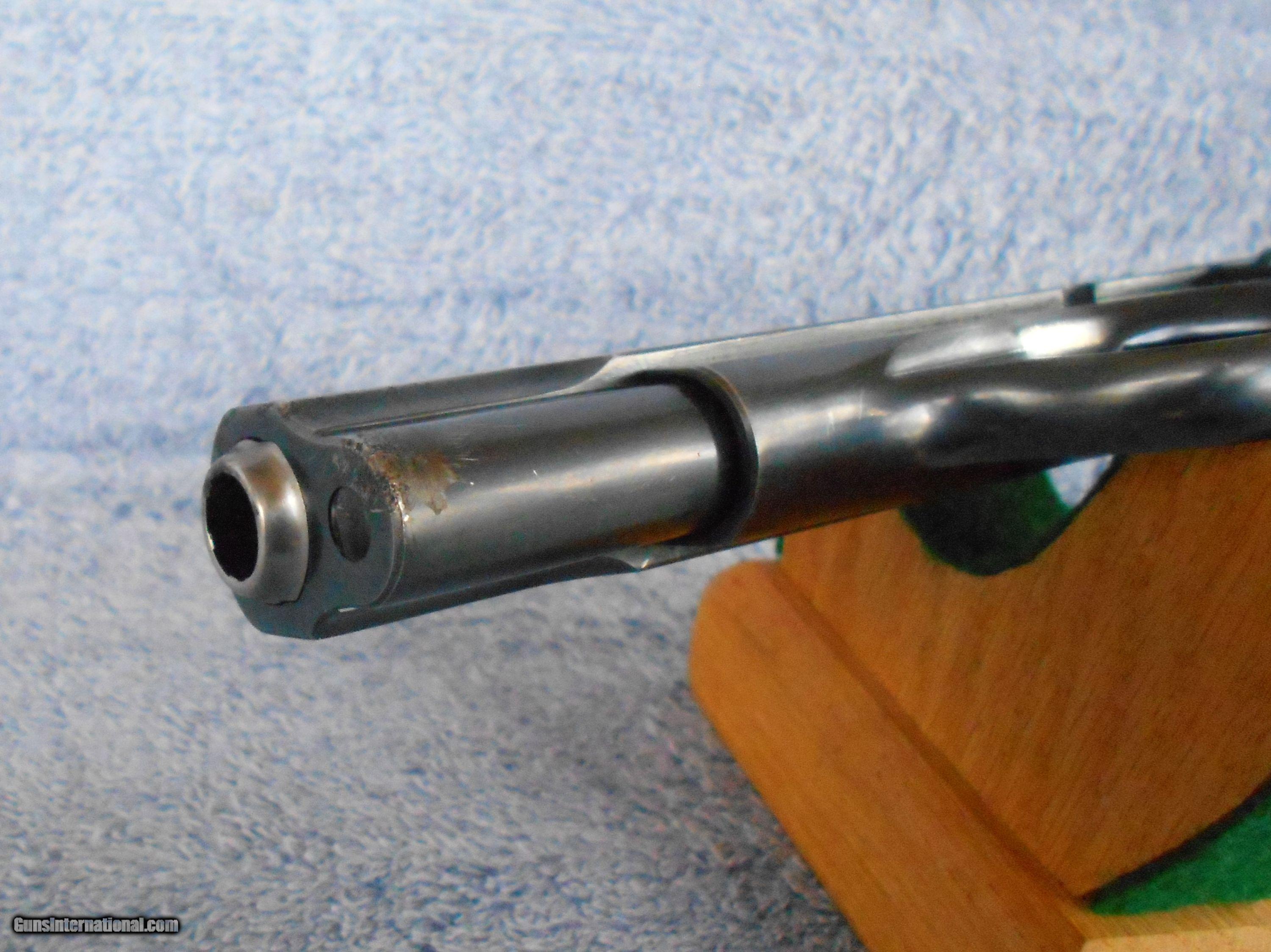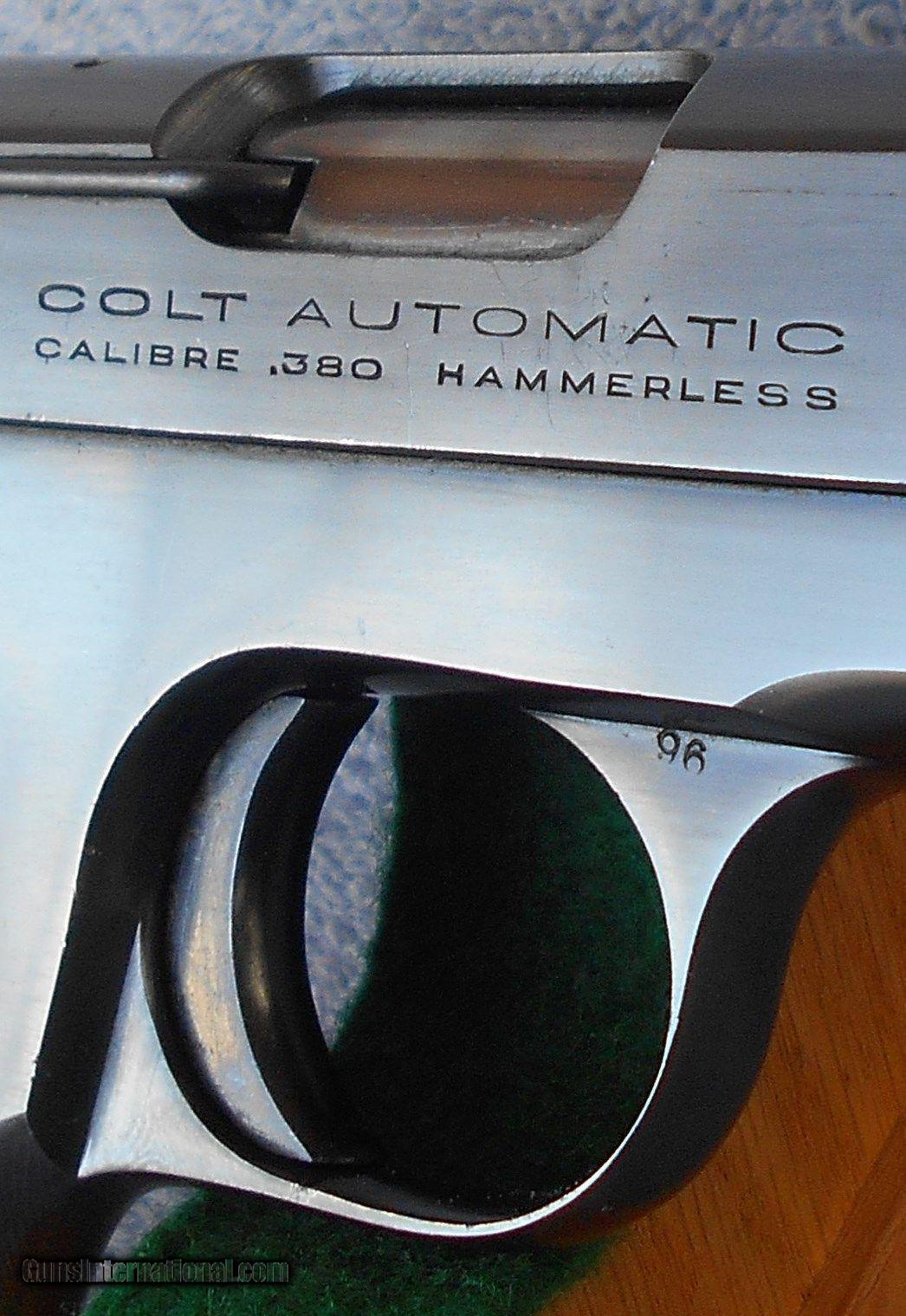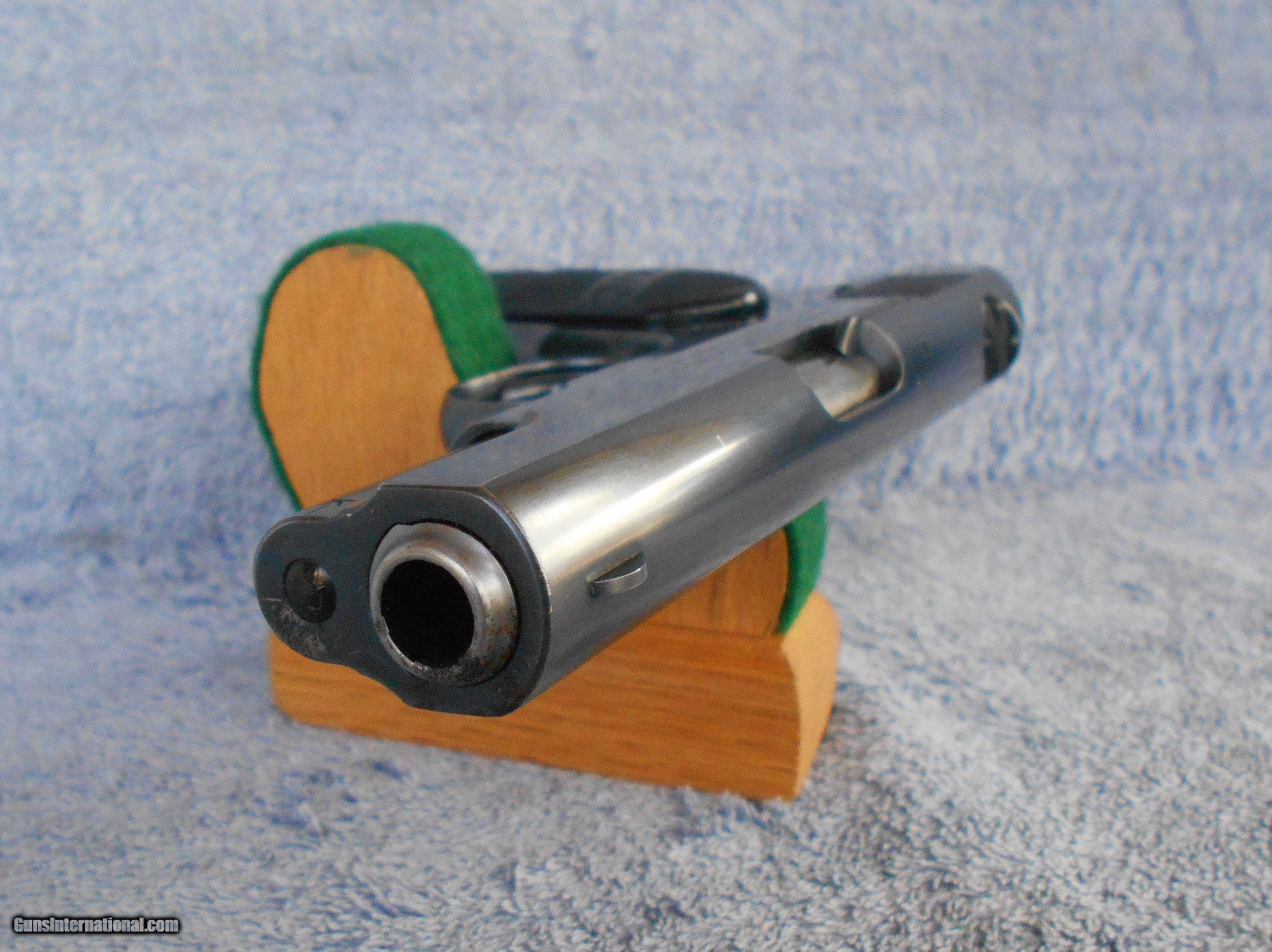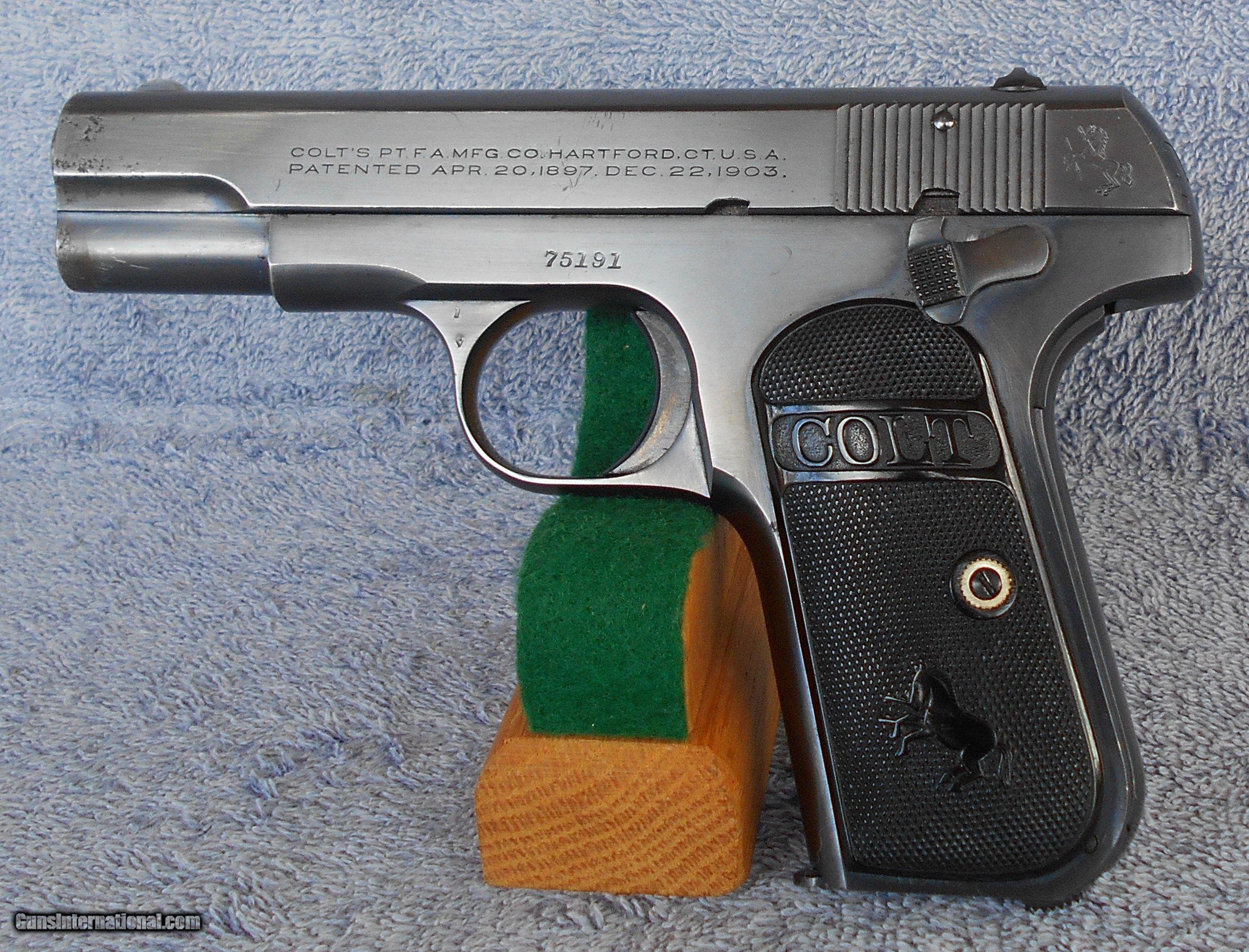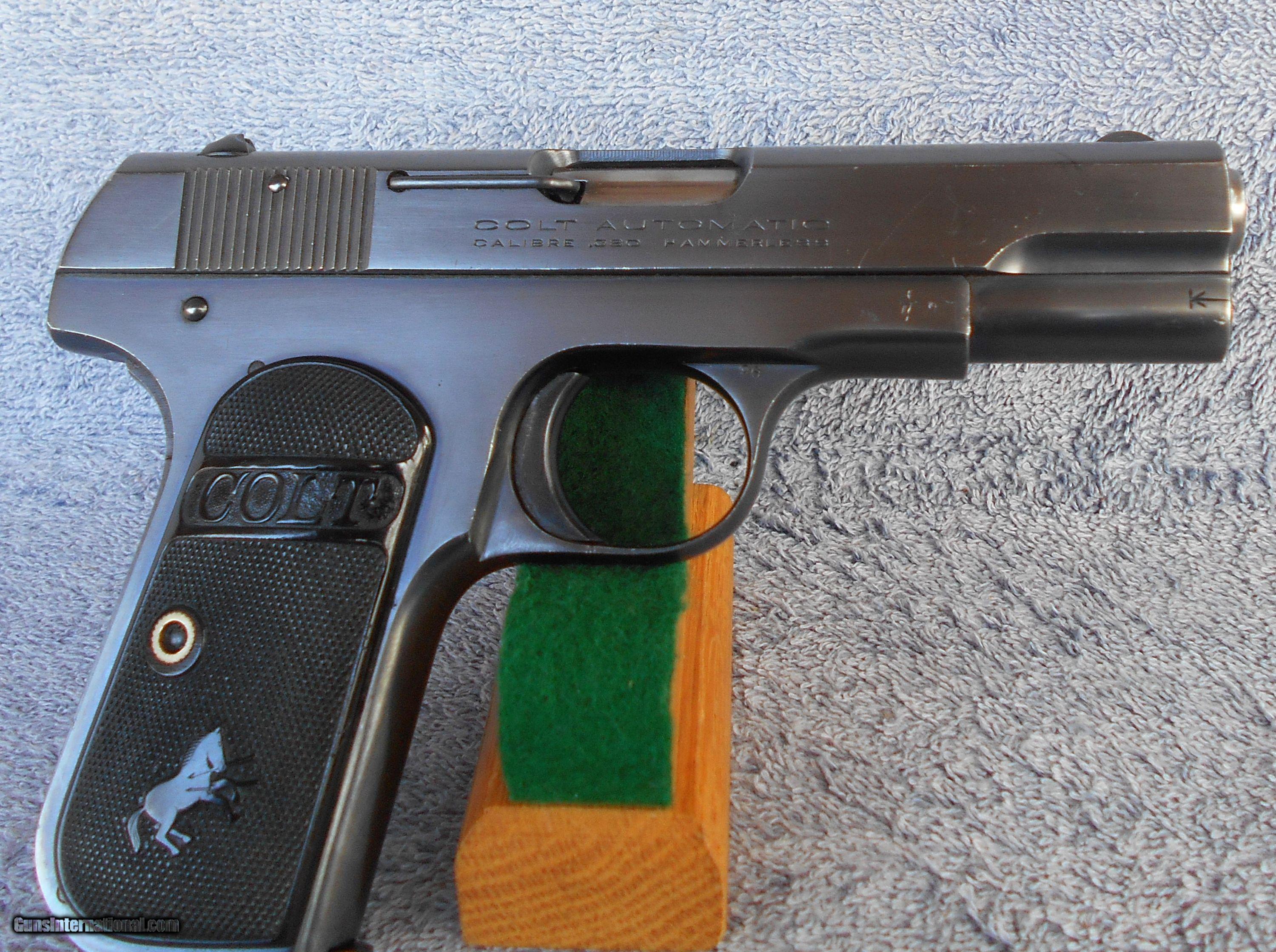 Description: Year of manufacture is 1925. This pistol is very close to being super nice. A high percentage of the original blue finish remains on the slide and receiver. Also the grip straps retain a very high percentage as well. This pistol shows little wear overall. Markings are clear and original. The bore is bright and shiny. It shows little wear and will rate a nine on a one to ten scale. Grips are excellent with no cracks or chips. Action is smooth and tight. It works perfectly. The only area you need to be aware of is the left side of the slide. It has a small amount of pitting and is discolored. I made the area look as bad as I could in the pictures. This Colt 1908 .380 is really close to being a great piece. It will make a super shooting addition to any collection. Please let me know if you would like additional pictures. American Arms & Antiques item #2012 SOLD Curio/Relic: Yes |