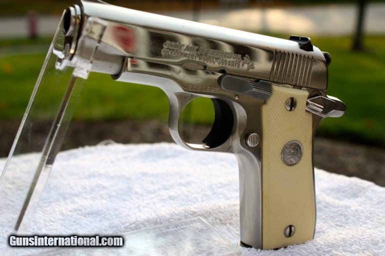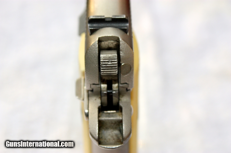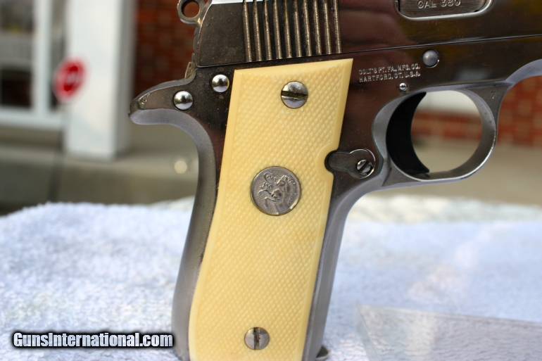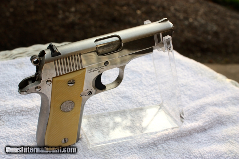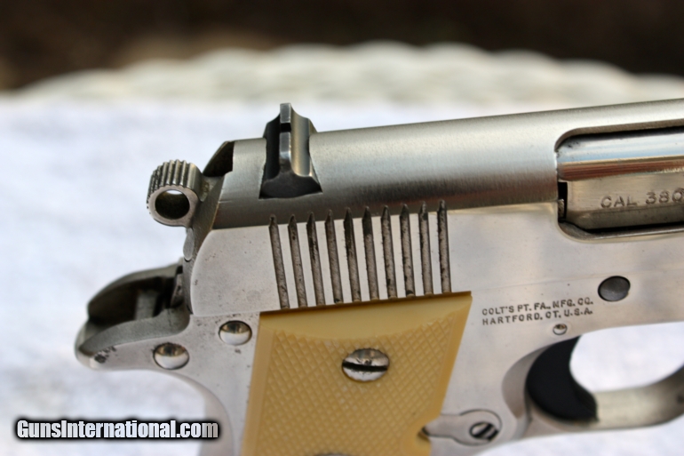 Description: Colt Government .380 bright nickel finish in nice condition. Gun shows some minor wear particularly near the muzzle. Grips are in excellent condition with Colt silver medallion. No cracks or dings. Functions as it should. Nice carry piece. No box or papers. No Calif sales. 40.00 Ship Fee SOLD |
