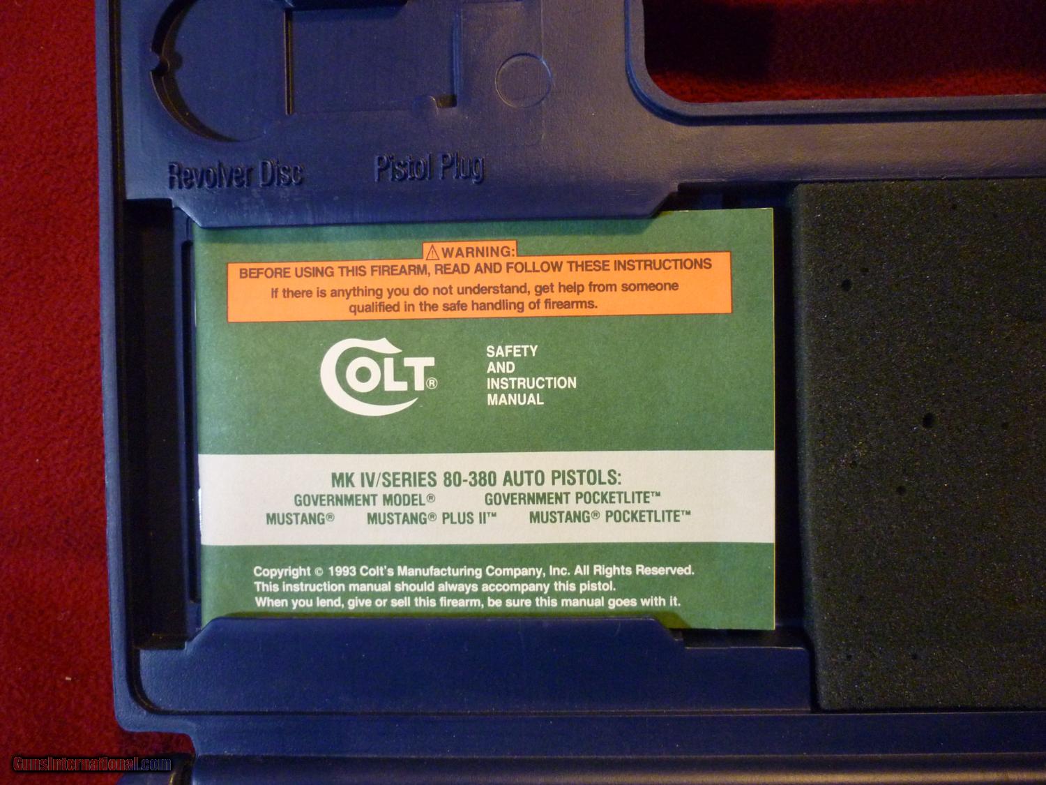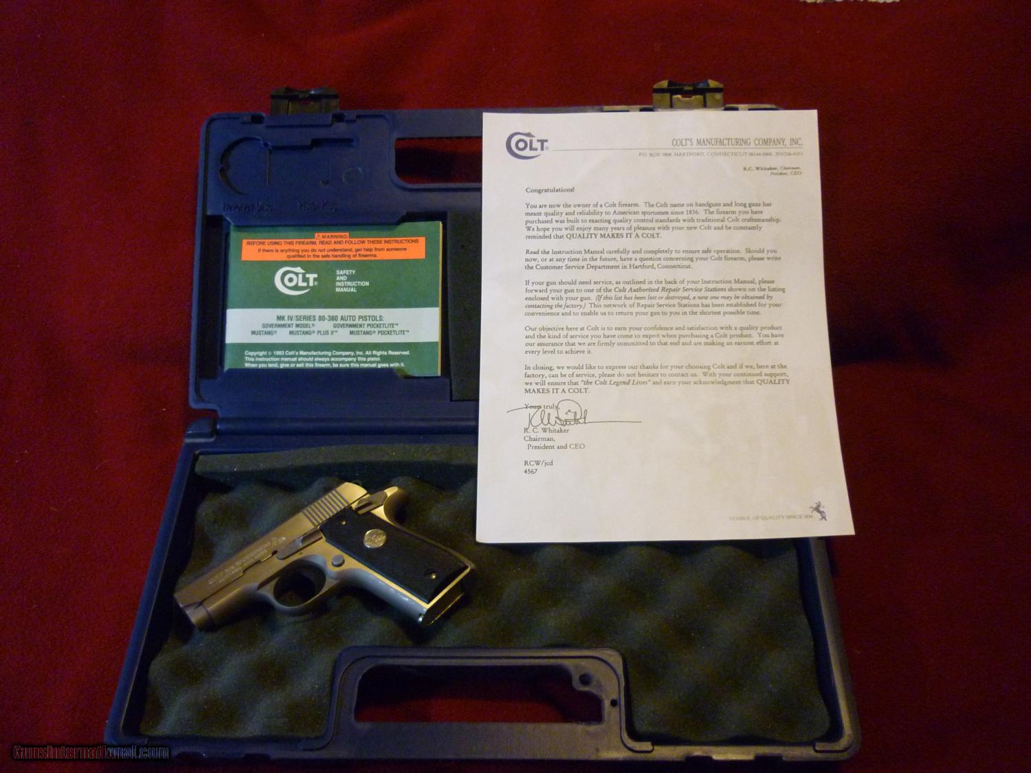 Description: Colt Mustang Plus II Pistol!! PRICE LOWERED!!!! Excellent Condition, with a clean shiny bore, and very sharp lands and grooves! It comes from the factory with a SS factory finish, Colt box, and owners manual! I also have a Colt letter that goes with the gun as well! This is a very high quality Colt 380 pistol, and is the PLUS II model holding a extra two rounds, bring the capacity to 7 rounds, not the 5 rounds that the Colt Mustang holds! It would make a awesome addition... to any Colt collection! Buyer to pay 50.00 shipping to any FFL dealer of your choice in the lower 48 states! Call Steve 605-212-7213 SOLD |