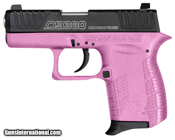 Description: Guns Listing ID: 480576 Diamondback DB380 Gen 4 Micro-Compact Frame .380 ACP 6+1, 2.8\" Stainless Steel Barrel, Nickel Boron Serrated Stainless Steel Slide, Pink Polymer Frame w/Beavertail & Grip Diamondback‚s DB380 Gen 4 lightweight micro-compact pistol was designed with safety in mind. The DB features a striker firing system with a mechanical firing double action only action; stainless steel barrel and slide; slide stop; polymer frame and grip; 3-Dot, Glock compatible sights. The slide, barrel and internal parts features a corrosion resistant coating. SOLD Manufacturer: DIAMONDBACK Model: DB380 GEN 4 Caliber Info: .380 ACP Condition: new Barrels: 2.8" BARREL Action: SEMI AUTOMATIC Finish: pink Weight: .55 LBS. |