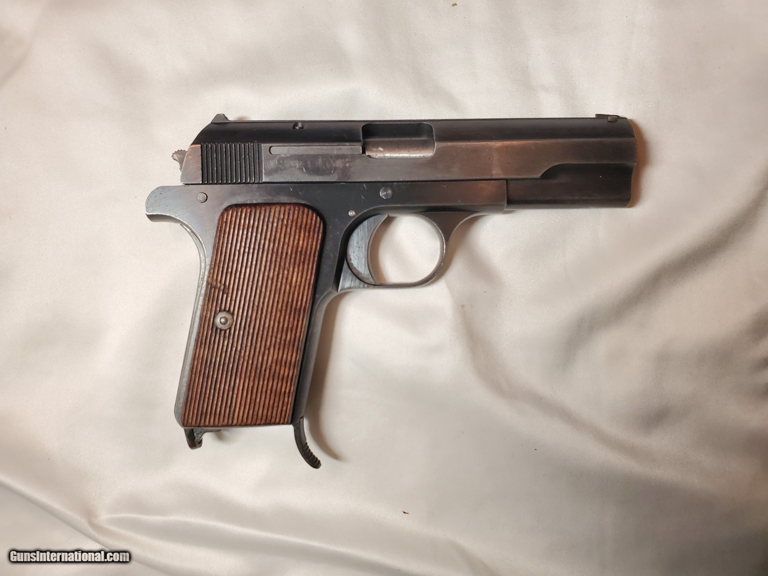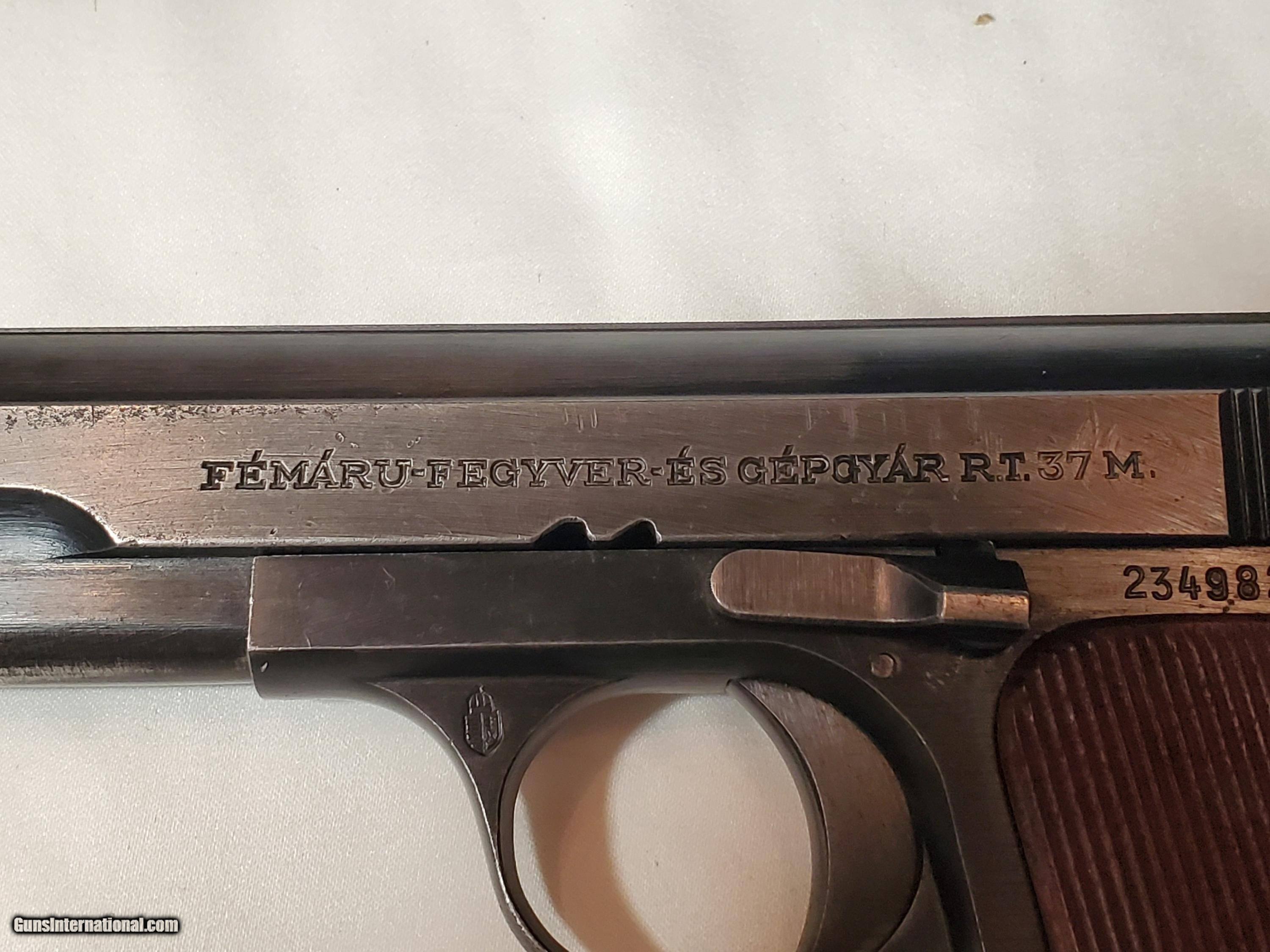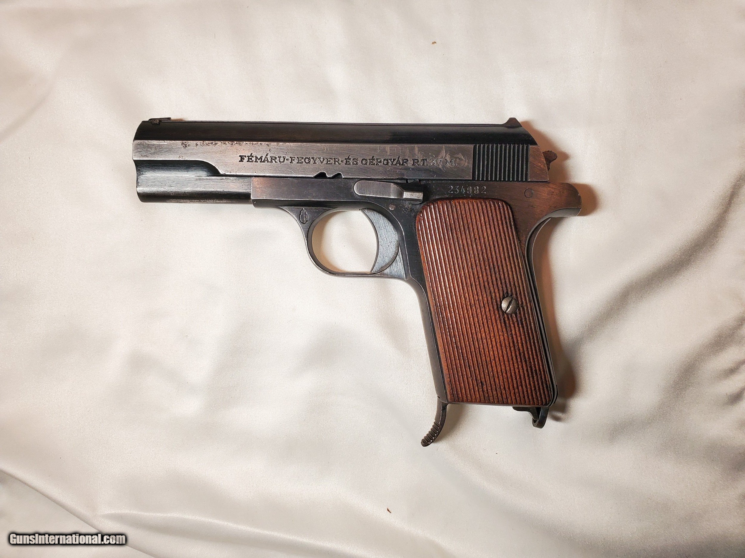 Description: FÉG 37M Pistol Fegyver- és Gépgyártó Részvénytársaság Designed by Rudolf Frommer Manufactured in Hungry 1937–1944 SOLD Handgun Caliber: .380 ACP (9x17mm Browning Short) Manufacturer: FÉG Model: 37m Serial Number: 229385 |