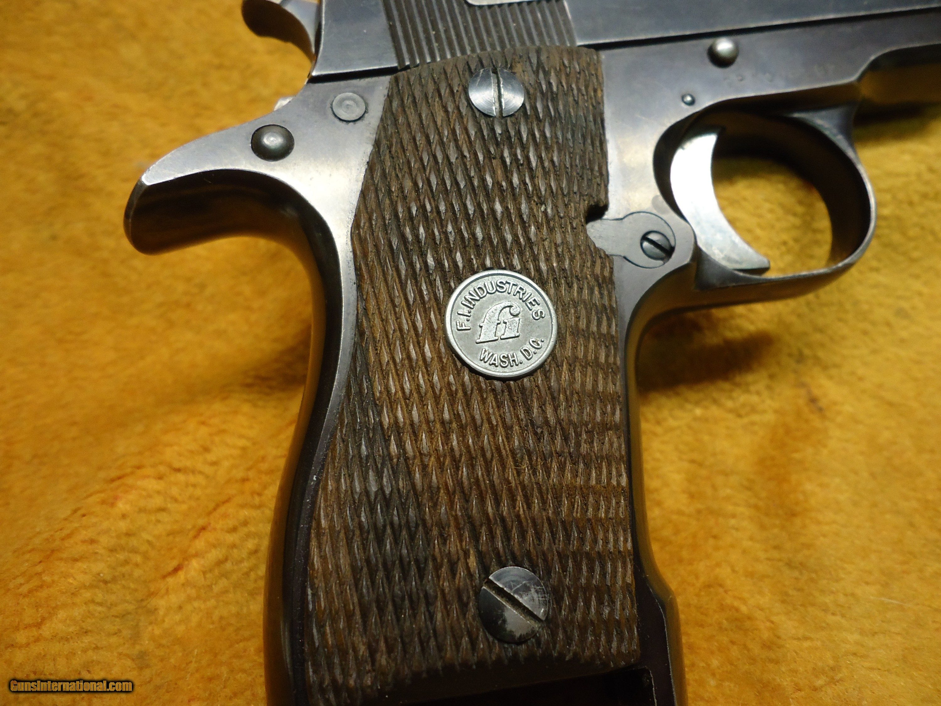 Description: FI Industries Model D .380. Old Quality, All Steel. SOLD Handgun Caliber: .380 ACP (9x17mm Browning Short) Manufacturer: FI Industries Model: Model D Serial Number: CPA0 6582 Condition: Very Good Metal Condition: Very Good Wood Condition: Very Good Bore Condition: Very Good |