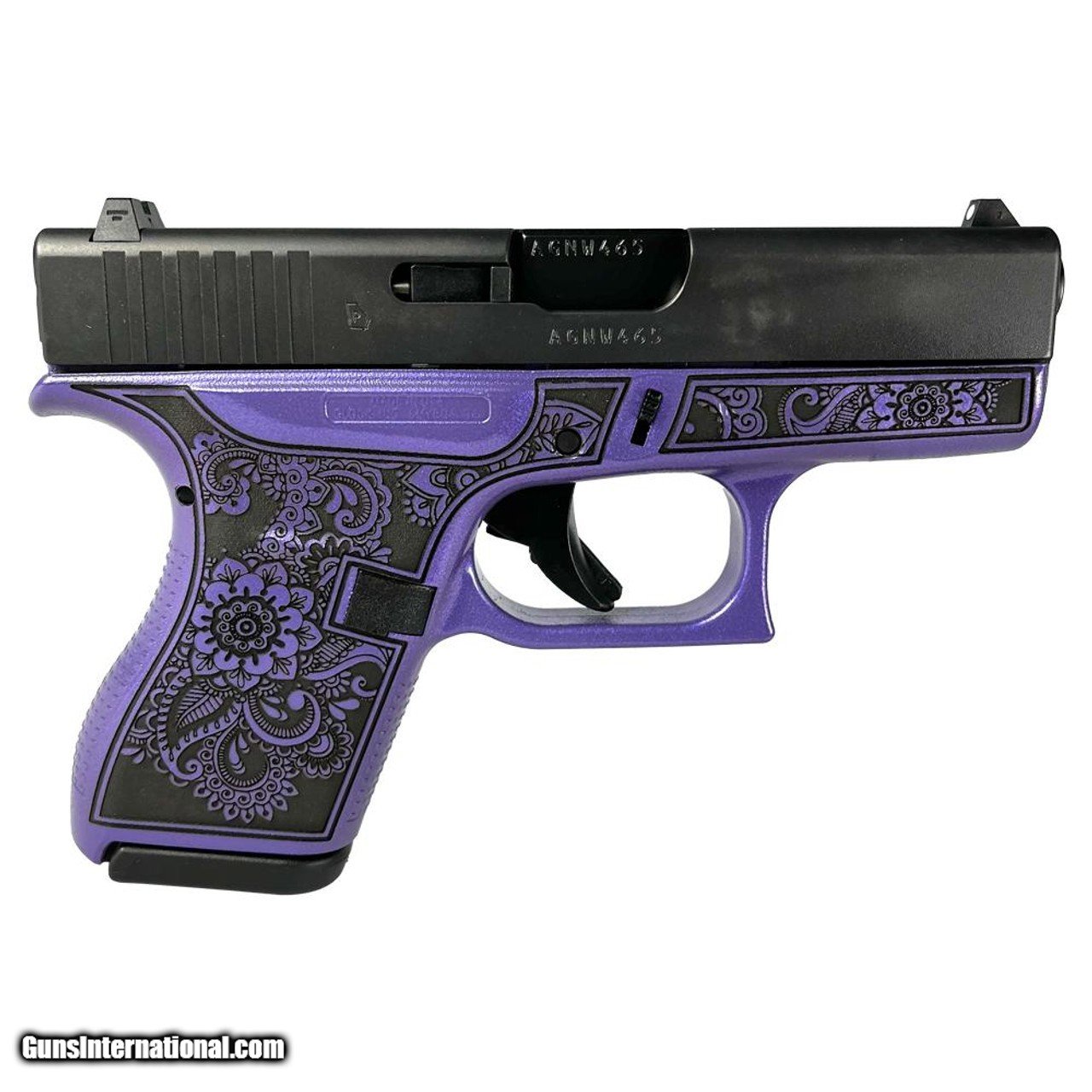 Glock 42 380 ACP CUSTOM MANDALA ENGRAVED PURPLE PEARL GRIP