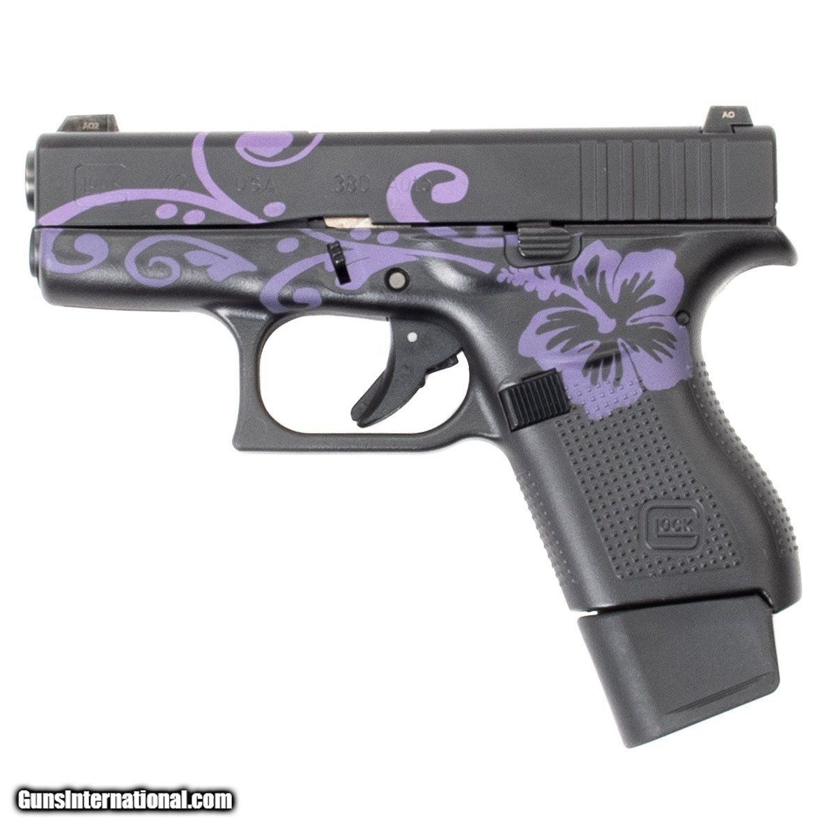 Description: Guns Listing ID: 620439 This Glock comes with one 7-round magazine, one 6-round magazine, the original case, owner‚s manual, and it‚s equipped with Glock night sights. The frame and slide have a purple flower design. Get the best bang for your buck when you get a Certified Used Firearm . When you see the Certified Used stamp on any of our firearms, you can be confident that you‚re getting exactly what you want – a gun only in very good to excellent condition and held to the highest quality standard. All Certified Used Guns come with a ‚no questions asked‚ return policy . Manufacturer: GLOCK Model: 42 Caliber Info: .380 ACP Condition: Used - Certified Barrels: 3.25" BARREL Action: SEMI AUTOMATIC Finish: purple/black Weight: 0.6 Price: $427.49 Contact Seller |
