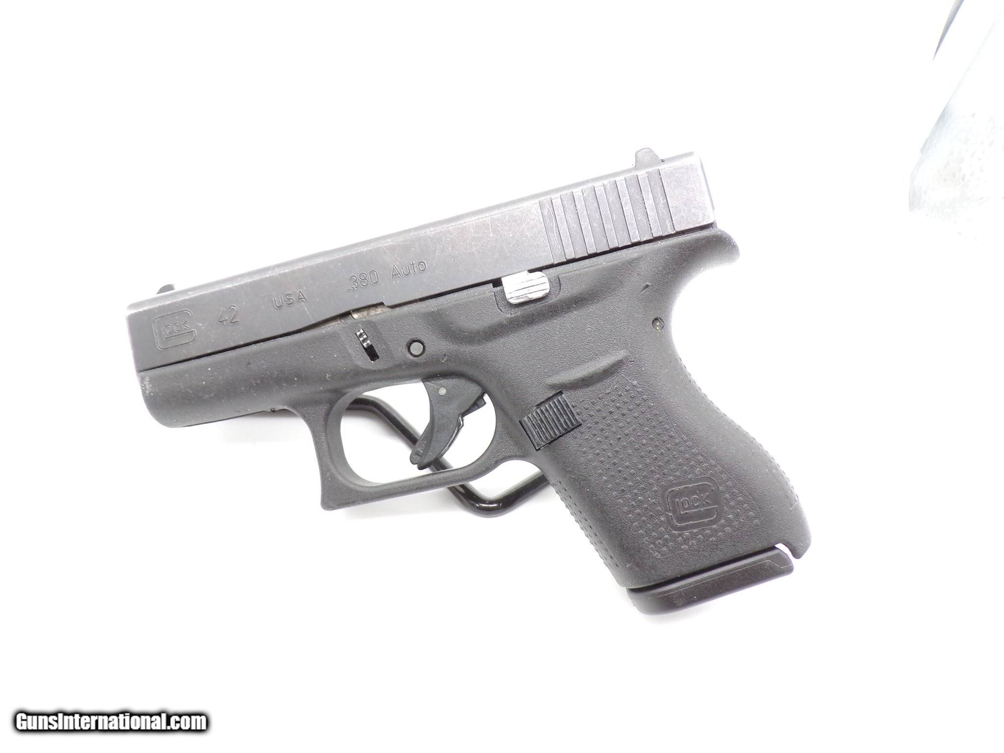 Description: Guns Listing ID: 590709 The Glock G42 is a subcompact .380 ACP pistol known for its lightweight design and reliability. It features a 3.25-inch barrel, a 6-round magazine, and a 12.17-ounce unloaded weight. The pistol includes Glock‚s SAFE Action trigger system and multiple safety features, making it suitable for concealed carry and personal defense. Its polymer frame and Tenifer-coated slide enhance durability and reduce recoil, making it a popular choice among shooters seeking a compact yet effective firearm. Manufacturer: GLOCK Model: G42 Gen 3 Compact Caliber Info: .380 ACP Condition: Used - Non-Certified Barrels: 3.25" BARREL Action: STRIKER FIRED Finish: BLACK Weight: 1 lbs. Price: $319.99 Contact Seller |