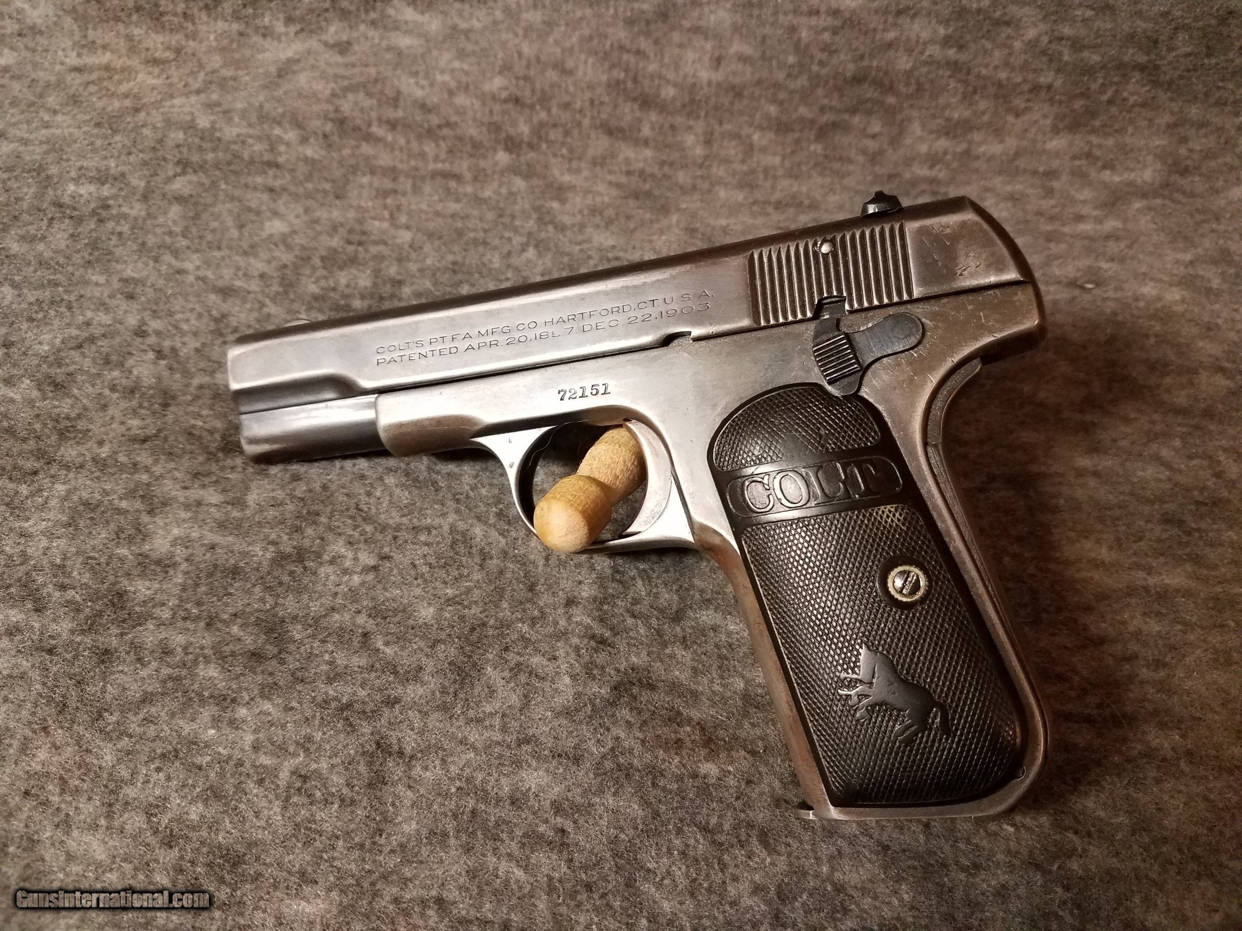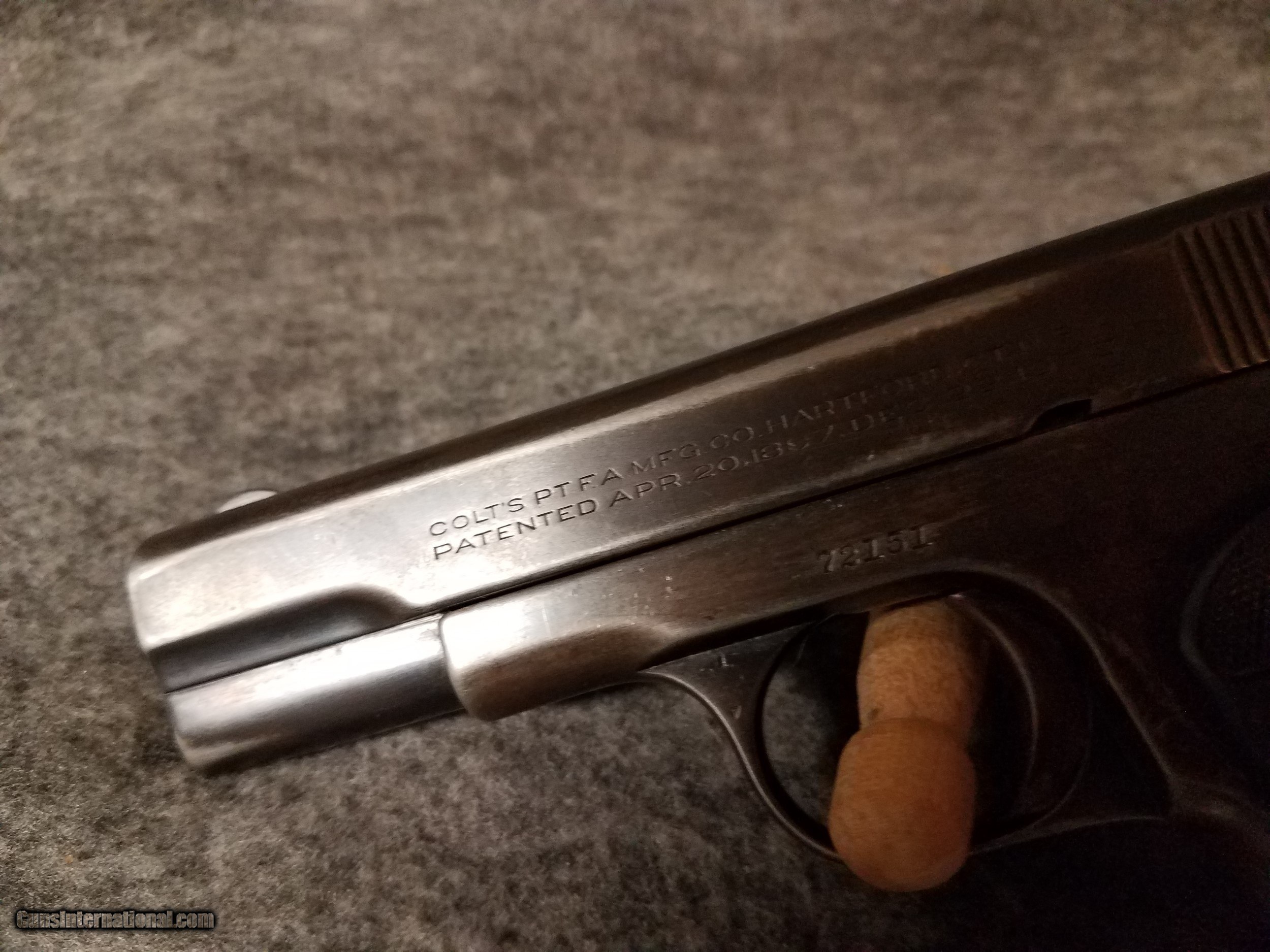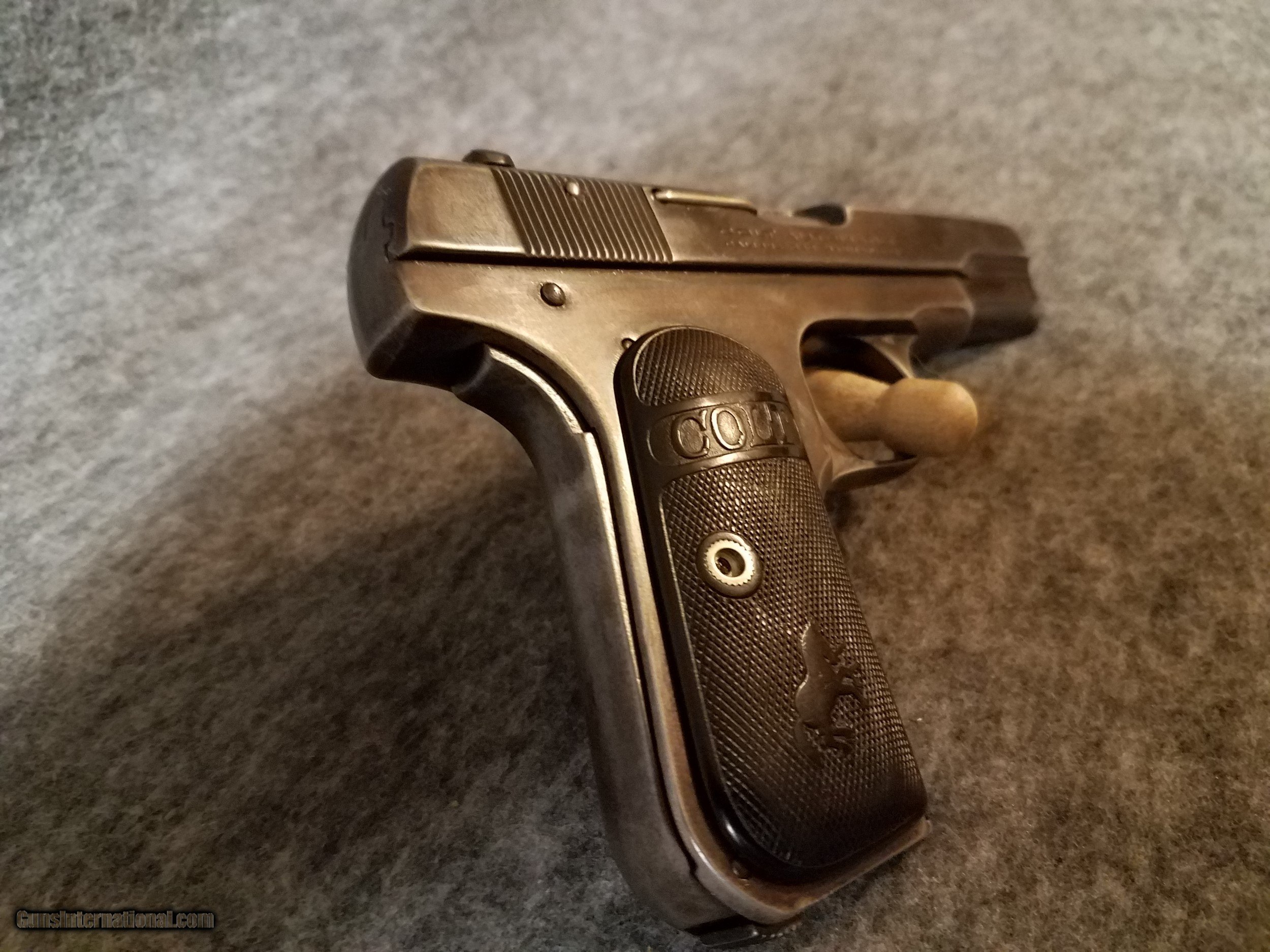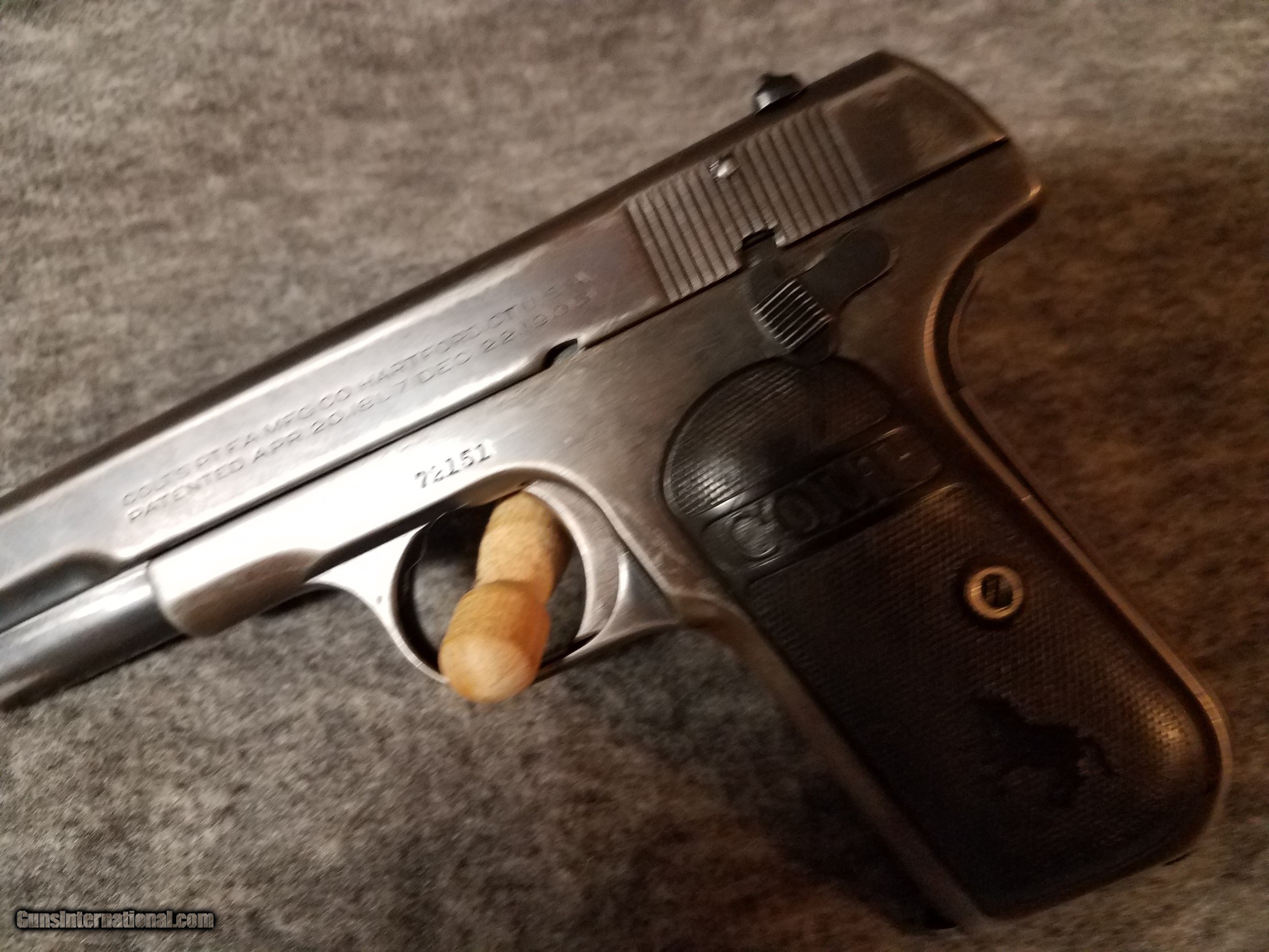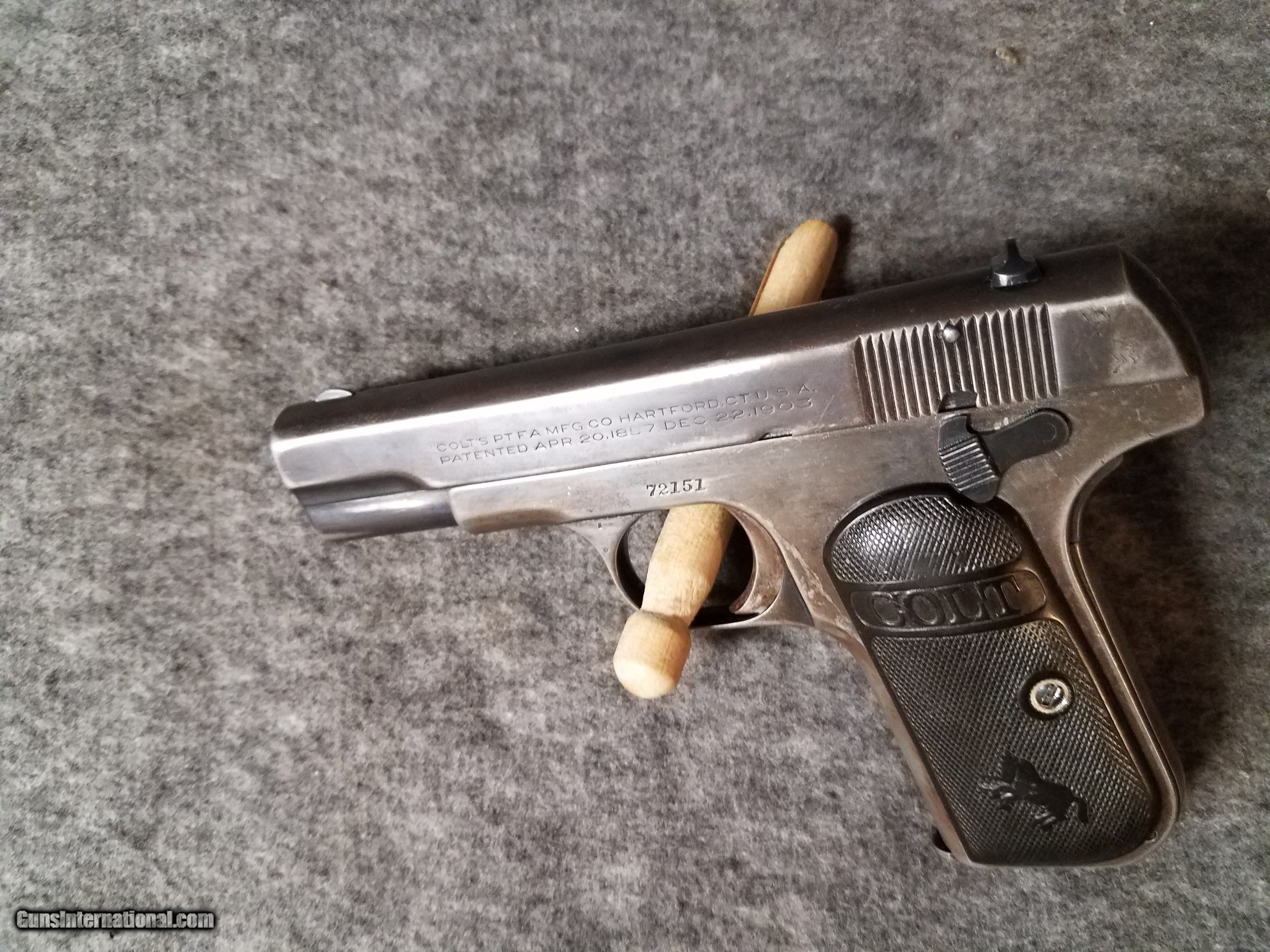 Description: COLT MODEL 1908 HAMMERLESS POCKET .380 serial 72151 indicates 1925 manufacture. WE REVIEW ALL OFFERS YOU MUST E-MAIL US ALL YOUR INFORMATION NAME, ADDRESS AND PHONE NUMBER ALONG WITH WHICH GUN YOU ARE PURCHASING! WE PUT A HOLD ON THE FIREARM FOR 7 BUSINESS DAY AT WHICH TIME IF PAYMENT IS NOT RECEIVED WE WILL RELIST THE FIREARM! THANK YOU, RON Send to rdfgunoutlook RDF Gun 10933 Road 26 Cortez, CO 81321 60 DAY LAY AWAY 50% DOWN. NO REFUND AFTER 60 DAYS. Shipping Policy : SHIPPING HAND GUNS $35.00 LONG GUNS $45.00 RDF Gun assumes all responsibility for listings. Prices are subject to change without notice. You must contact RDF Gun to resolve any questions or concerns before purchasing any item. Payment must be made using U.S. dollars ($). Firearms may only be shipped to a licensed dealer (FFL Holder) Unless you are a resident of Colorado and would like to pick up the items in the store. We follow all Local, State and Federal Laws. Some listed items may not be legal in every state check your local, and State Laws before purchasing. We only sell bolt action Rifles to customers in CA, NY, FL, or NJ. NO OUT OF STATE SALES WITHOUT A CURRENT COPY OF A FEDERAL FIREARMS LICENSE. ALL in State sales are subject to background check. Add $20.00 for CBI and NICS Background checks. All Major Credit Cards Accepted with a 10% up charge!! SOLD Manufacturer: Colt Model: 1908 Serial Number: 72151 Caliber Info: 380ACP Bore: VG Chambers: VG Ejectors: VG Condition: used Metal Condition: VG Bore Condition: VG Action: Semi Auto |