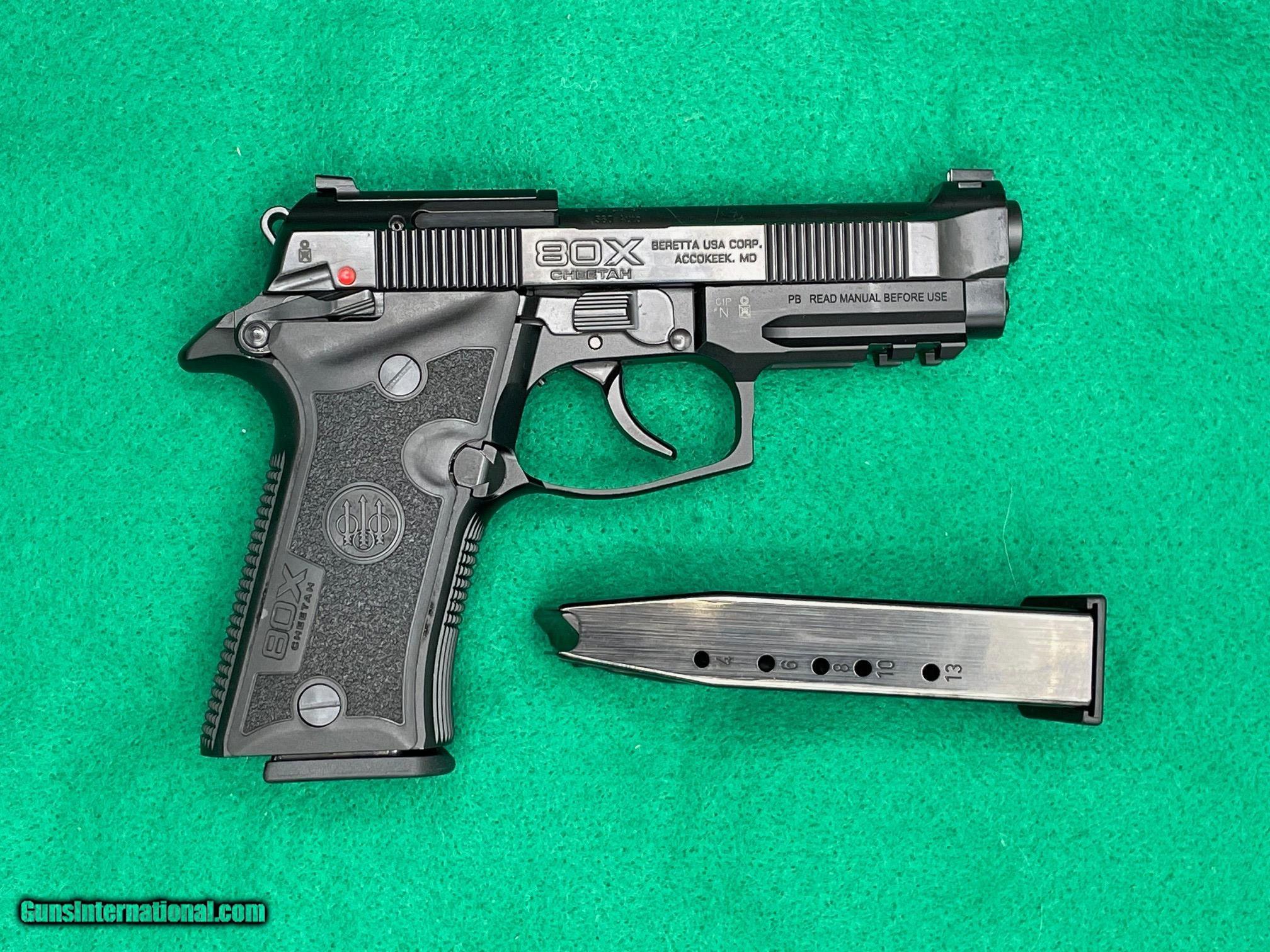 Description: Offered here is an unfired LNIB Beretta 80X Cheetah .380 ACP **Last time reduction** $600 The gun presents as new in mint condition. "The Beretta 80X Cheetah pistol reimagines the legendary platform, with a sleek design and enhanced features. Ergonomically redesigned for modern day carry, the 80X Cheetah includes a smaller Vertec style grip profile, the X-treme S Double/Single trigger, a skeletonized hammer, a 13+1 round capacity, and comes optics-ready out of the box." Gun gun shows no evidence of having been fired and presents as new in factory hard case with paperwork, and 2-13 round magazines. Made in Italy. Features
