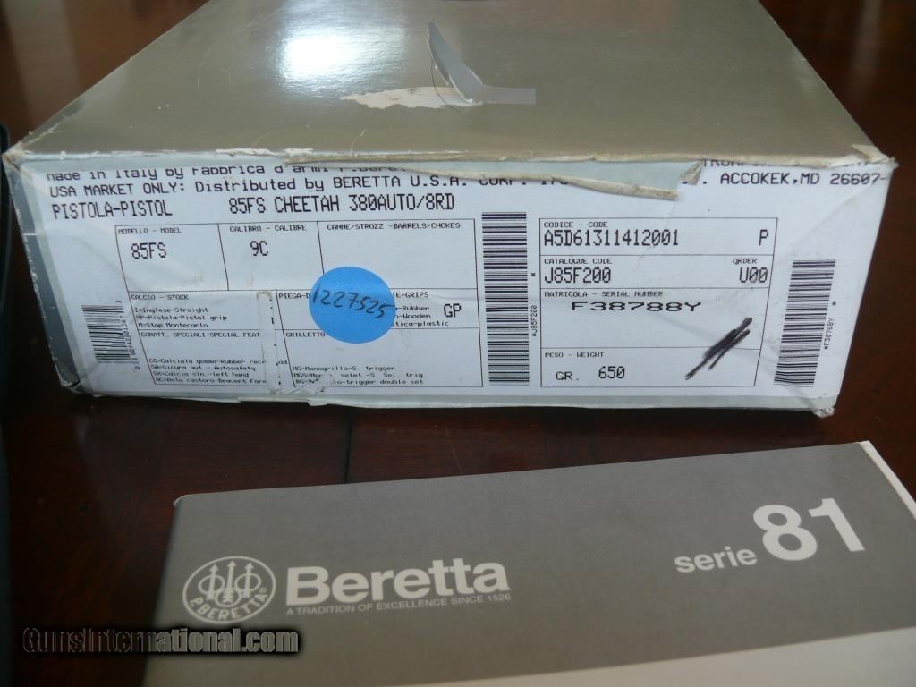 Mod 85FS 380 with two 8 round magazines and its box and paperwork