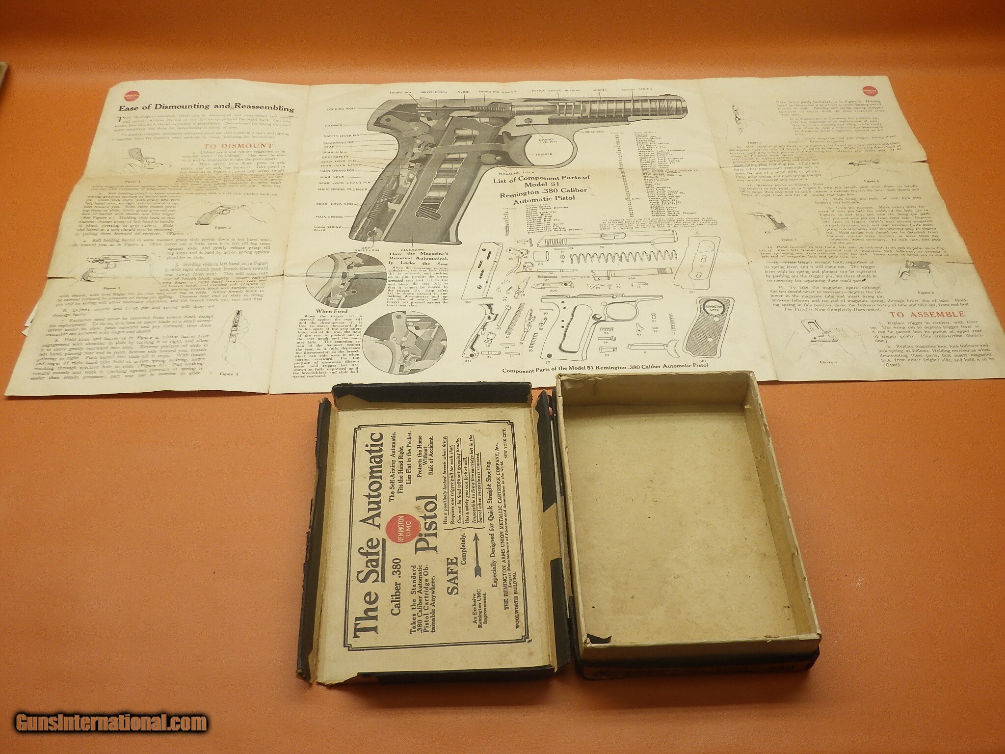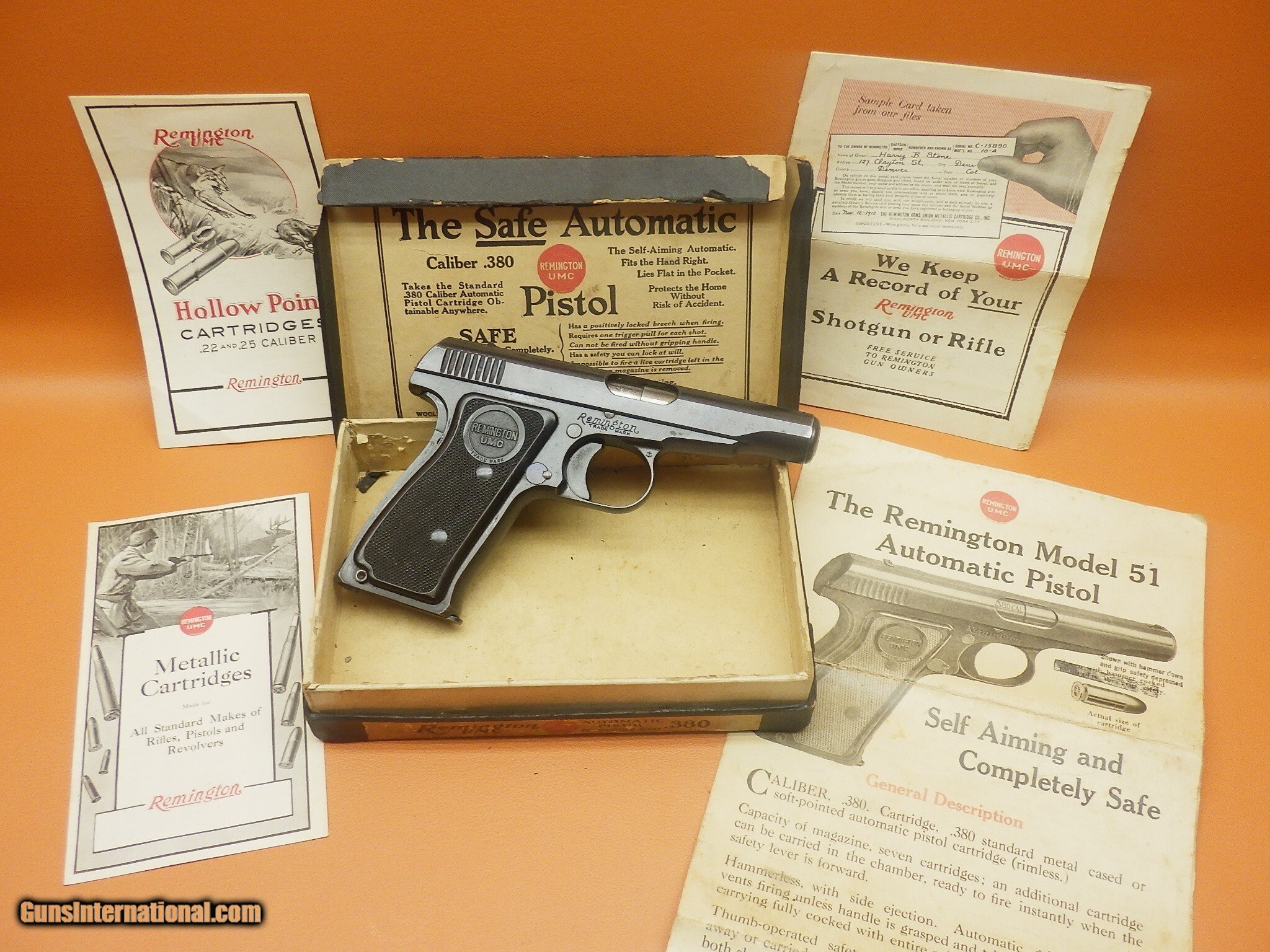 Remington Model 51 .380ACP 3.5"Bbl Early 9-Groove Slide Original Box Manual & Papers