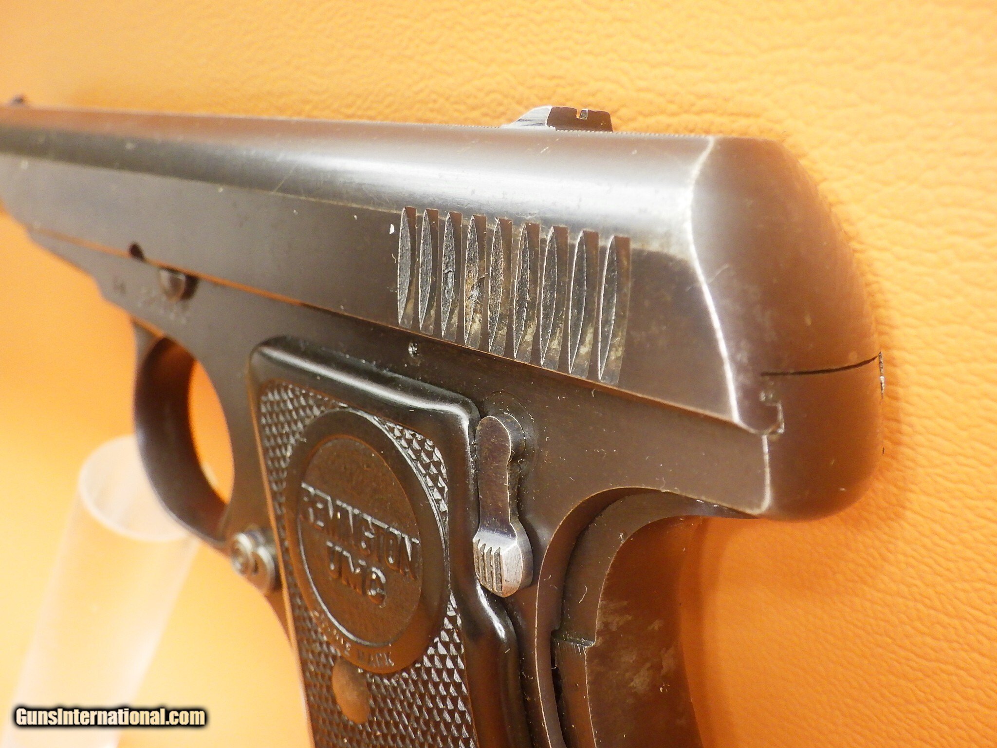 Description: Also Known As: “The Pedersen Design” / Remington’s First Compact Auto Make: Remington Arms Co. Model: Model 51 Finish: Blued Caliber: .380 ACP Action: Semi-Auto, Single Action, Internal Hammer Barrel length: 3.5" Bore: Excellent, shiny, strong rifling Grips: Original Remington UMC checkered hard rubber grips Sights: Fixed blade front, notch rear MFG Date: Circa 1918–1926 Features: Sleek recoil-operated Pedersen “hesitation lock” design, low bore axis, early 9-groove slide, Remington trade mark on right frame, caliber marked barrel, one 7-rnd mag, smooth ergonomics well ahead of its time Extras: Original factory box (poor condition but repairable), original manual (excellent), and Remington advertising flyers included Condition: Good to very good overall used condition; bluing thins on a few edges with some minor freckling, crisp markings, tight mechanicals, bright bore, one mag included, original box, manual and Remington flyers are rare and very collectible! Shipping Cost: $35.00 Tech: DH111225.1149 Please refer to the photos for the overall condition. More pics available upon request. FFL is required. Step back into the early days of American innovation with this Remington Model 51 in .380ACP — a truly elegant piece of firearms engineering! Designed by the legendary John Pedersen, this pistol was decades ahead of its time, offering superb ergonomics, a slim profile, and silky recoil operation long before “carry guns” were a thing. This example boasts excellent mechanical condition, a bright bore, original Remington UMC grips, and comes complete with its factory box, manual, and flyers — a rare and desirable combo for collectors. A timeless blend of ingenuity and craftsmanship, this Model 51 is both a joy to handle and a standout piece of Remington history! Handgun Caliber: .380 ACP (9x17mm Browning Short) Manufacturer: Remington Model: 51 Serial Number: PA32065 Barrel Length: 3.5 Condition: Very Good Metal Condition: Good Bore Condition: Excellent Action: Hesitation-lock / blowback Manufacture Date: 1918-26 Extras: Original box/manual/flyers Grips: Original UMC Price: $1,149.00 Contact Seller |