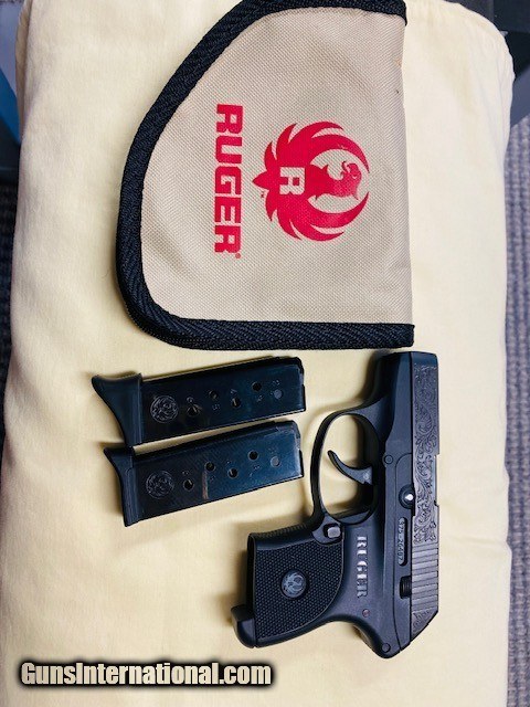 Description: RUGER LCP SEMI-AUTOMATIC PISTOL .380 ACP CALIBER Model is factory engraved, includes 2 magazines. SOLD Handgun Caliber: .380 ACP (9x17mm Browning Short) Engraving: Factory engraved slide Extras: 2nd magazine Case: 1 case |
