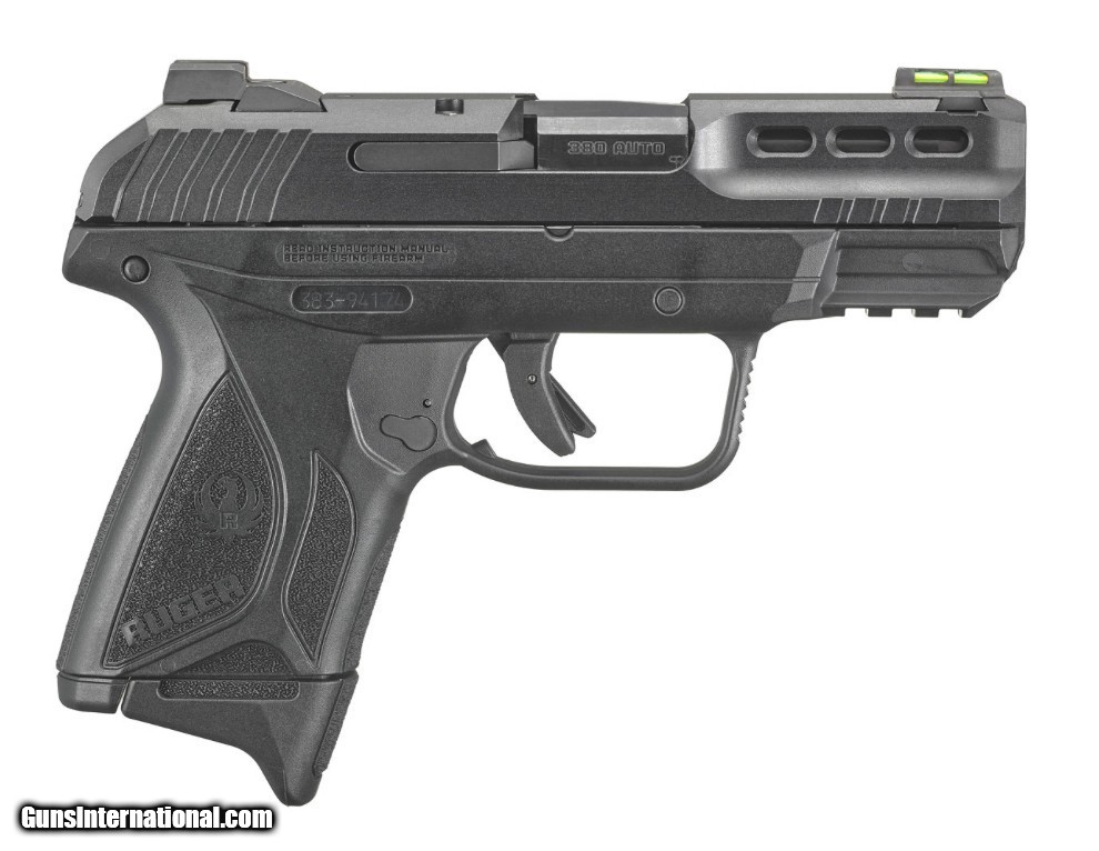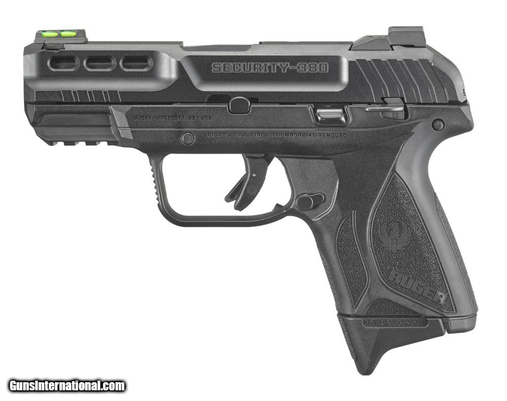 Description: Ruger Security 380 Lite Rack Pistol, .380ACP New condition in factory packaging. Chambered in .380 Auto, the Ruger Security-380 is full-featured, ideally sized, modestly priced, and designed for hours of range training with minimal fatigue. The combination of easy-to-use features and reduced felt recoil will help recoil-sensitive shooters build skill and confidence at the range, and its lightweight and compact size makes it comfortable for all day carry. The Lite Rack system includes refined slide serrations, pronounced cocking ears and a lighter recoil spring, allowing for easy slide manipulation. Combined with low-recoiling .380 ammunition, it is the ideal pistol for training and practice. The pistol ships with two, steel magazines (15 round, 10 round) and incorporates a lightweight slide with a fiber optic front sight and drift adjustable steel rear sight. Specifications